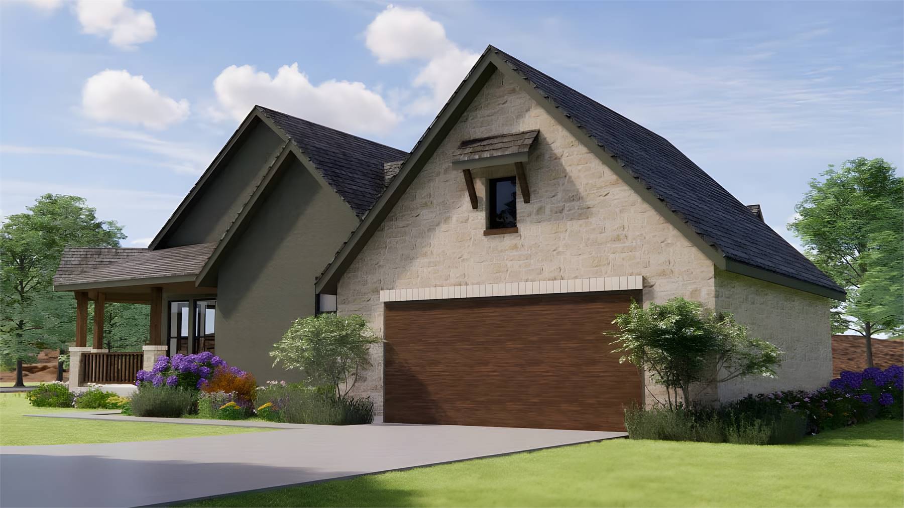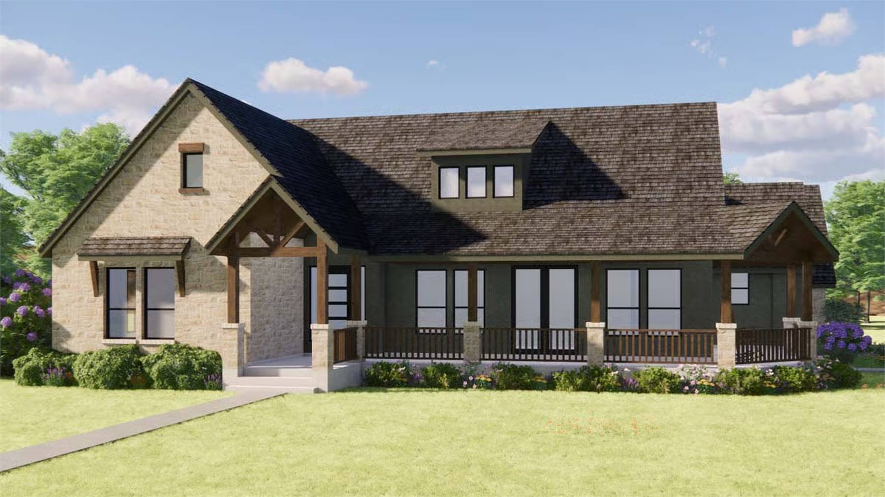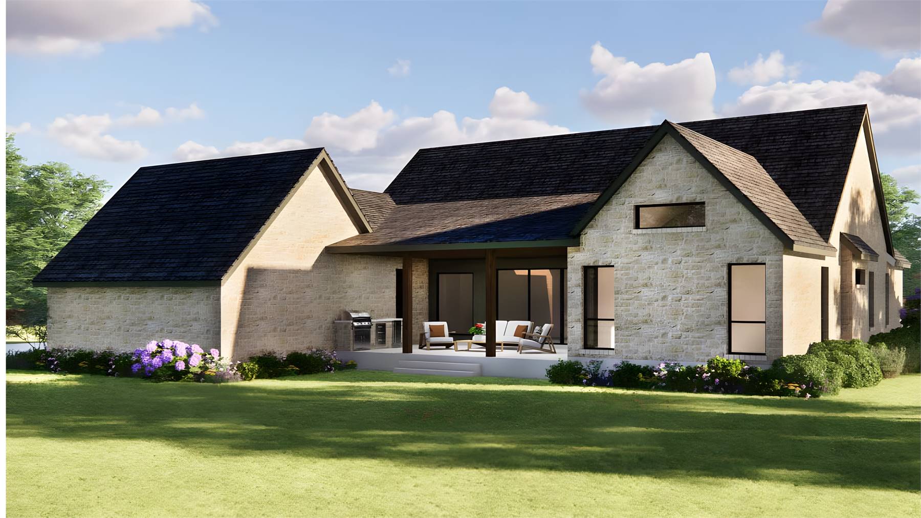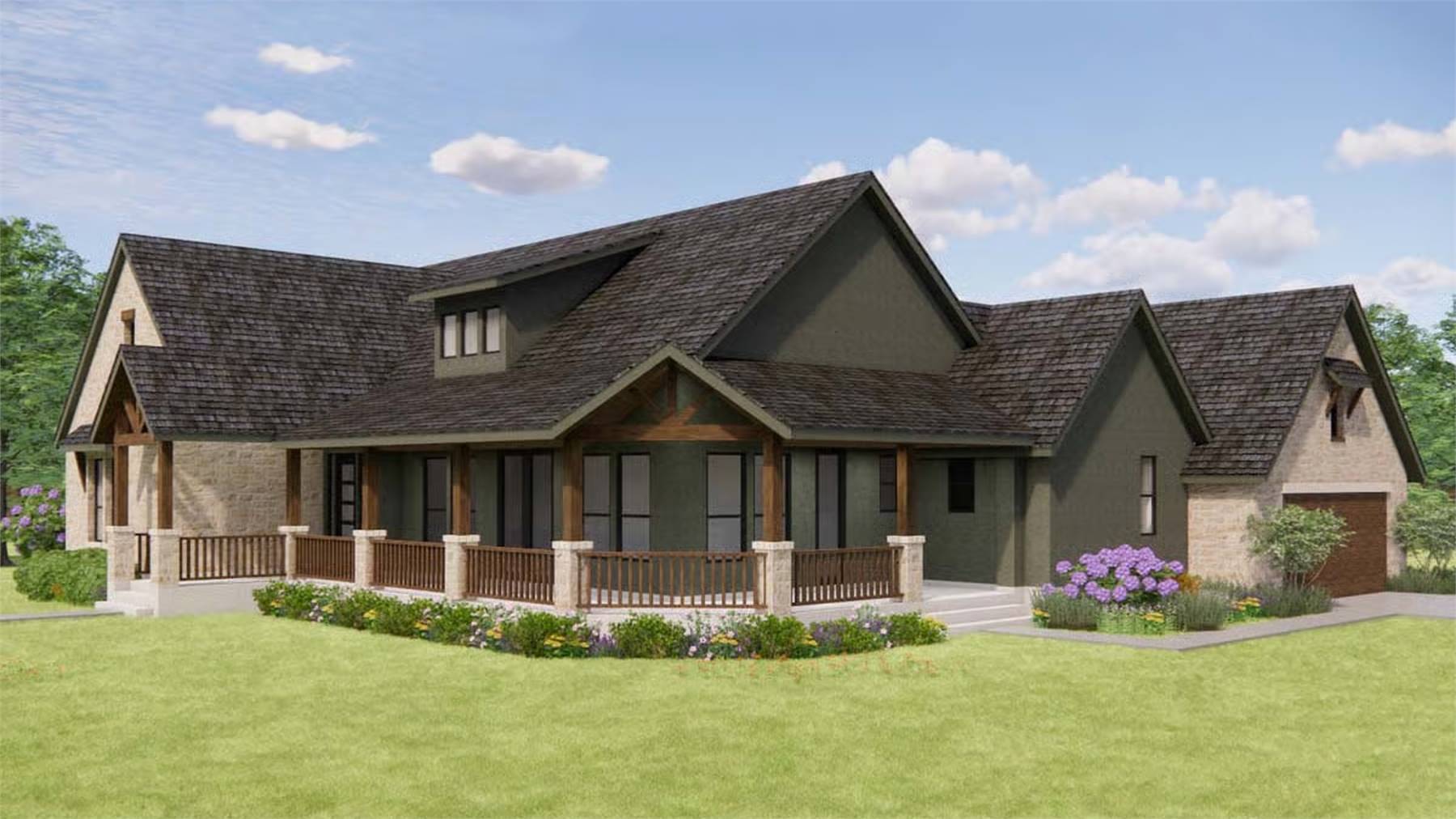 House Plan 11079 is a gorgeous country home with rustic style! It offers 2,246 square feet with three bedrooms and two-and-a-half bathrooms on one level. The great room welcomes you in with a vaulted ceiling over the living space and the island kitchen open to the dining area on the side. The bedrooms are all placed on one side, with two and a hall bath in front and the four-piece primary suite with his-and-her closets in back. The garage is located on the opposite side of the house, in the rear with side entry. It connects through a mudroom with the laundry room, powder room, and access to the over-garage bonus, should you want. A wraparound porch in front and a covered patio with an outdoor kitchen in back complete this design!