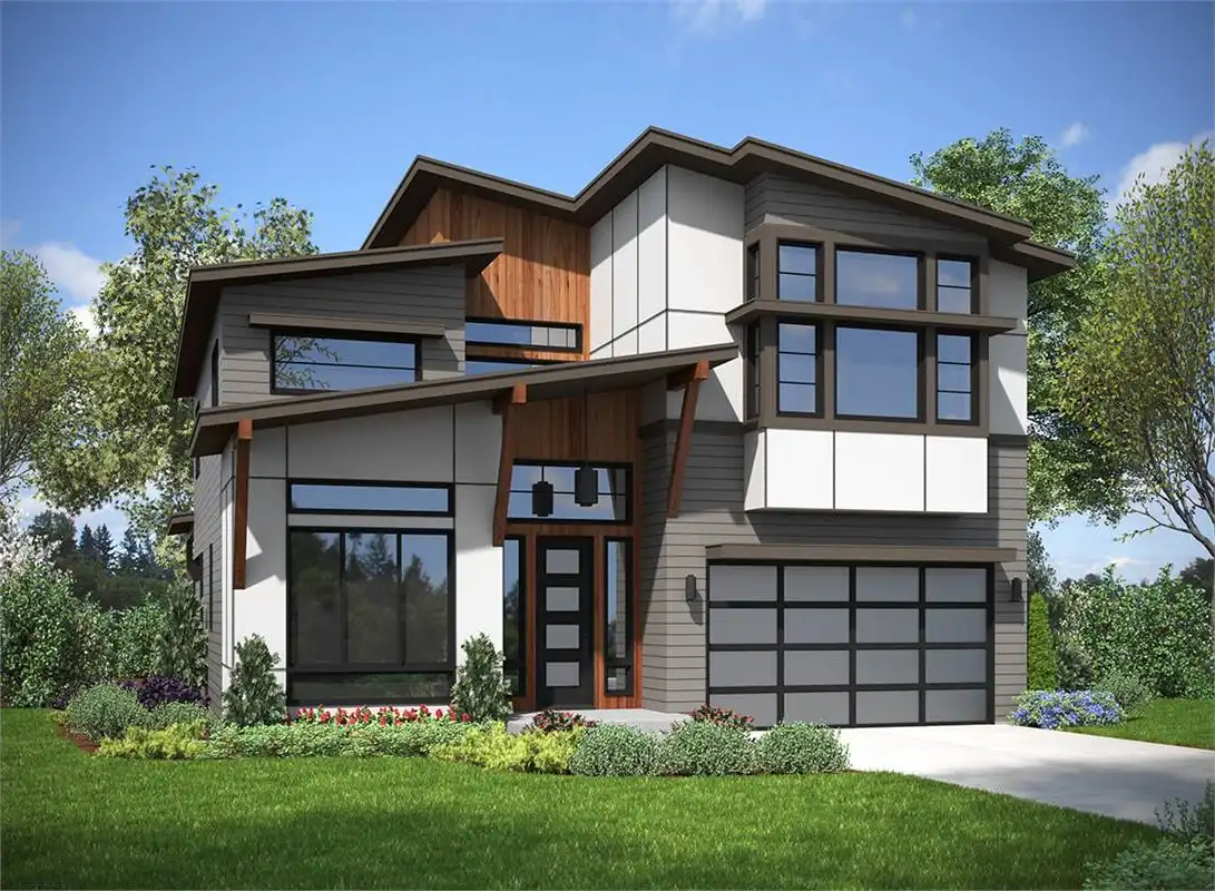 Like a work of art, this modern marvel of a home combines some unforgettable designs and styles to create a truly unique display of home plan innovation. Featuring 3,633 square feet of living space, the 5 bedroom 3.5 bathroom layout has so much it is waiting to show you. Begin with the main level and all of its grand open areas. The dining room and gourmet island kitchen are just the beginning. Be sure to explore the great room and lovely covered porch too. You'll also find a den/office, a guest suite, and a 3-car garage with workshop space to round out the level. From there, move upstairs to reveal the rest of the sleeping areas. While each bedroom has its own walk-in closet, none is as impressive as your master retreat, complete with a resort-style spa bath which is sure to bring relaxation into your life on a daily basis.