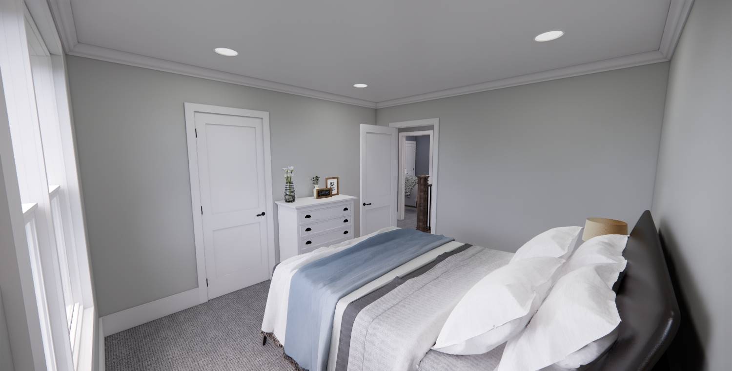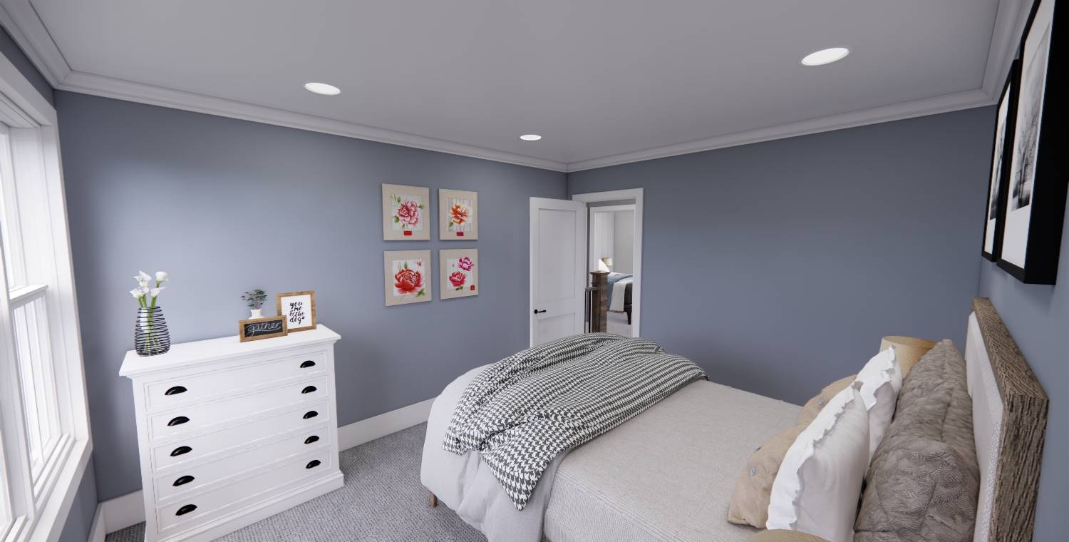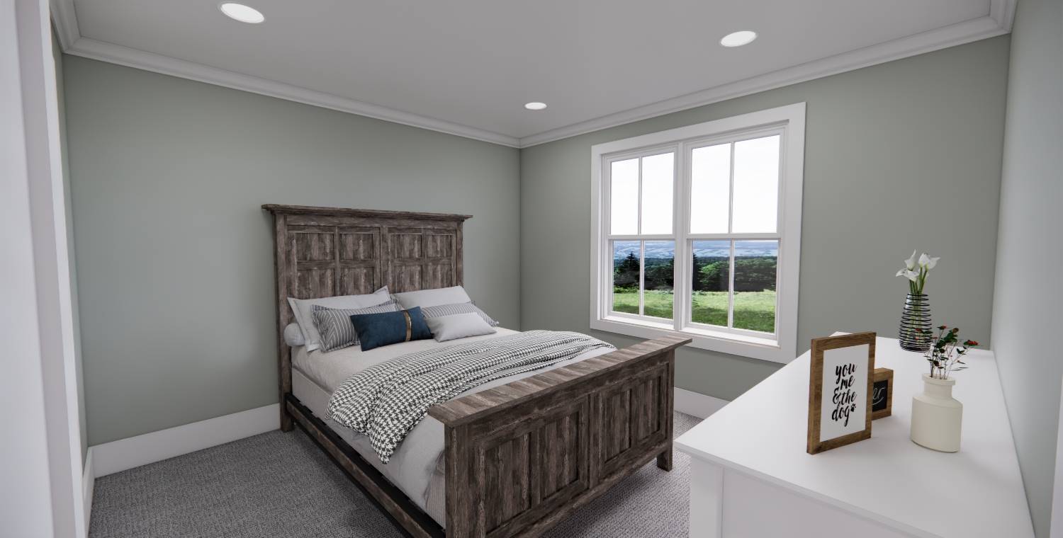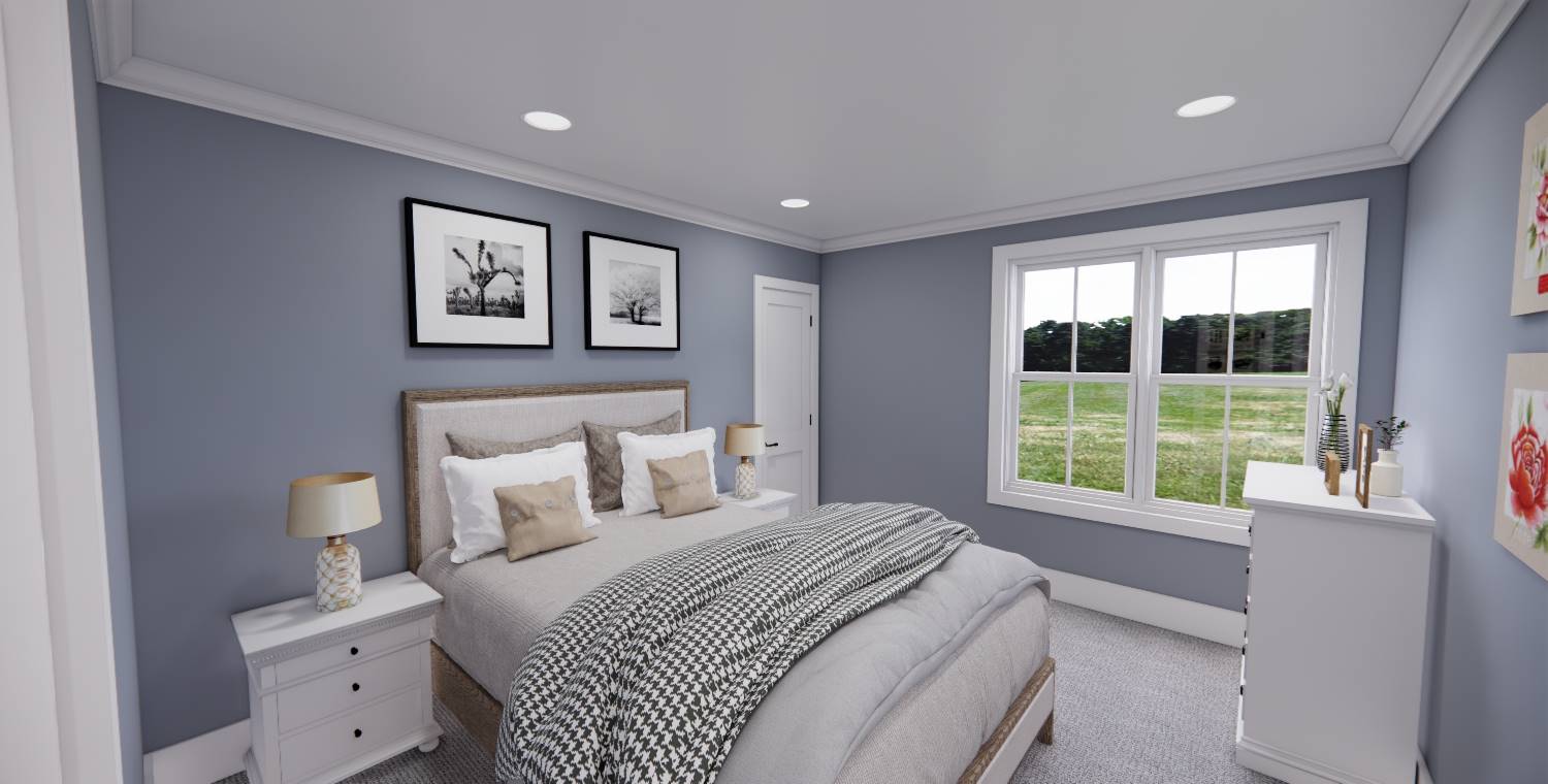 This 2,172 square foot, two-story Traditional design combines timeless curb appeal with a functional family layout, offering 4 bedrooms, 2½ bathrooms, and a 2-car garage. Inside, the first floor showcases an open living space with the kitchen, dining area, and great room flowing together, enhanced by abundant windows. The kitchen features a generous island with seating for three, built-in sink, dishwasher, ample cabinetry, and a walk-in pantry with pocket door. The dining area is perfectly placed for mealtime convenience, and the great room offers a wall of built-ins for both style and storage. Off the foyer, a barn-door enclosed den provides a cozy escape. The second floor holds the private primary suite at the rear with a large bedroom, dual vanities, step-in shower, private toilet, and walk-in closet. Three more bedrooms, a full bathroom, and an upstairs laundry room add practicality to this beautiful home.