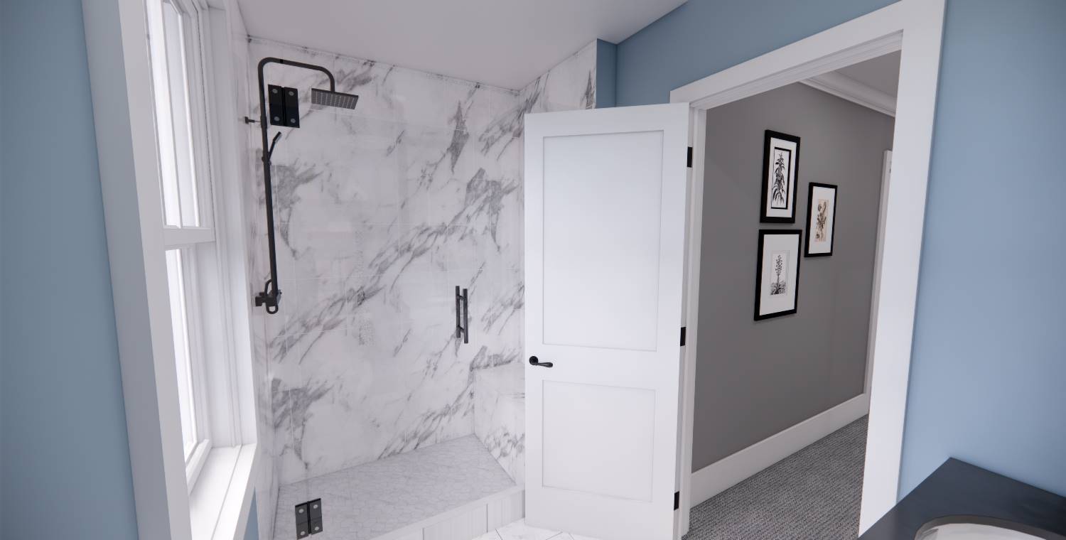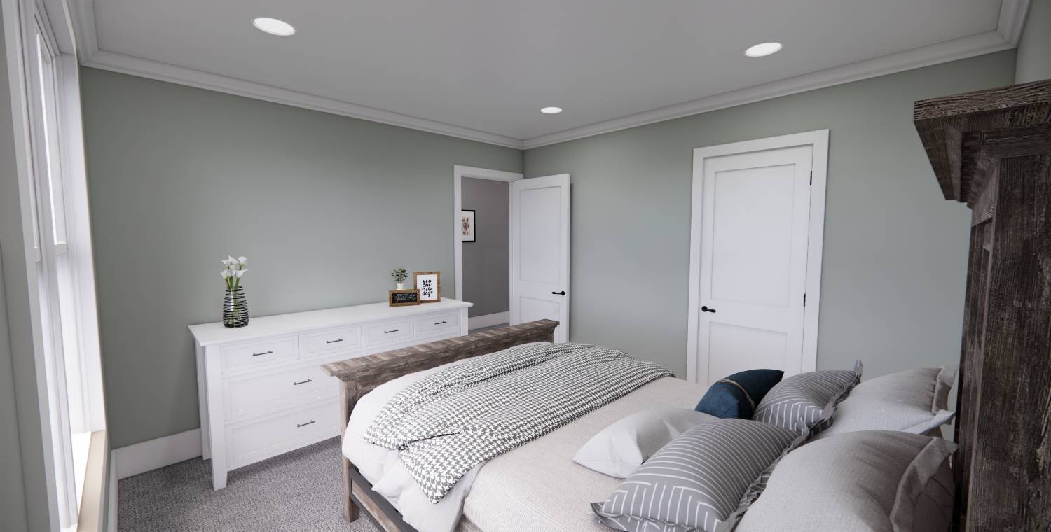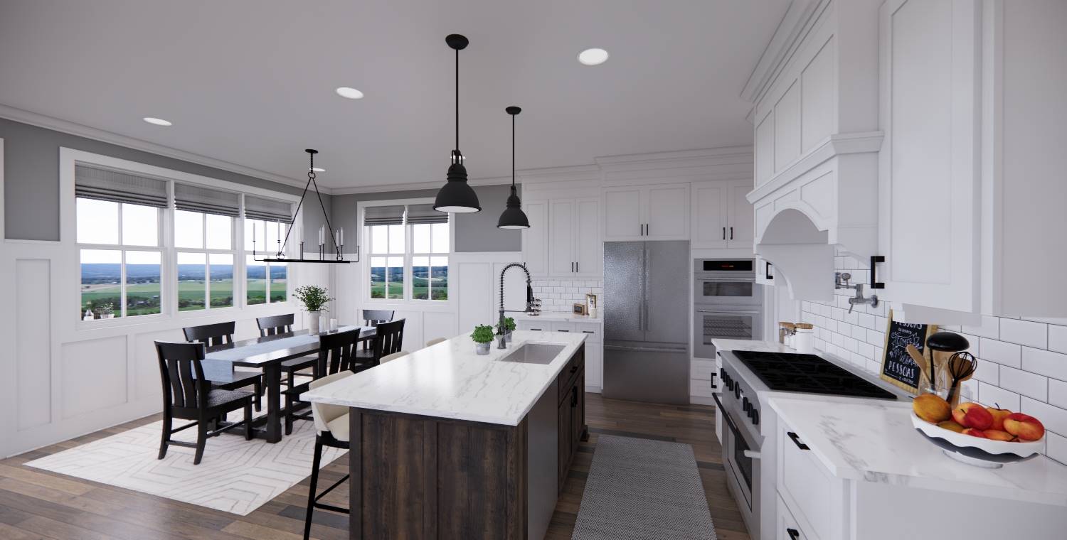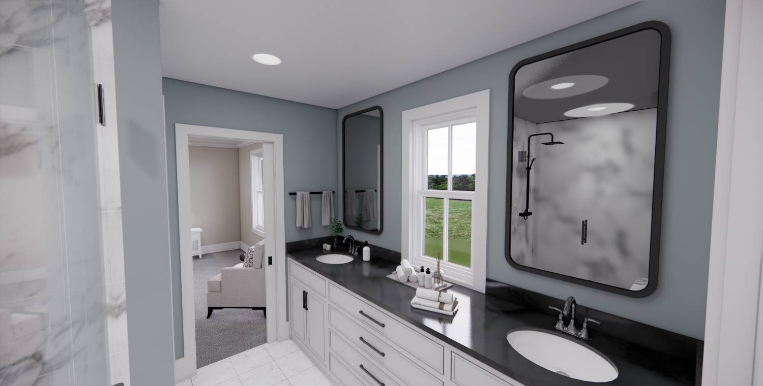 This 2,172 square foot, two-story Traditional design combines timeless curb appeal with a functional family layout, offering 4 bedrooms, 2½ bathrooms, and a 2-car garage. Inside, the first floor showcases an open living space with the kitchen, dining area, and great room flowing together, enhanced by abundant windows. The kitchen features a generous island with seating for three, built-in sink, dishwasher, ample cabinetry, and a walk-in pantry with pocket door. The dining area is perfectly placed for mealtime convenience, and the great room offers a wall of built-ins for both style and storage. Off the foyer, a barn-door enclosed den provides a cozy escape. The second floor holds the private primary suite at the rear with a large bedroom, dual vanities, step-in shower, private toilet, and walk-in closet. Three more bedrooms, a full bathroom, and an upstairs laundry room add practicality to this beautiful home.