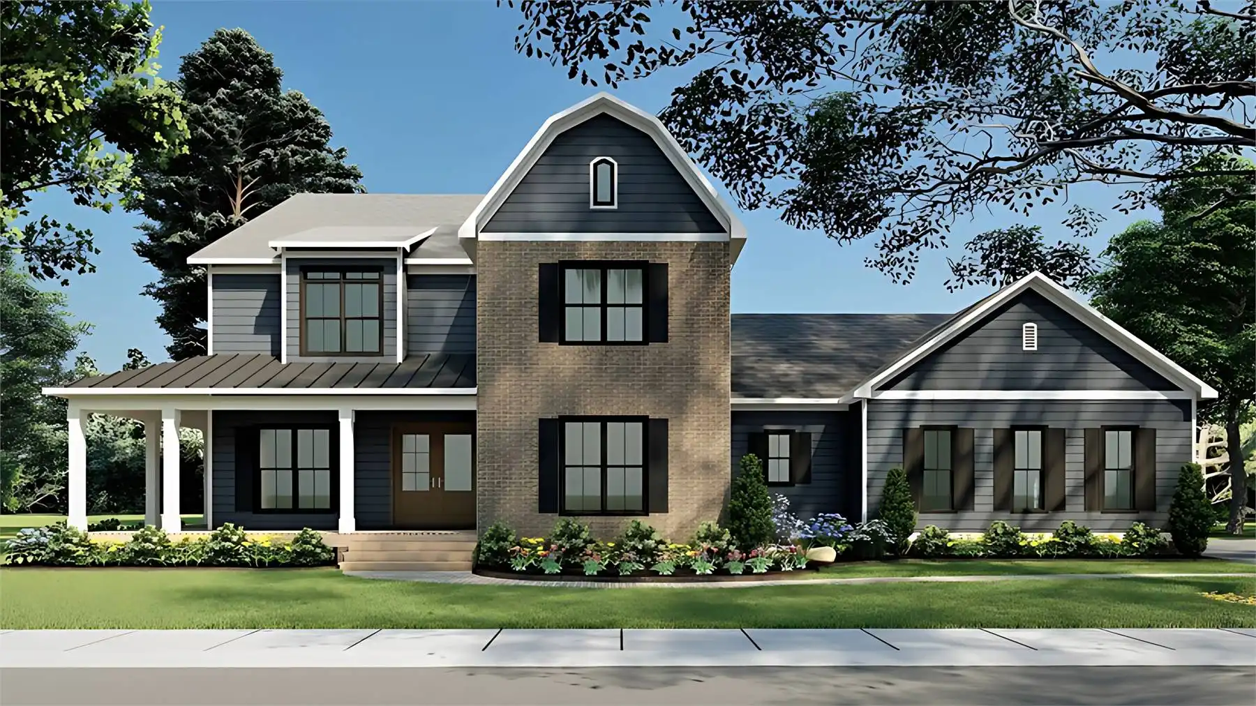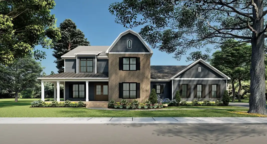 Ideally suited to larger families, House Plan 11095 is a grand farmhouse with 4,048 square feet, five bedrooms, and three-and-a-half baths across two stories. The main floor includes the open-concept kitchen and family room, the formal dining room, the office, and the luxe five-piece primary suite along with smaller features like the laundry room, mudroom, and powder room. Upstairs, the bedrooms include a three-piece suite and three that share a hall bath. There's also a vaulted loft for additional living space! The two-car garage and porches in front and back round out this design.