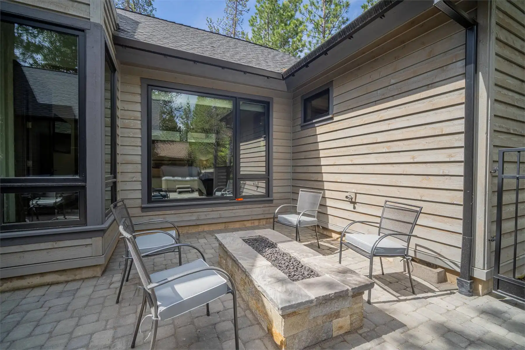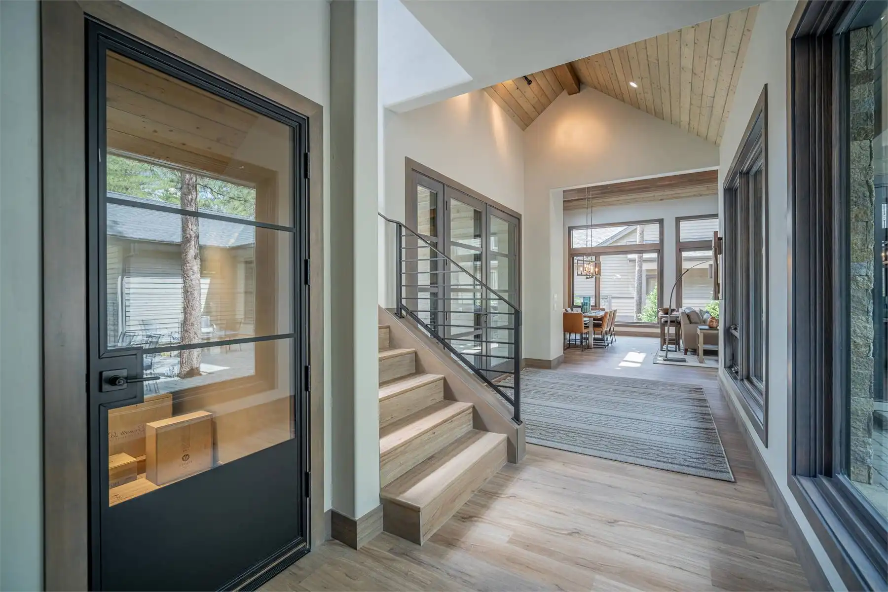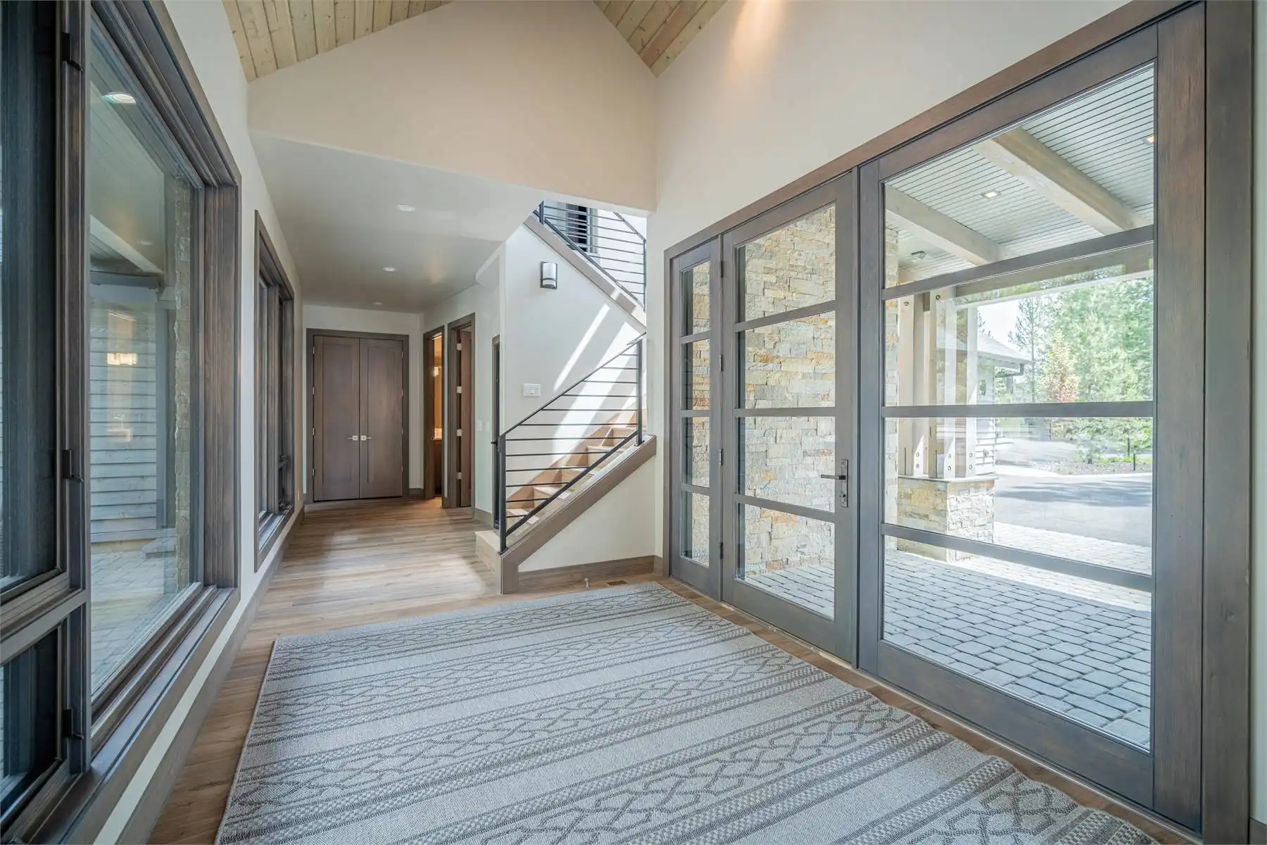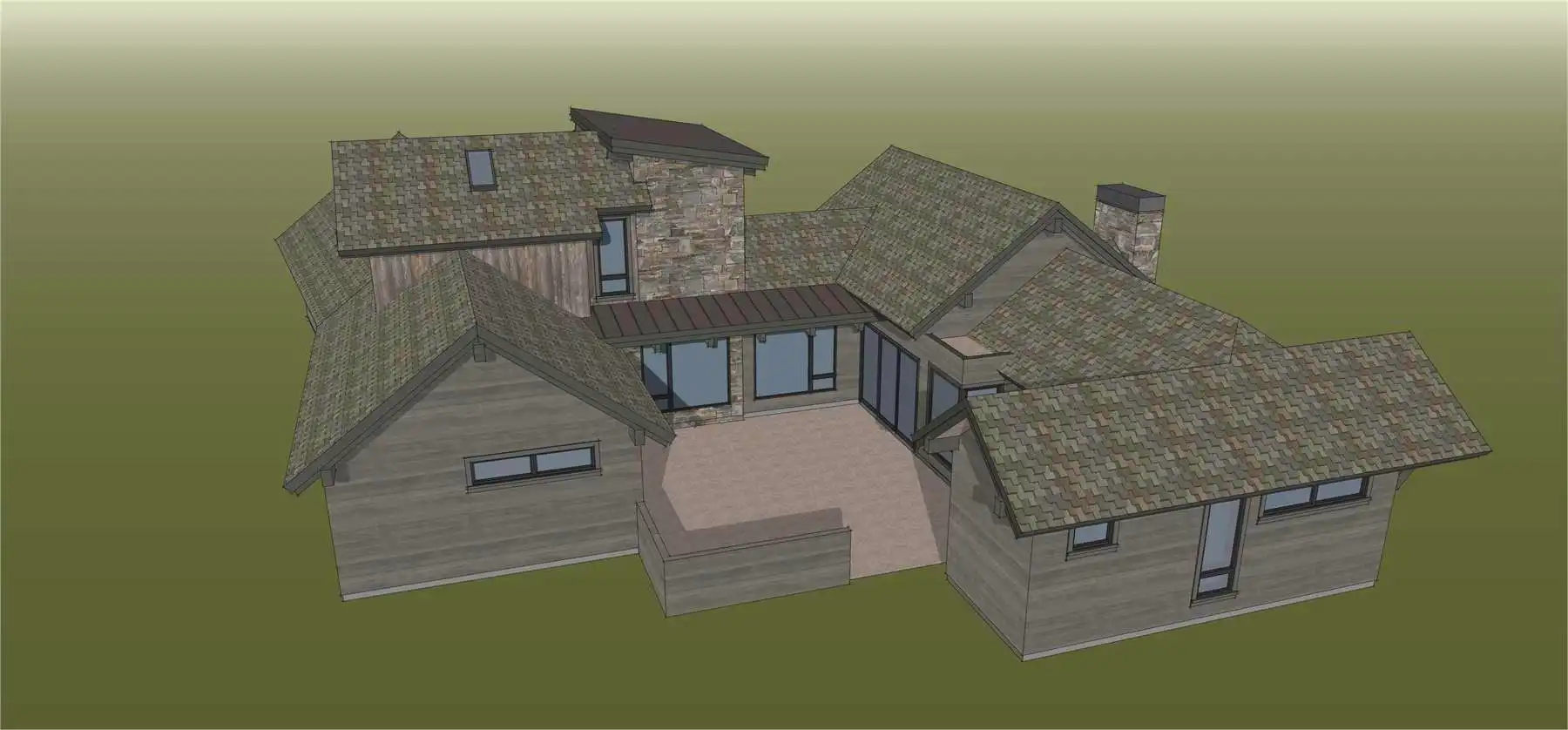 House Plan 11098 is a stunning modern mountain home with 2,979 square feet, four bedrooms, four-and-a-half baths, and a two-car garage. This unique layout places the foyer and the courtyard in the center of the floor plan. The U-shaped kitchen, vaulted great room, and primary suite are located on one side. On the other, you'll find two smaller bedroom suites, the powder room, the mudroom, and the laundry room. The final bedroom and hall bath are privately located upstairs. Make sure to appreciate all the brightening windows this design has to offer!