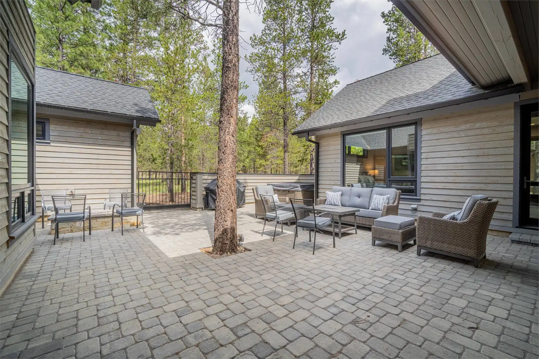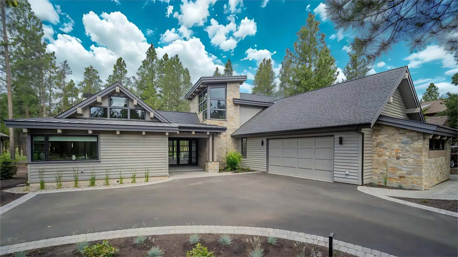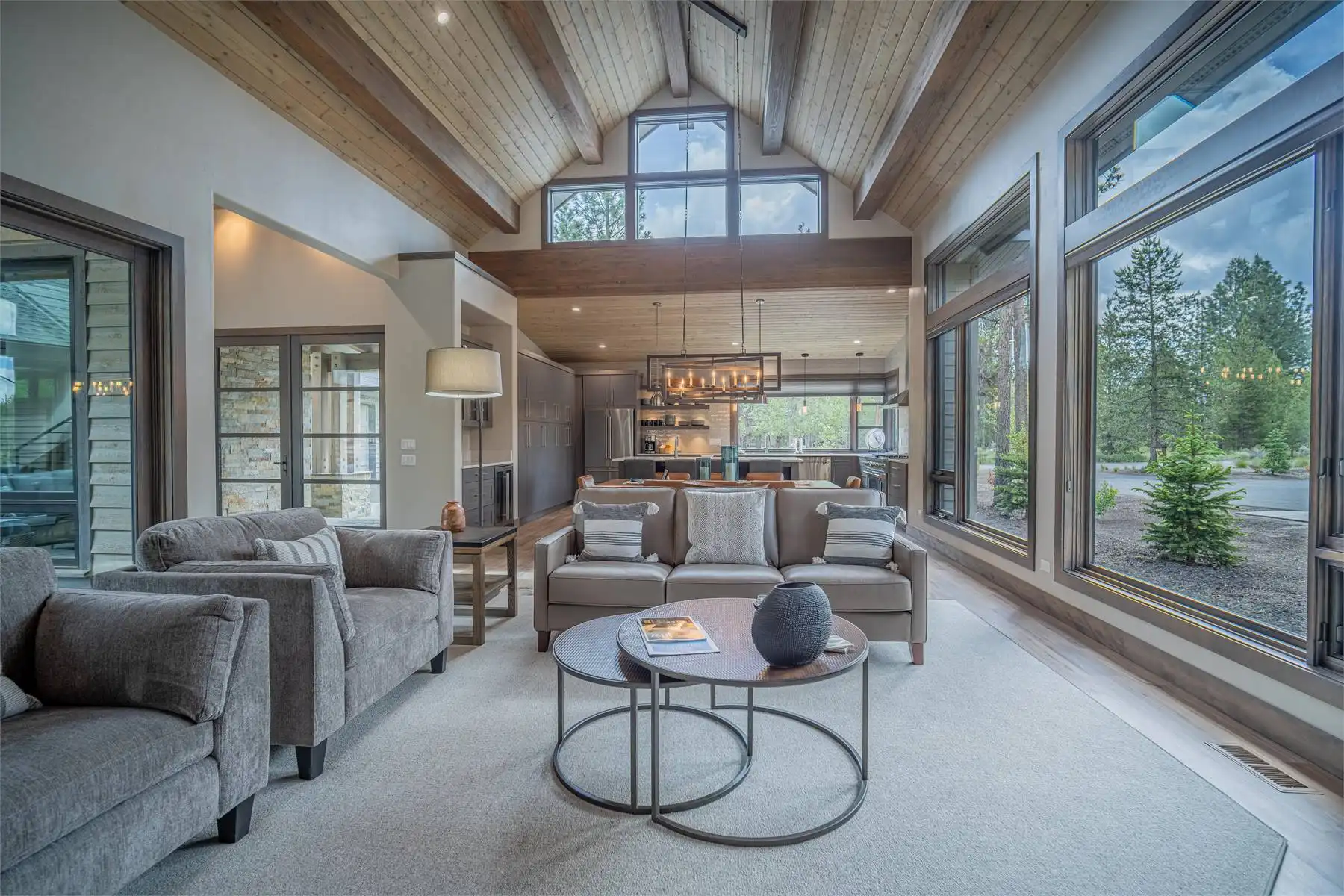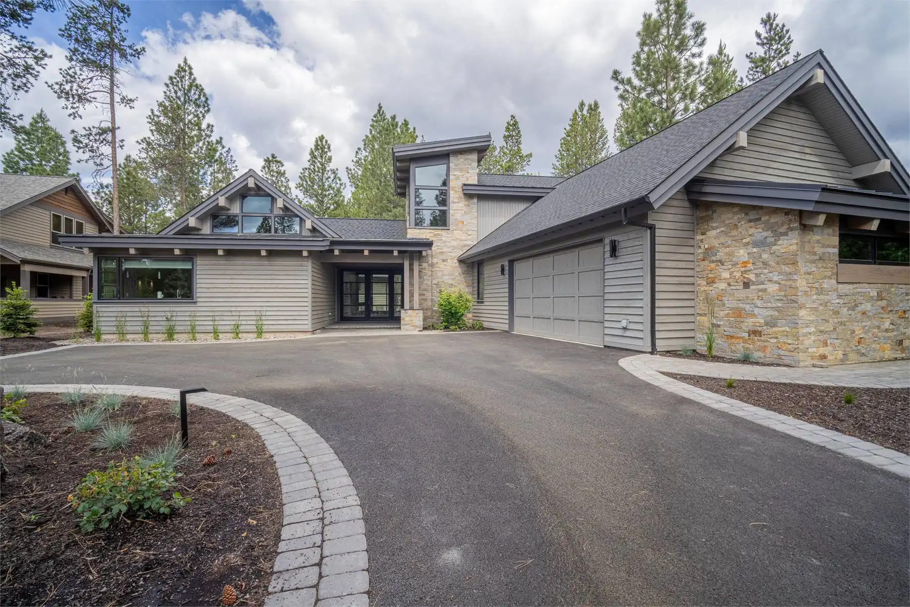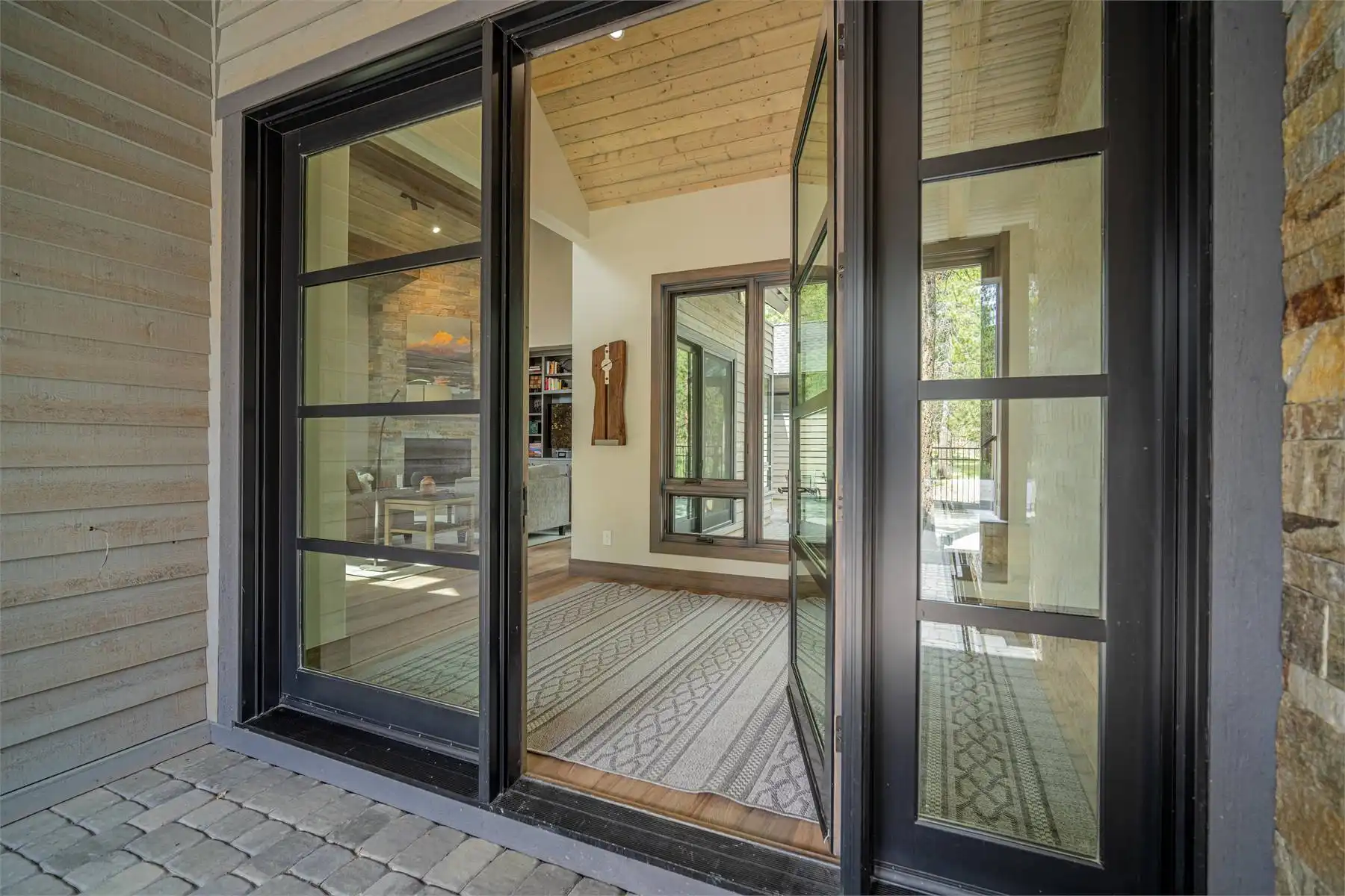 House Plan 11098 is a stunning modern mountain home with 2,979 square feet, four bedrooms, four-and-a-half baths, and a two-car garage. This unique layout places the foyer and the courtyard in the center of the floor plan. The U-shaped kitchen, vaulted great room, and primary suite are located on one side. On the other, you'll find two smaller bedroom suites, the powder room, the mudroom, and the laundry room. The final bedroom and hall bath are privately located upstairs. Make sure to appreciate all the brightening windows this design has to offer!