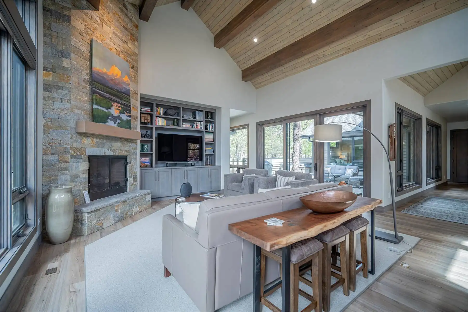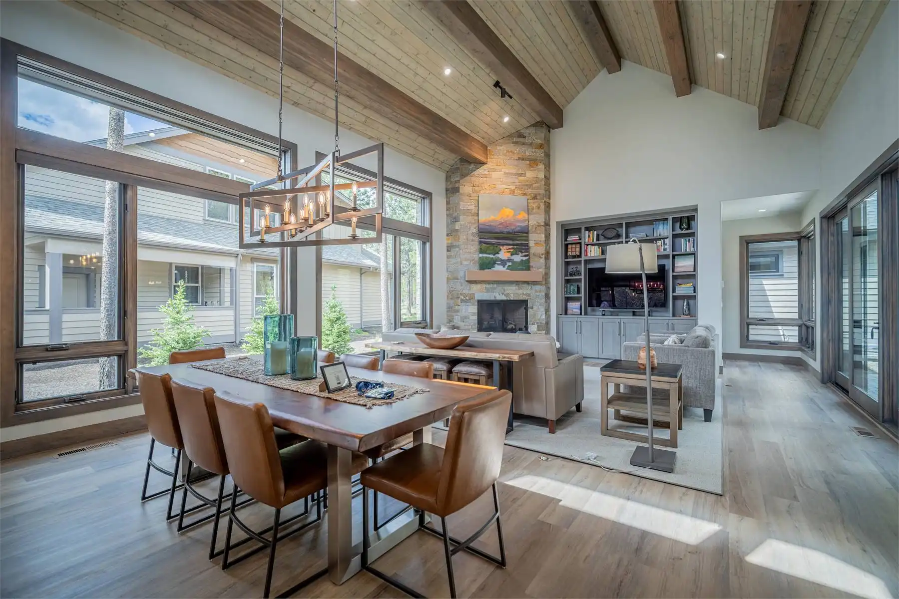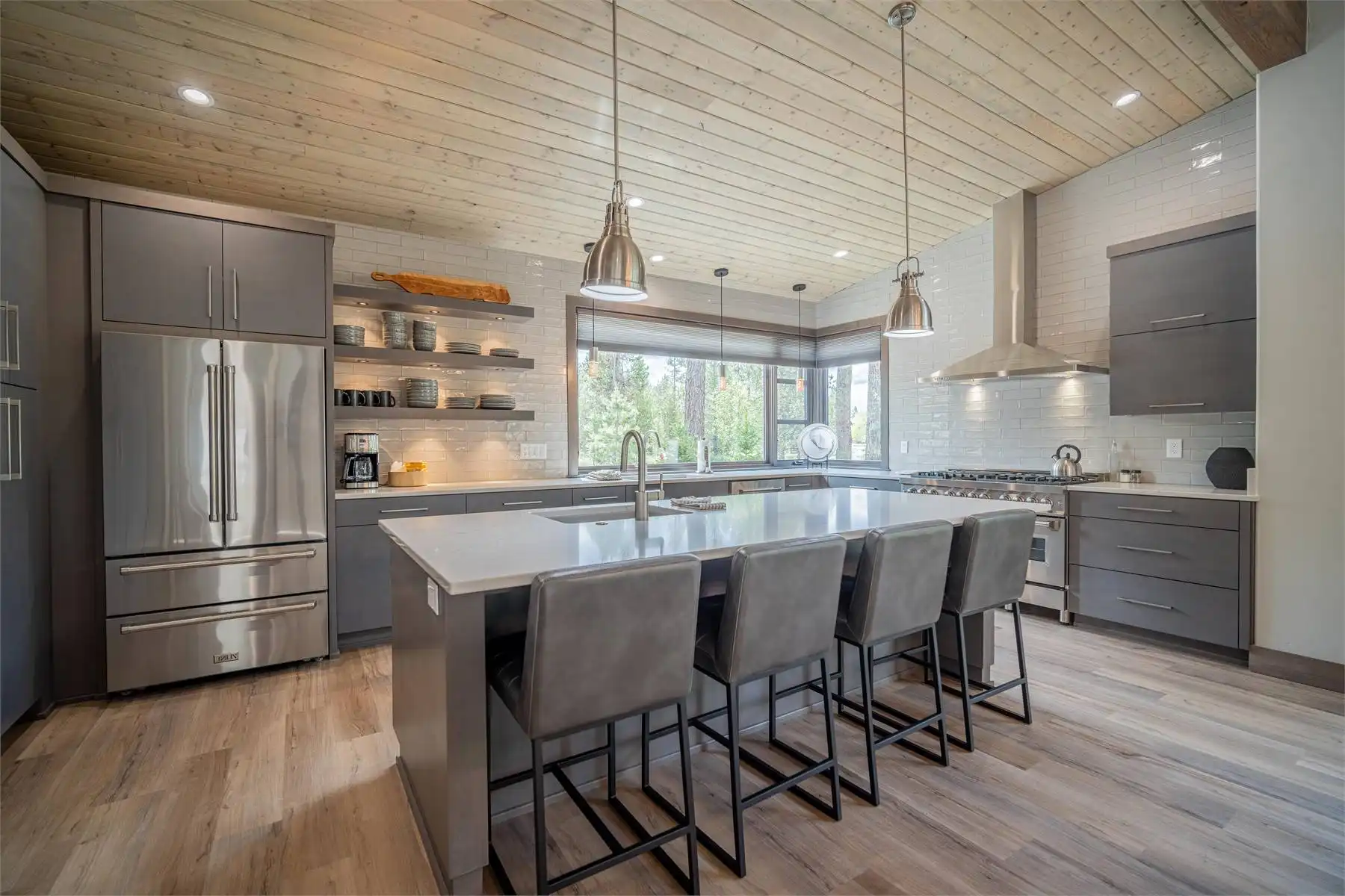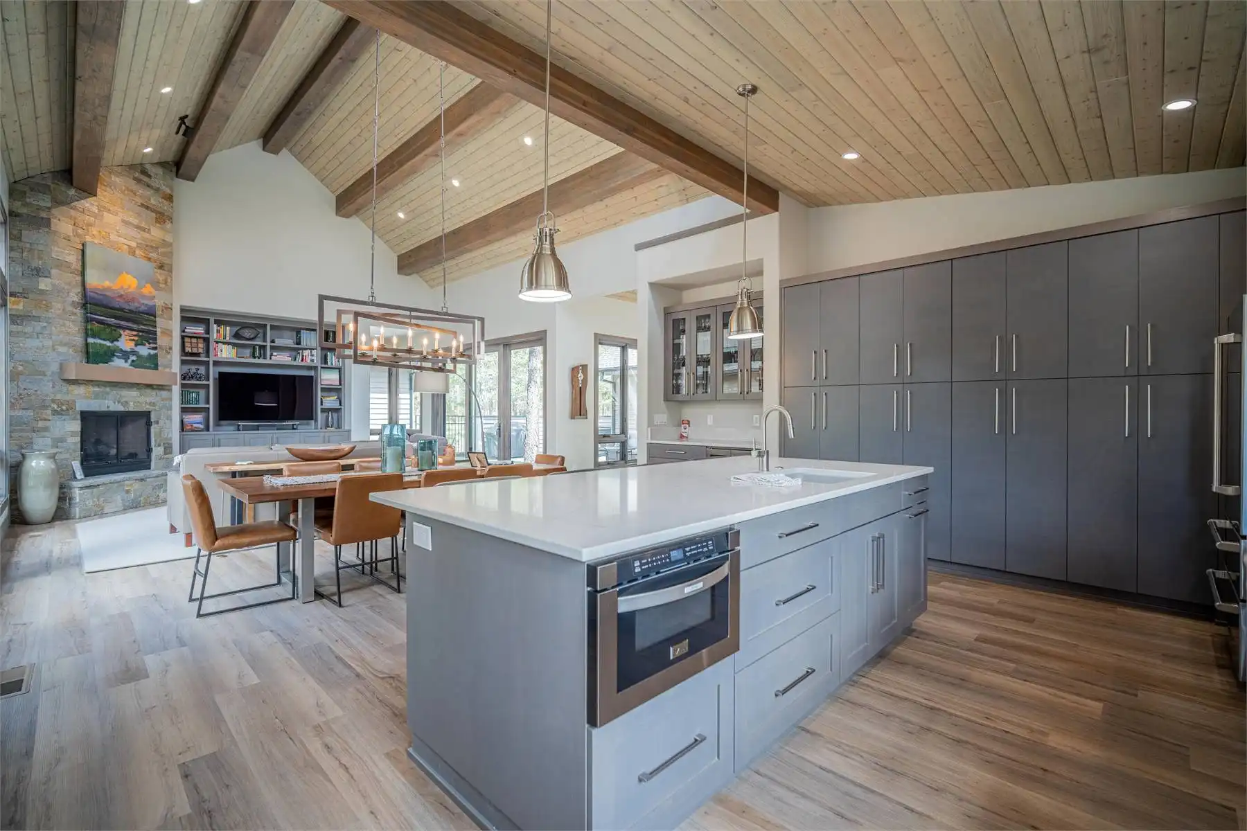 House Plan 11098 is a stunning modern mountain home with 2,979 square feet, four bedrooms, four-and-a-half baths, and a two-car garage. This unique layout places the foyer and the courtyard in the center of the floor plan. The U-shaped kitchen, vaulted great room, and primary suite are located on one side. On the other, you'll find two smaller bedroom suites, the powder room, the mudroom, and the laundry room. The final bedroom and hall bath are privately located upstairs. Make sure to appreciate all the brightening windows this design has to offer!