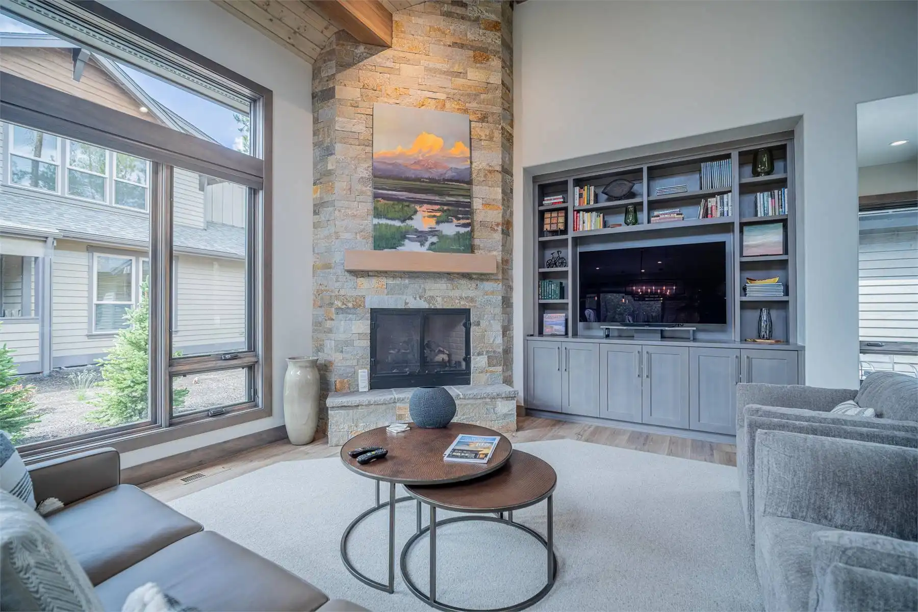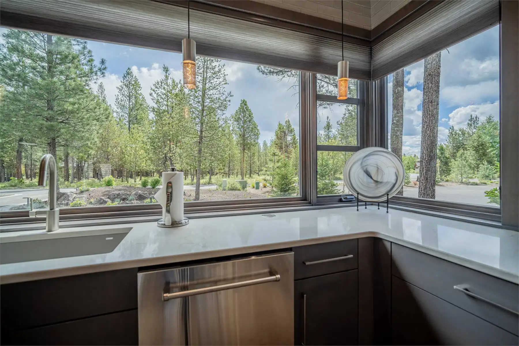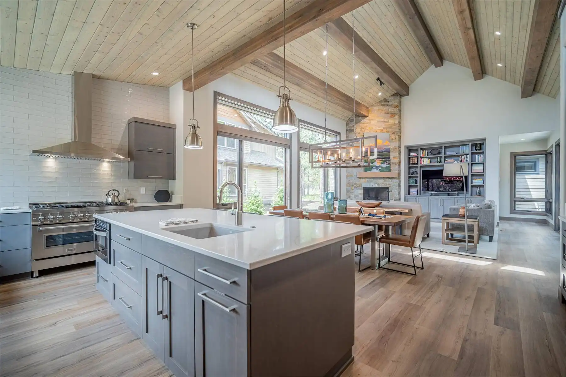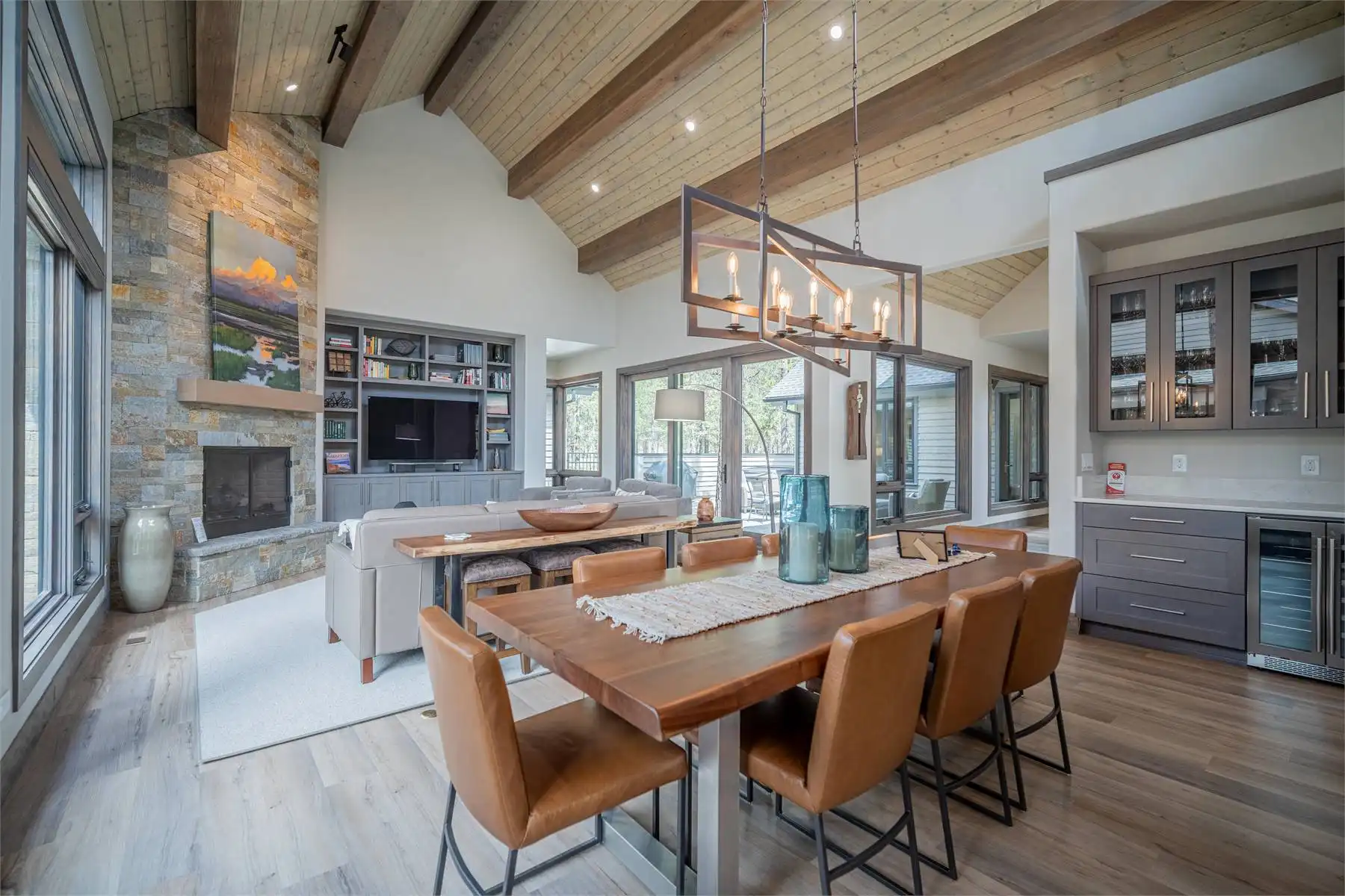 House Plan 11098 is a stunning modern mountain home with 2,979 square feet, four bedrooms, four-and-a-half baths, and a two-car garage. This unique layout places the foyer and the courtyard in the center of the floor plan. The U-shaped kitchen, vaulted great room, and primary suite are located on one side. On the other, you'll find two smaller bedroom suites, the powder room, the mudroom, and the laundry room. The final bedroom and hall bath are privately located upstairs. Make sure to appreciate all the brightening windows this design has to offer!