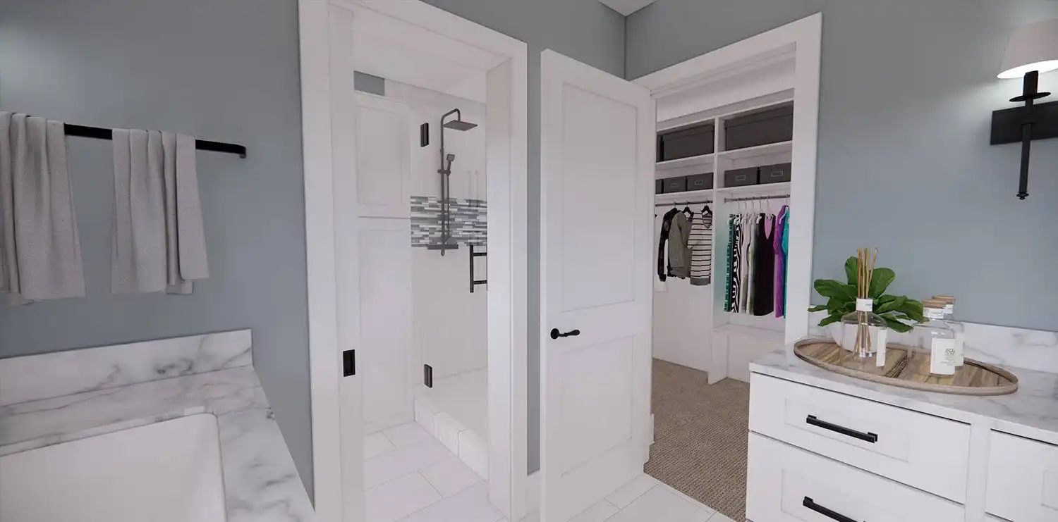 House Plan 11100 brings classic Craftsman architecture to life with wood and shake accents and a thoughtfully designed 2,332 square foot layout. This 2-story home includes 4 bedrooms, 3.5 bathrooms, and a 2-car garage, offering an ideal layout for modern families. The open-concept main floor features a great room with fireplace, a bright dining area, and a spacious kitchen complete with a center island and walk-in pantry. Whether hosting guests or enjoying a quiet night in, this connected layout makes every moment feel inviting. Upstairs, the primary suite offers a luxurious retreat with double vanities, a walk-in shower, private water closet, and a large walk-in closet with built-ins. Two additional bedrooms, each with generous closets, complete the second floor. Additional main-level features include a corner office, perfect for working from home, and a mudroom conveniently located off the garage for everyday functionality. With its inviting exterior and practical interior layout, House Plan 11100 delivers timeless charm and comfort.
