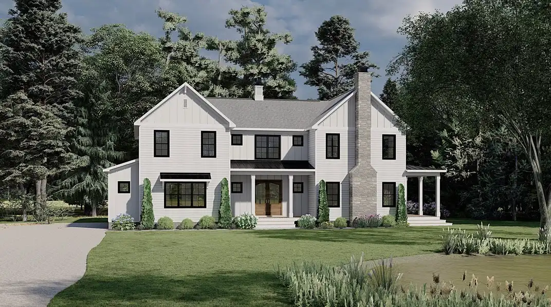 If you're looking for a farmhouse design to make your own, give House Plan 11102 a try! This gorgeous two-story home offers 3,172 square feet with four bedrooms and three-and-a-half baths. The main level welcomes you in with a wide foyer that makes a great impression. The common spaces include a gathering room, a U-shaped kitchen, and the morning room with rear views. The back hallway connects the kitchen and the foyer to the powder room and the three-car side-entry garage. Make sure not to miss all that porch space! Head upstairs to find all the bedrooms as well as a central loft and laundry room. The luxe primary suite has a five-piece bath with European styling. The other bedrooms include a smaller suite and a pair that share a Jack-and-Jill bath, so everybody can enjoy direct access!