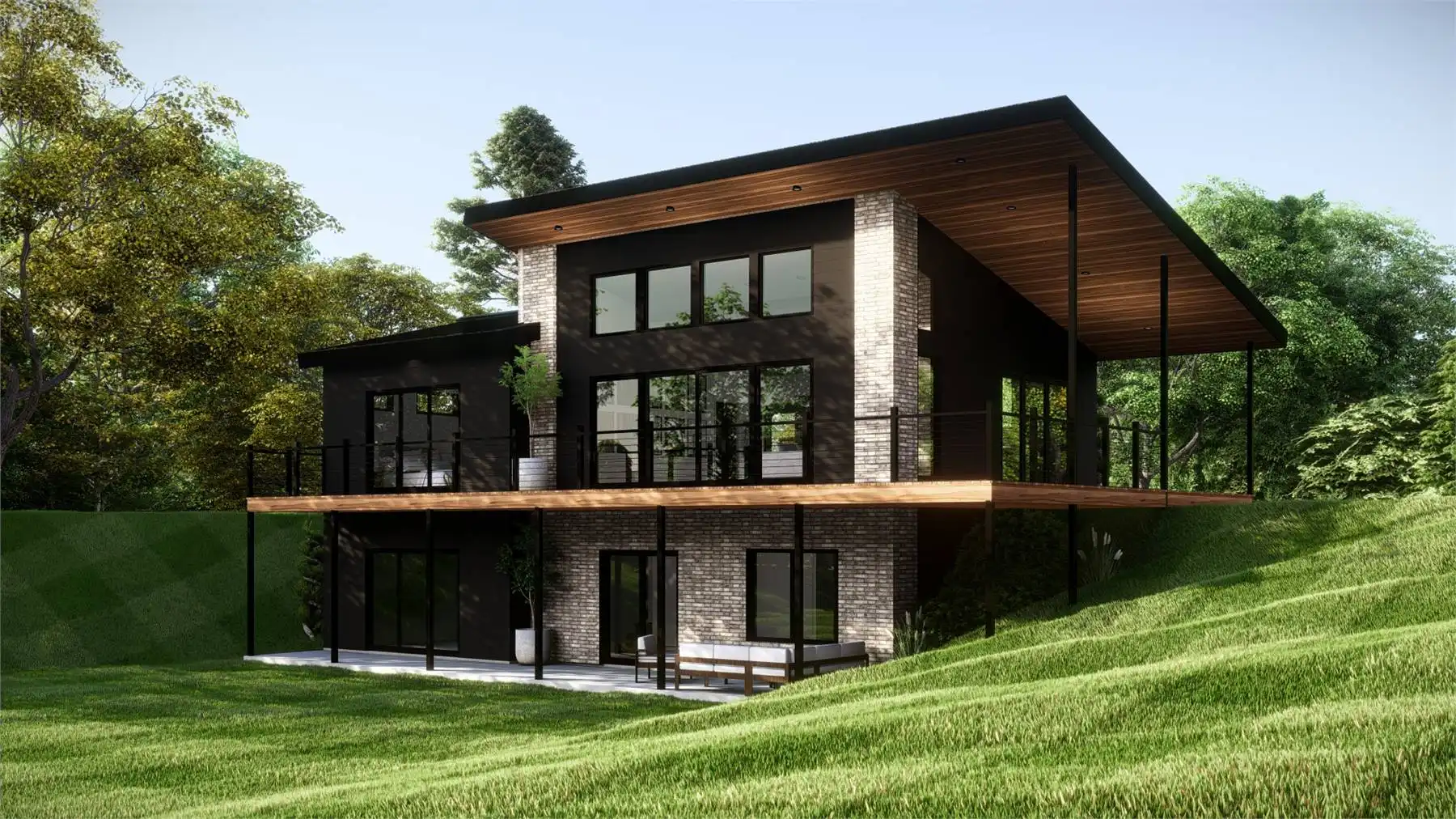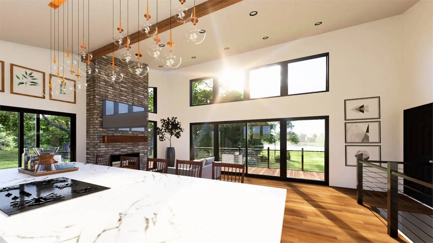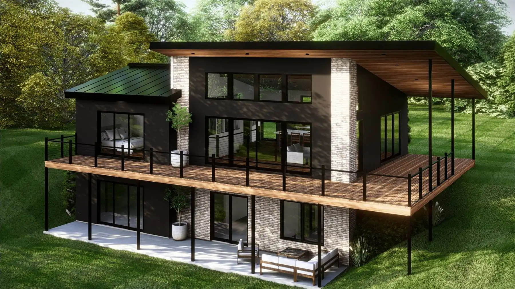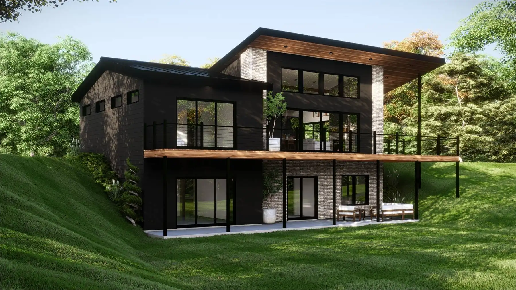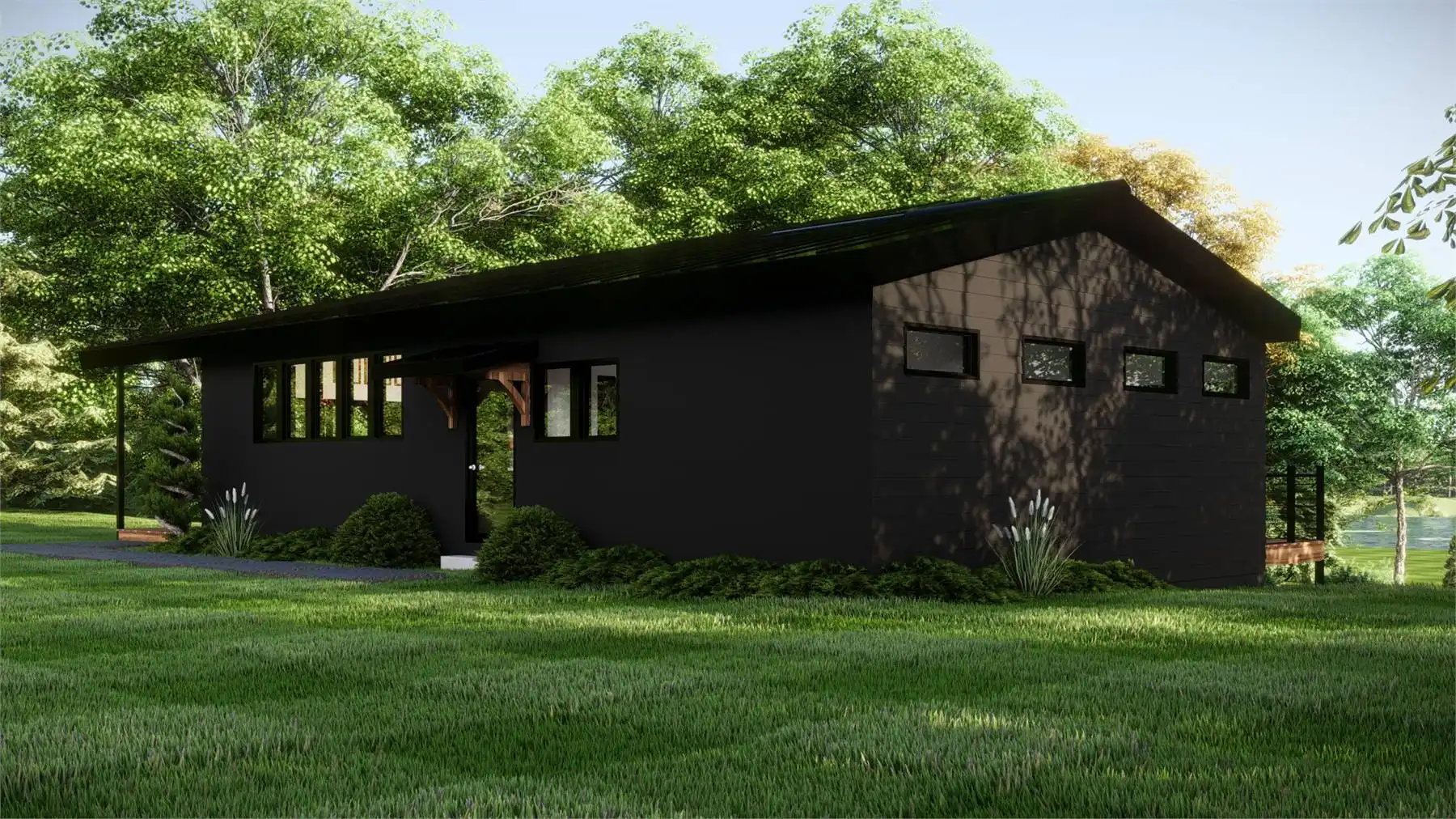At 1,067 square feet, this one-bedroom, one-bathroom design blends open living with stunning outdoor spaces. A wide covered deck wraps around the side and back, creating seamless indoor-outdoor living while capturing views from a sloped lot. Inside, the open layout highlights a kitchen with a large island, a dining area, and a great room designed for natural light and scenery. The private primary suite includes oversized windows, deck access, a spa-like ensuite with a soaking tub and walk-in shower, and a spacious walk-in closet. The optional walk-out basement expands the home with an additional bedroom, family area, full bath, and a versatile office with storage.