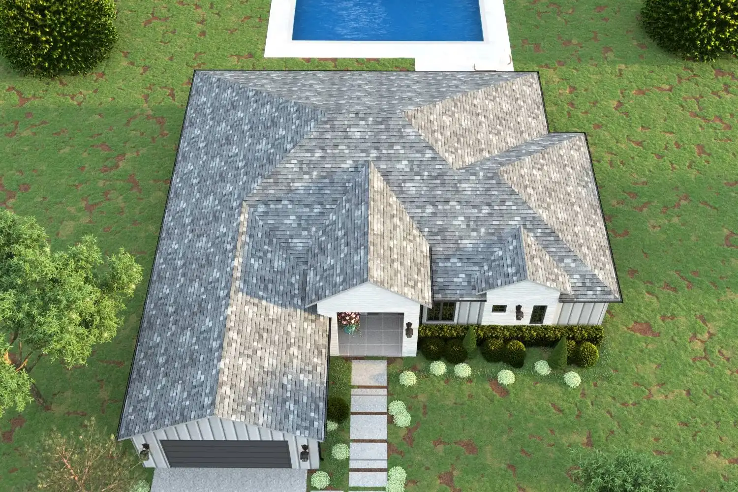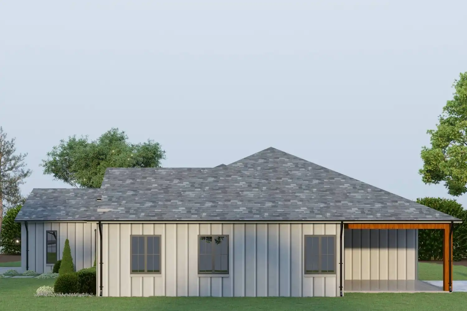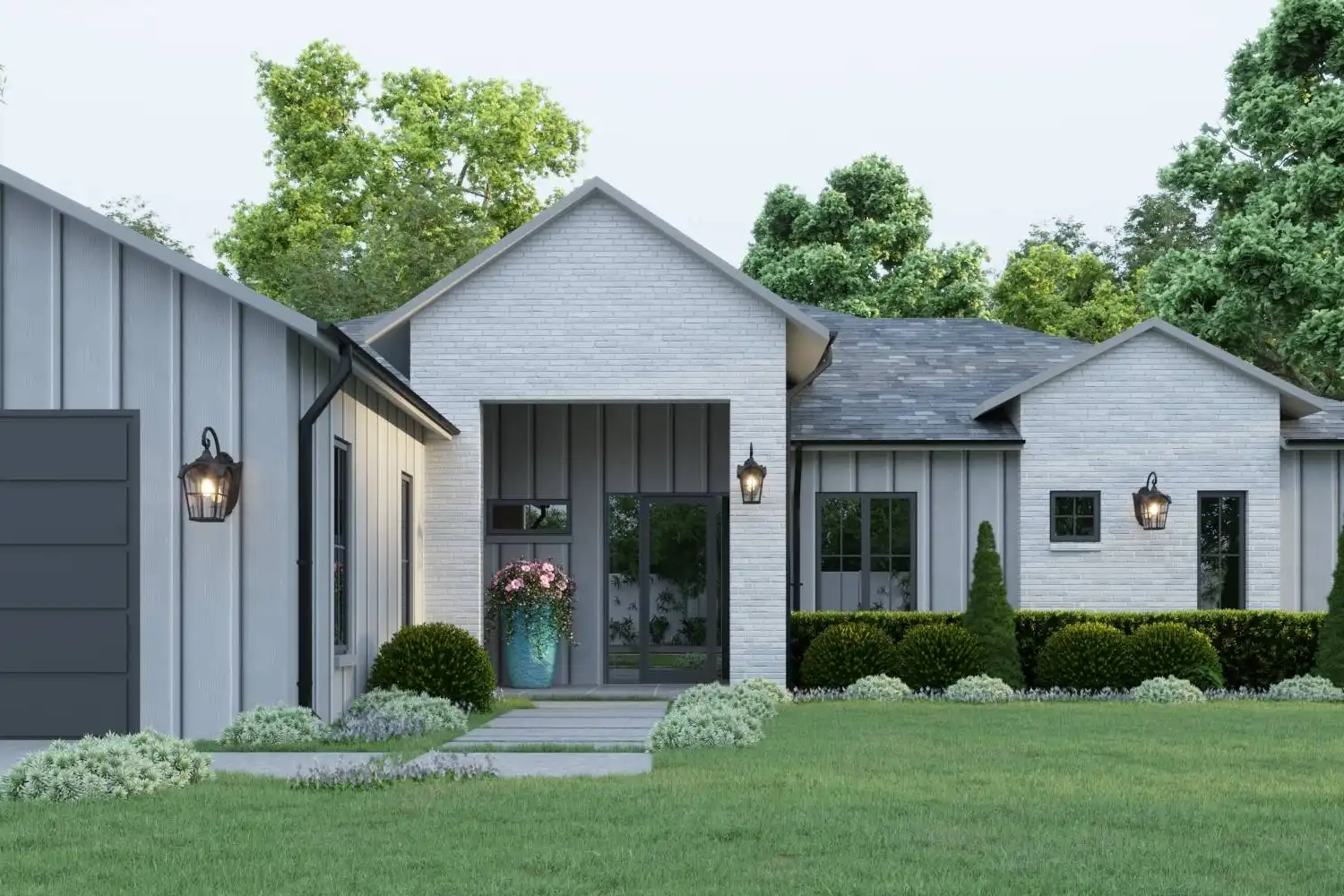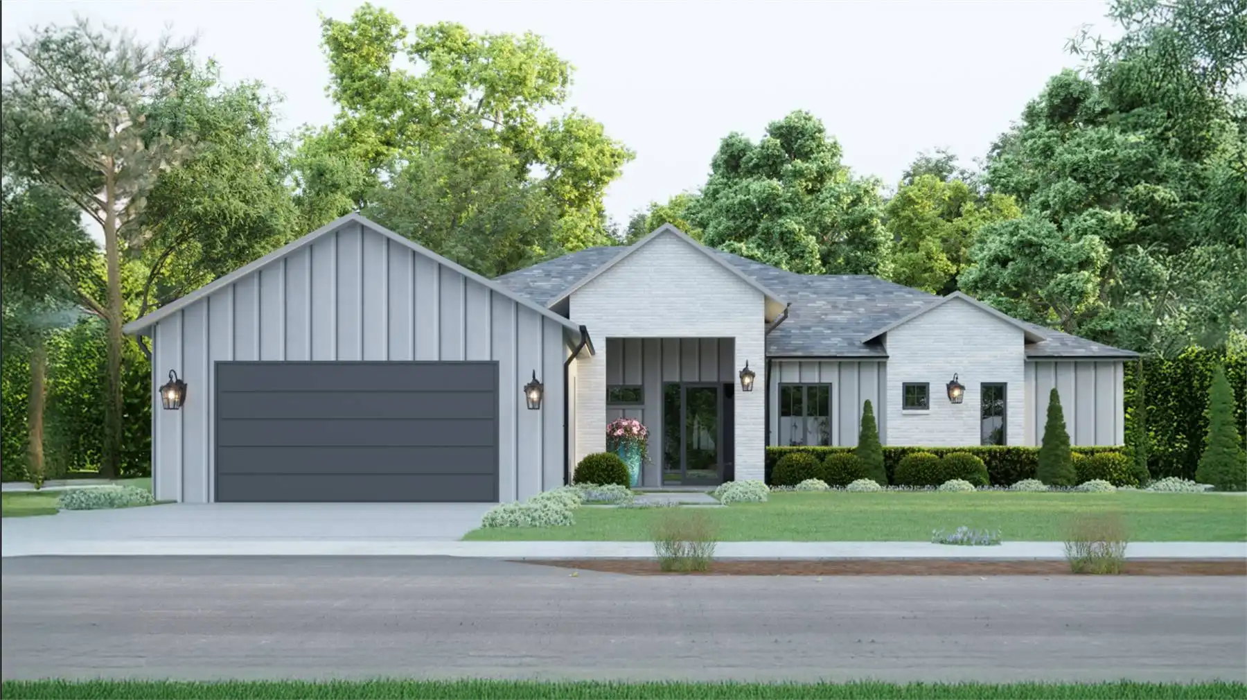 This 2,293 square foot one-story Modern Farmhouse features 4 bedrooms, 3 bathrooms, and a 2-car garage in a thoughtful layout designed for family living. From the covered front porch, step into the foyer with coat closet, where a hall to the left leads to a private office, a full bath, and the fourth bedroom. The open-concept main living area includes a spacious L-shaped kitchen with island seating and a walk-in pantry, a dining space, and a living room with a cozy fireplace and access to the rear covered patio. The primary suite is privately located at the back of the home with a luxurious ensuite that boasts a soaker tub, dual vanities, and a generous walk-in closet. Two additional bedrooms share a full bath, and a mudroom off the garage keeps things organized.