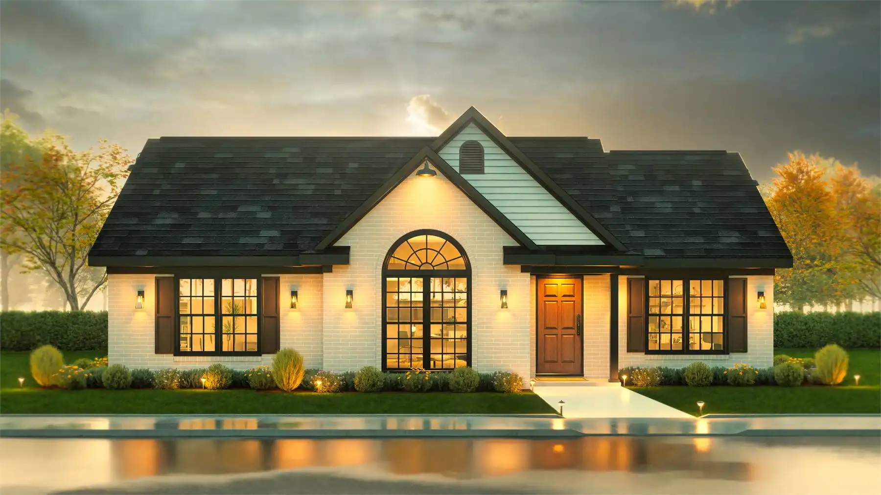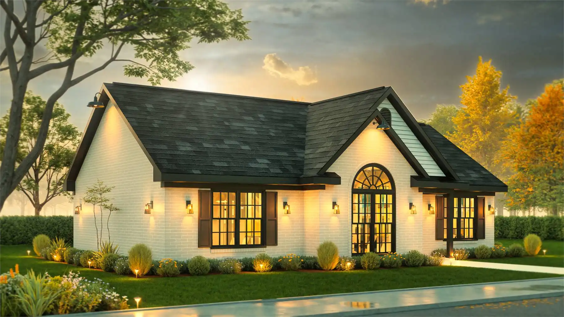 House Plan 11128 is a thoughtfully designed cottage home with 1,246 square feet of heated living space. This one-story plan includes three bedrooms and two bathrooms, making it a great fit for families, couples, or downsizers. The vaulted ceilings in the main living area add a sense of spaciousness, while the open-concept floor plan ensures a natural flow between the kitchen, dining, and living spaces. The split-bedroom arrangement keeps the primary suite private while secondary bedrooms remain close for family needs. A covered front porch enhances the home’s curb appeal and provides a relaxing outdoor retreat. Additional features include a functional L-shaped kitchen with pantry, a dining room, and a convenient first-floor laundry. Affordable, efficient, and stylish, House Plan 11128 is perfect for anyone seeking a budget-friendly home with modern comforts.