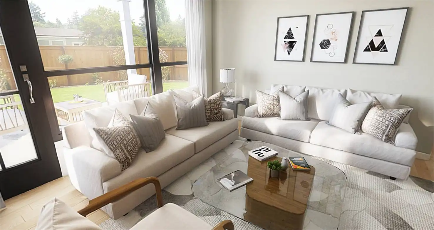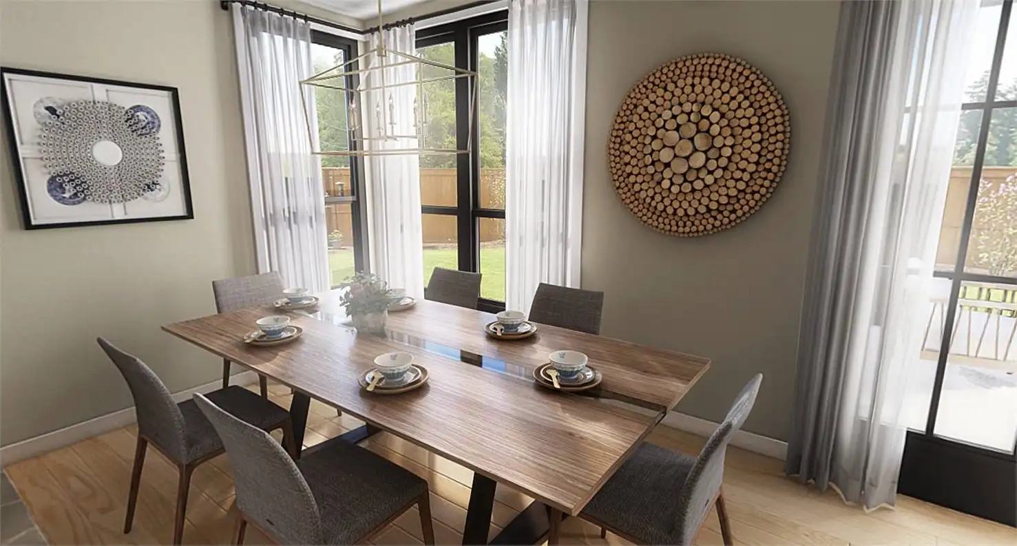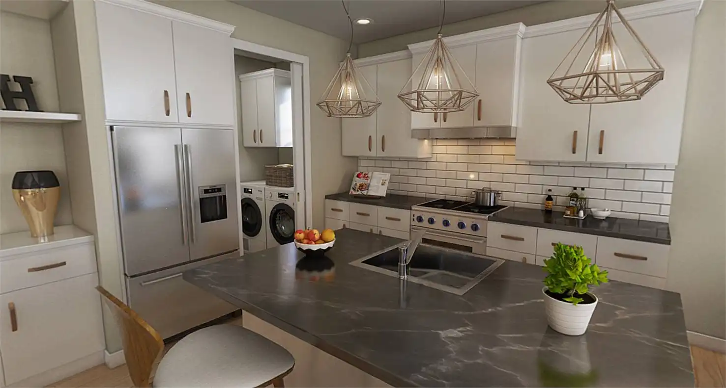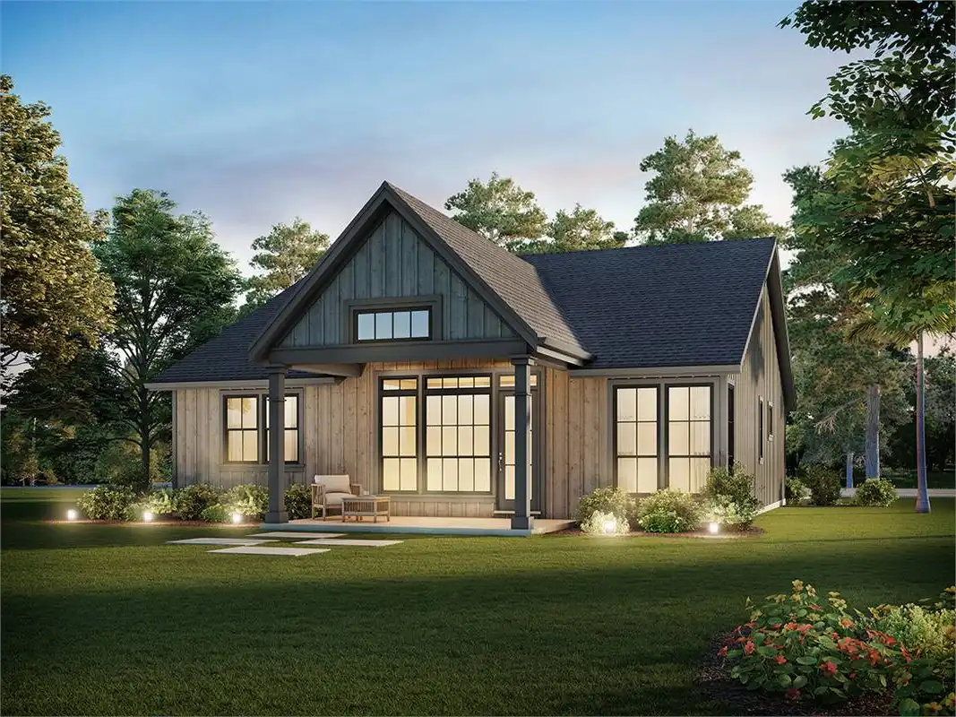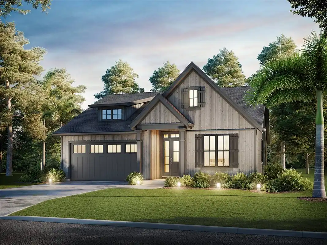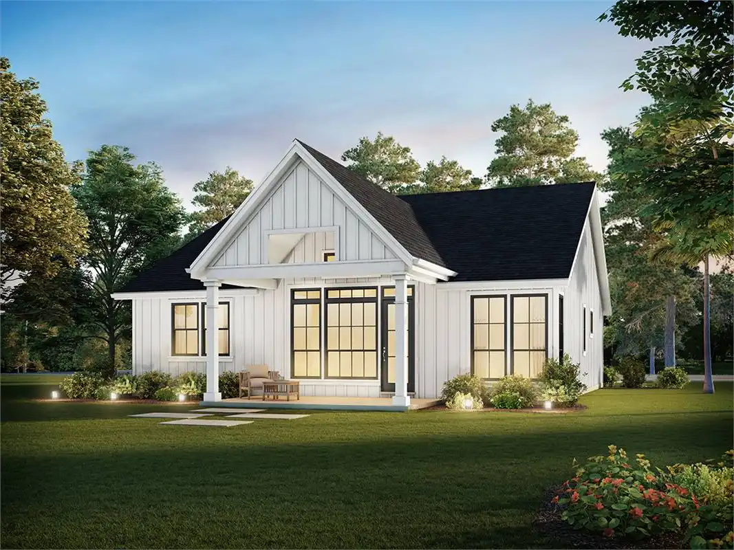 The perfect blend of sensible spaces and timeless charm, this 1,373 square foot farmhouse-inspired home is ready for you and your family. Whether you're a new couple looking to grow into a plan or an older couple who wants to settle down into a fully accessible design, this home has you covered. And with 3 bedrooms and 2.5 bathrooms all within a single ranch layout, you can rest easy that everyone can enjoy every inch of space. So whether it's a dinner party in the gorgeous island kitchen and dining area as warm natural light pours in, or a barbecue out on the back covered porch, there is so much that you can do with this home. Plus, the bedrooms offer ample relaxation for the end of each day. Be sure to explore the master suite with its spacious closet and dual vanity spa-bath!