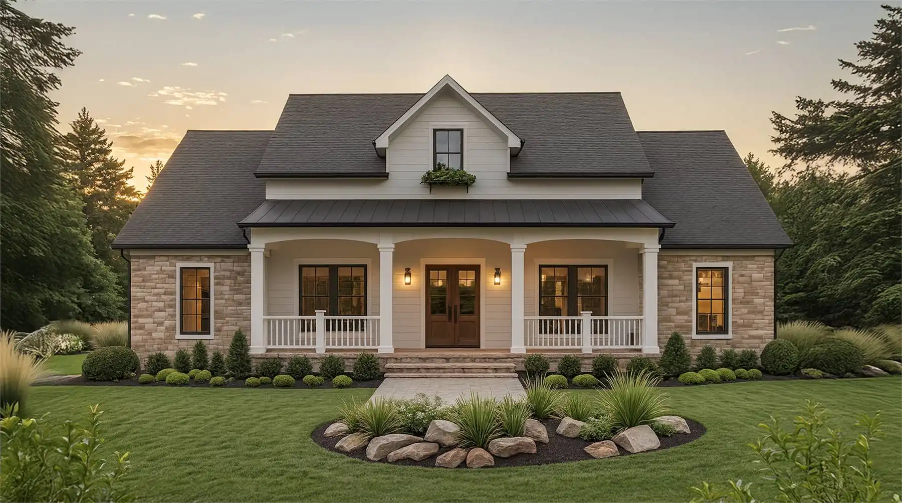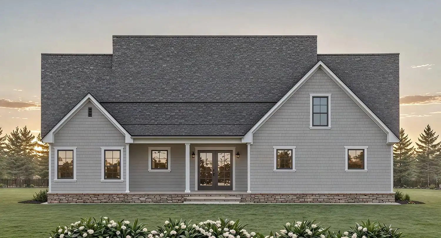 This 1.5-story design offers 2,107 square feet of thoughtfully planned living space with 3 bedrooms, 3.5 bathrooms, and a 2-car garage, combining timeless style with modern convenience. A welcoming covered porch opens into the vaulted great room with a fireplace and open connection to the kitchen and dining area, where a large island, walk-in pantry, and access to the rear covered porch create a seamless indoor-outdoor lifestyle. The private master suite features a trayed ceiling, soaking tub, walk-in shower, dual vanities, and an expansive closet, while two additional bedrooms share a full bathroom nearby. A guest half bath is also included on the main level. Upstairs, the spacious bonus room with its own full bath can function as a guest suite, home office, or media space. With its family-friendly layout, large laundry room, ample storage, and charming exterior with stone details, this home is as practical as it is inviting.