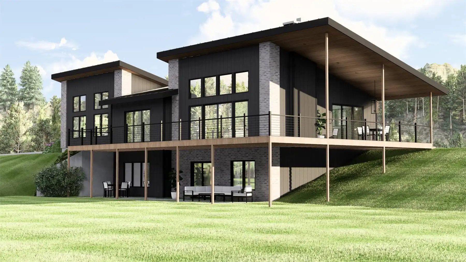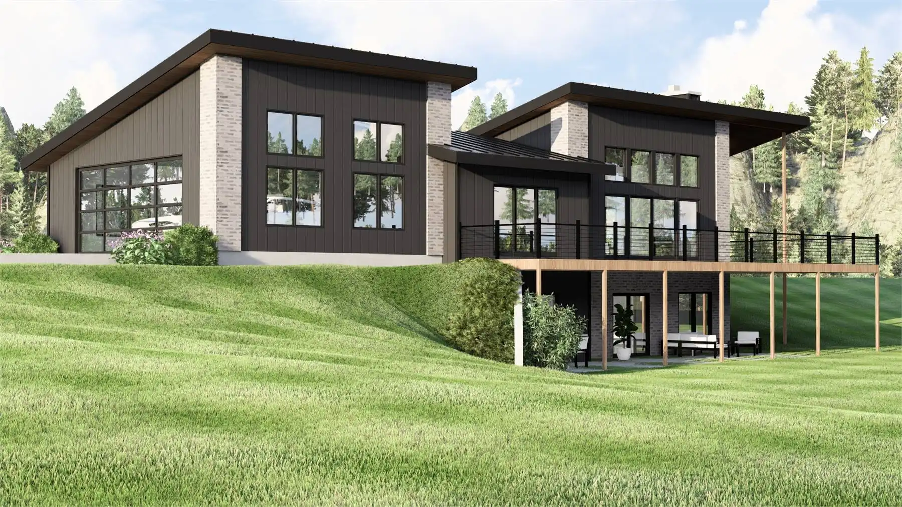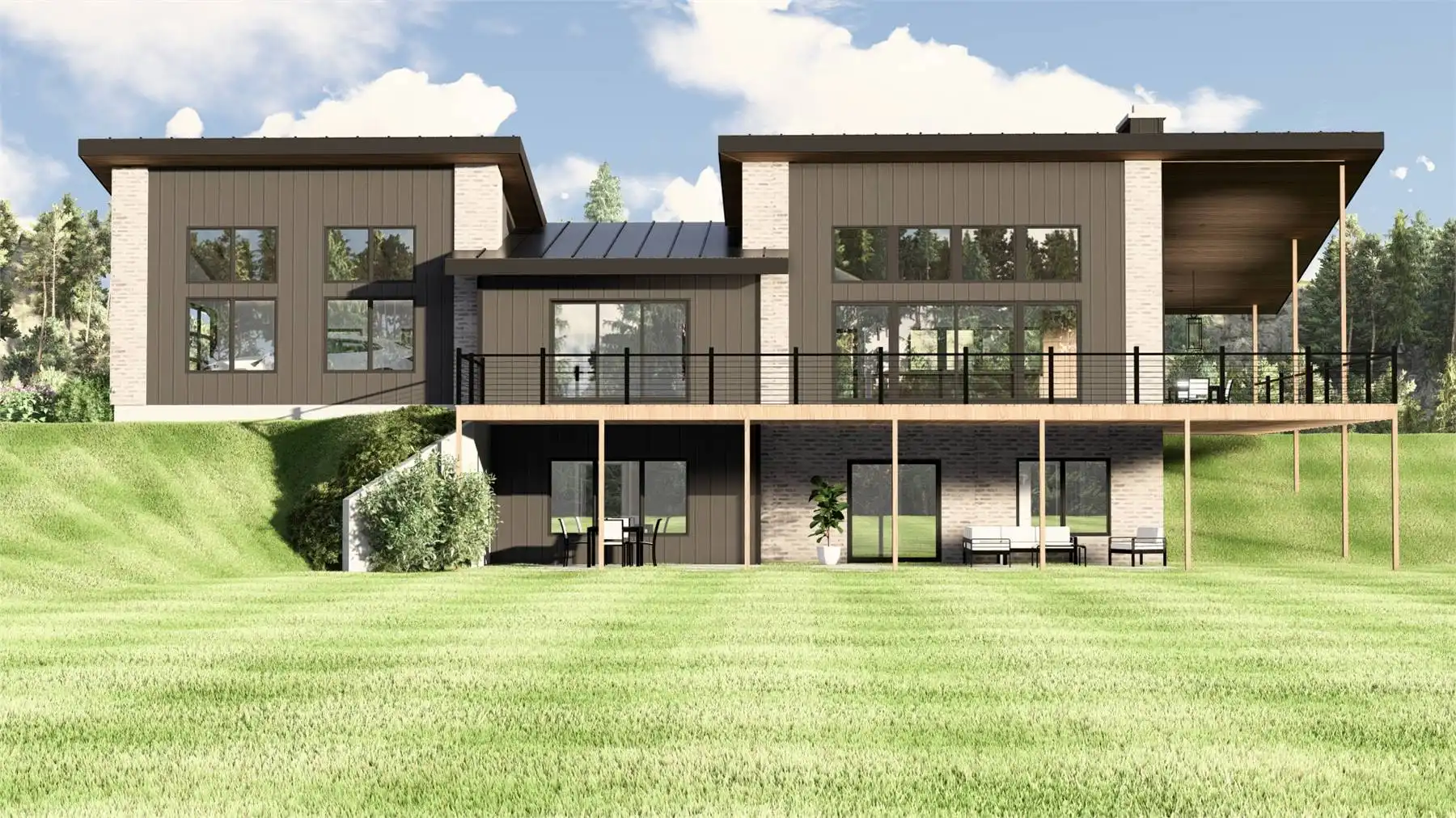 House Plan 11147 delivers a view-focused layout with expansive outdoor living. The great room, dining area, and island kitchen connect seamlessly for relaxed entertaining. The primary suite sits on the main level with a spa-style bath and walk-in closet, while a powder room serves guests. A mud room and first-floor laundry keep daily life tidy, and the attached, side-entry garage provides easy access. On scenic sites, the covered porch and wide deck extend living outside. Built with 2×6 walls and 9' ceilings, the plan is optimized for efficiency and comfort. Expand later with the optional walkout lower level (≈1,239 sq. ft.), adding two bedrooms, 2.5 bath, and flexible rec space.
