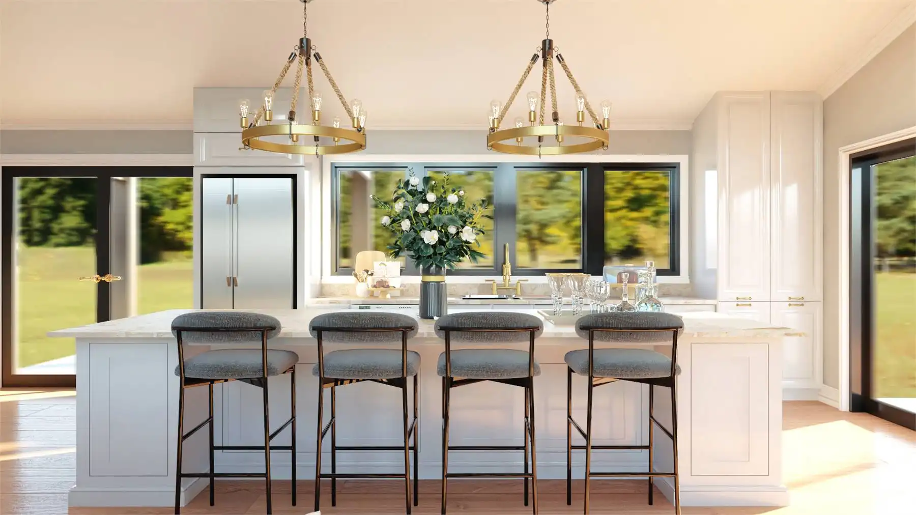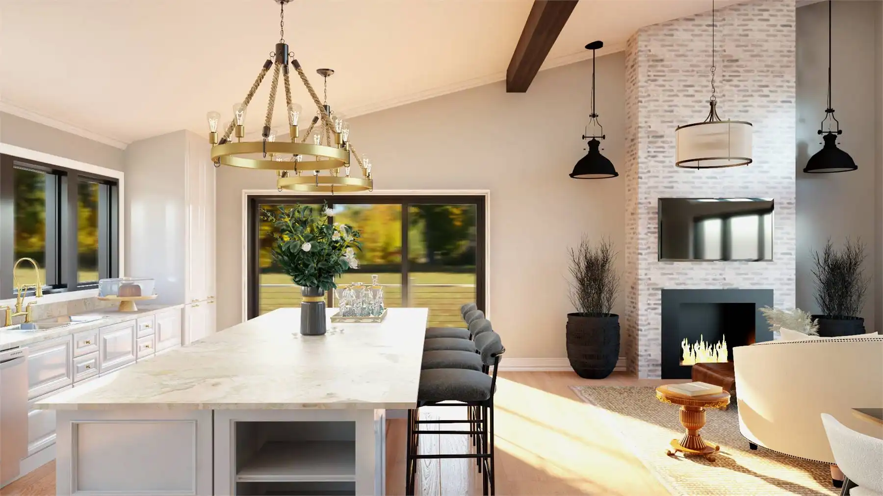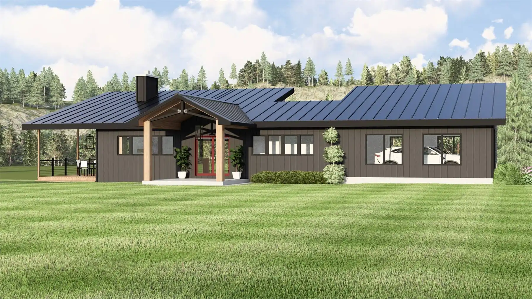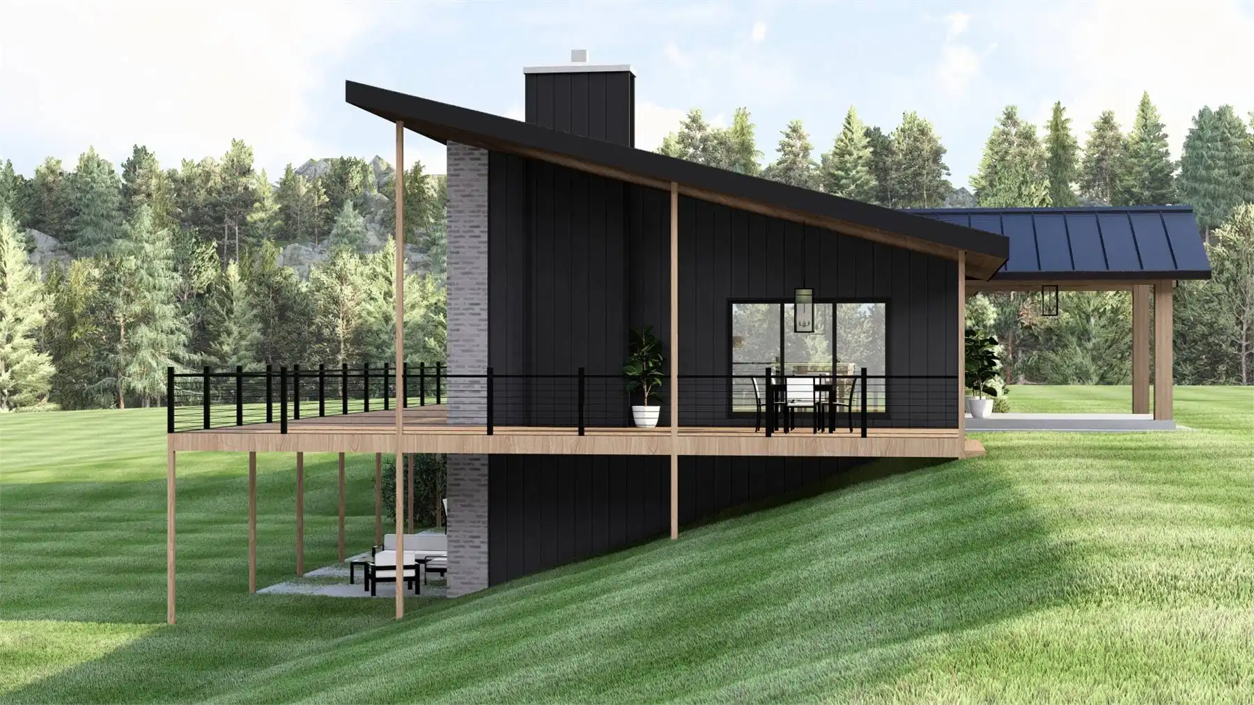 House Plan 11147 delivers a view-focused layout with expansive outdoor living. The great room, dining area, and island kitchen connect seamlessly for relaxed entertaining. The primary suite sits on the main level with a spa-style bath and walk-in closet, while a powder room serves guests. A mud room and first-floor laundry keep daily life tidy, and the attached, side-entry garage provides easy access. On scenic sites, the covered porch and wide deck extend living outside. Built with 2×6 walls and 9' ceilings, the plan is optimized for efficiency and comfort. Expand later with the optional walkout lower level (≈1,239 sq. ft.), adding two bedrooms, 2.5 bath, and flexible rec space.