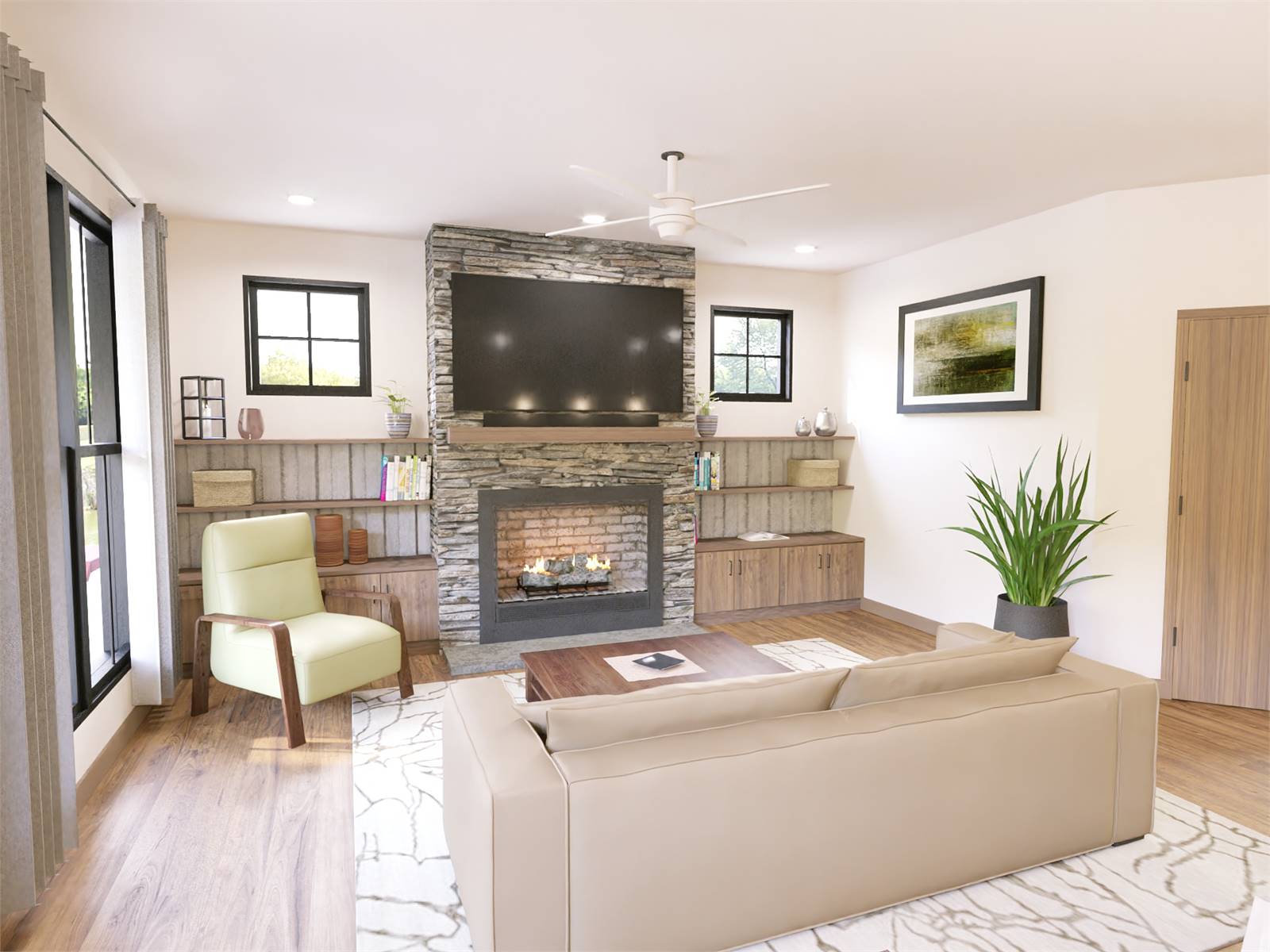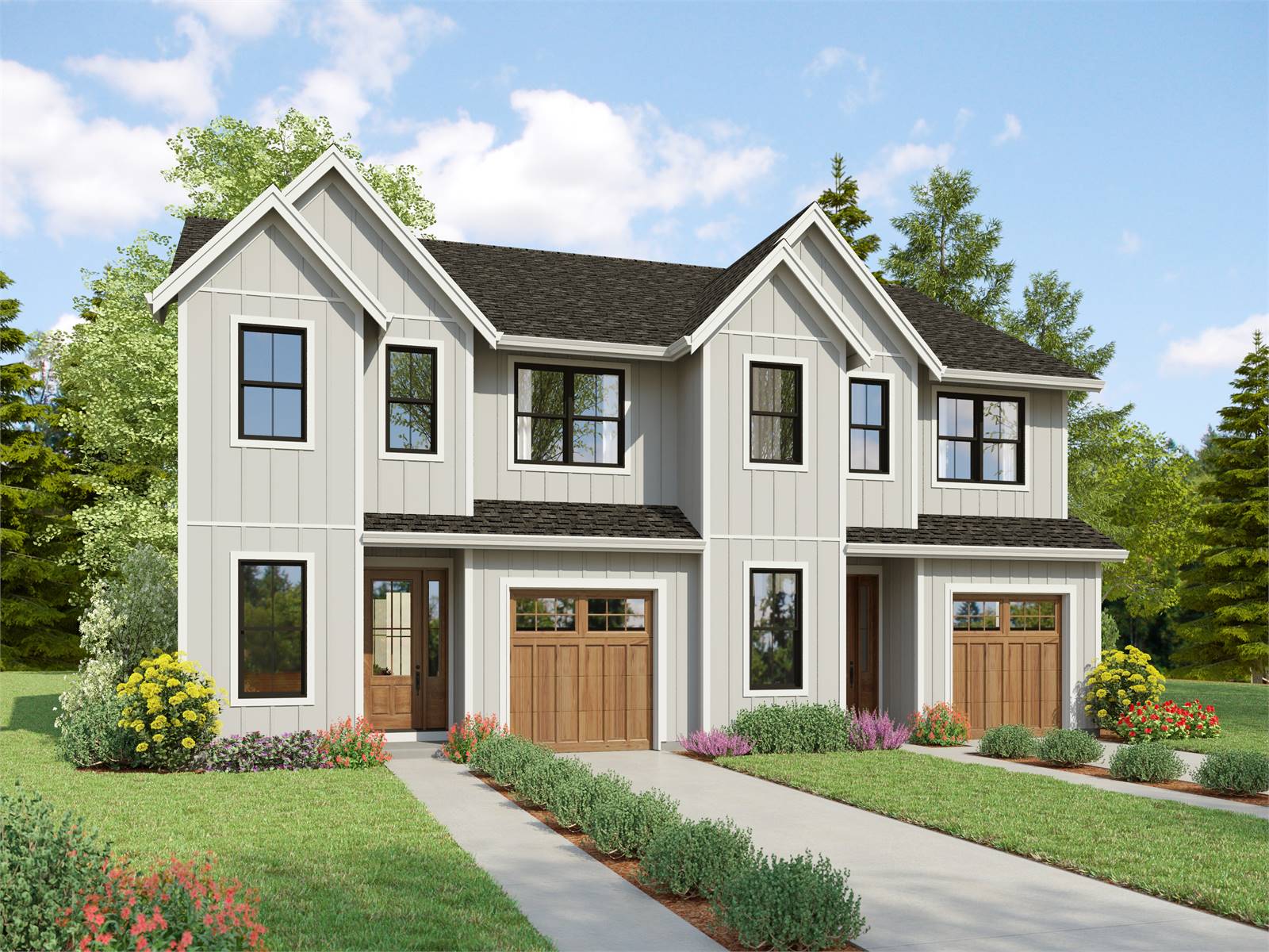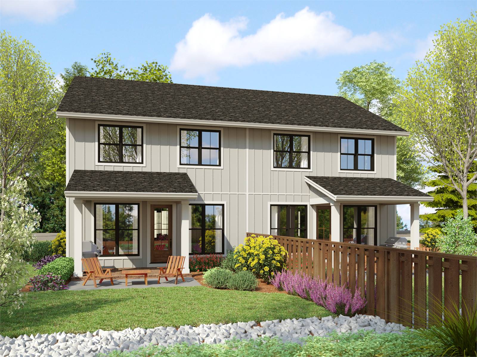 House Plan 11149 delivers a modern farmhouse duplex designed for flexibility and style. Each unit spans 1,787 square feet with 3 bedrooms and 2 bathrooms, making it ideal for families or tenants. The main floor features an open living area with a great room, dining space, and kitchen with island seating. Upstairs, a loft adds bonus space alongside a private primary suite with walk-in closet and spa-like bath. Two additional bedrooms share a full bath, providing comfort for family or guests. With an attached garage for each unit and covered porches, this duplex combines charm with convenience. Offering 3,574 total square feet across both units, House Plan 11149 is perfect for multi-family living or investment opportunities.