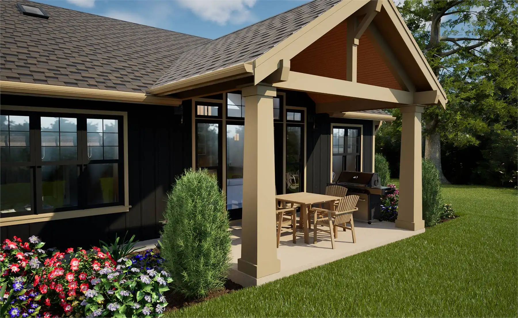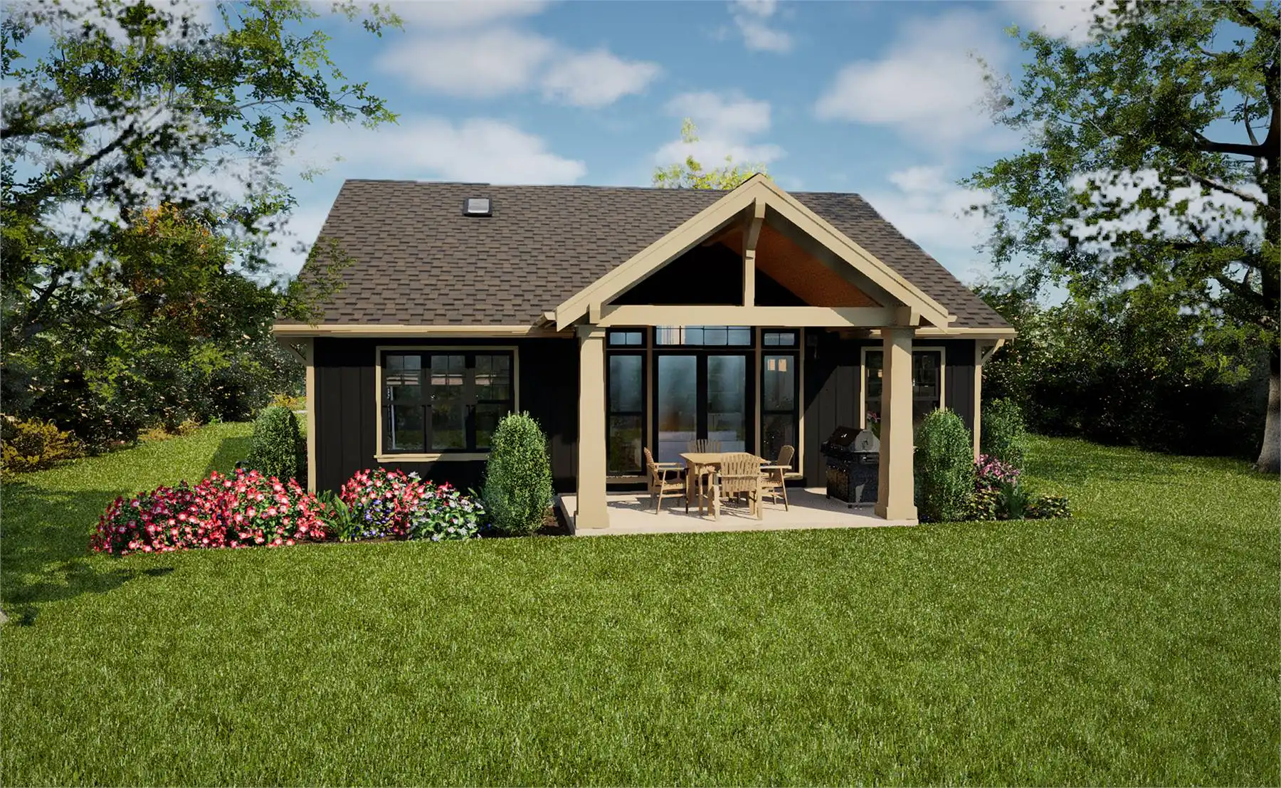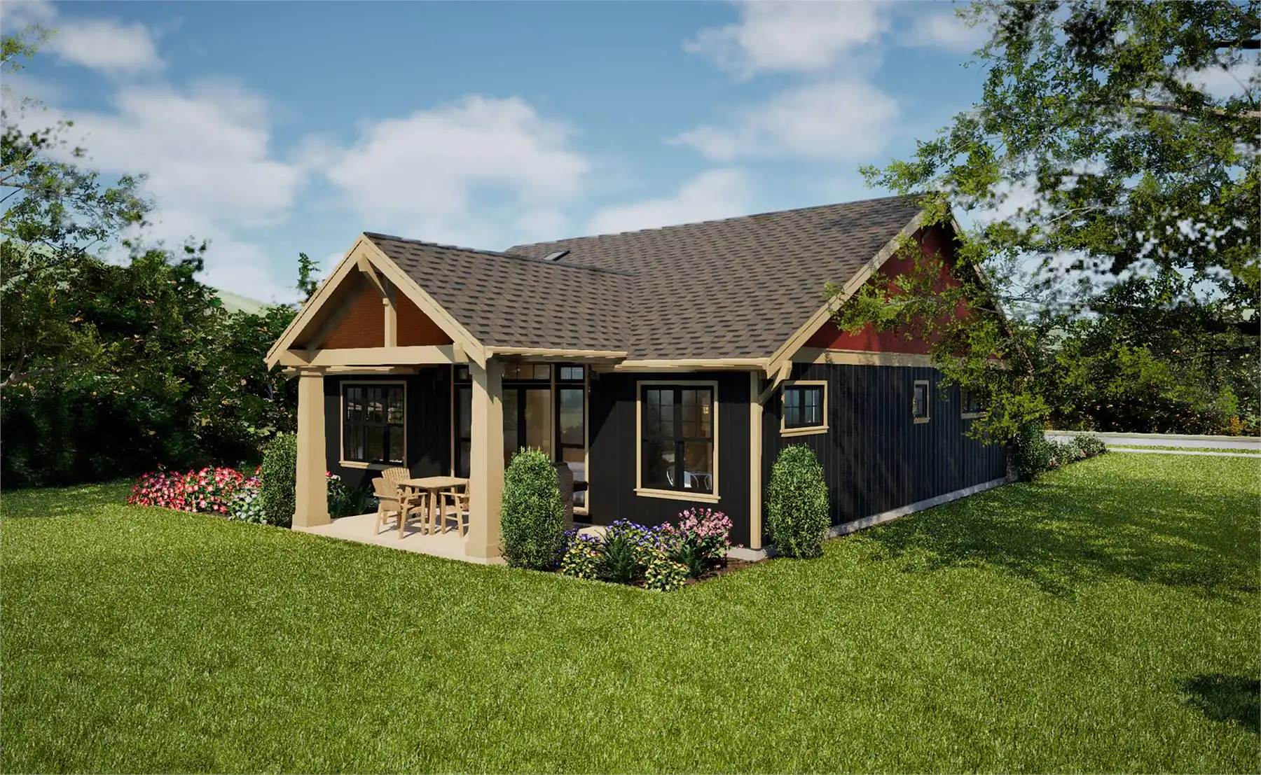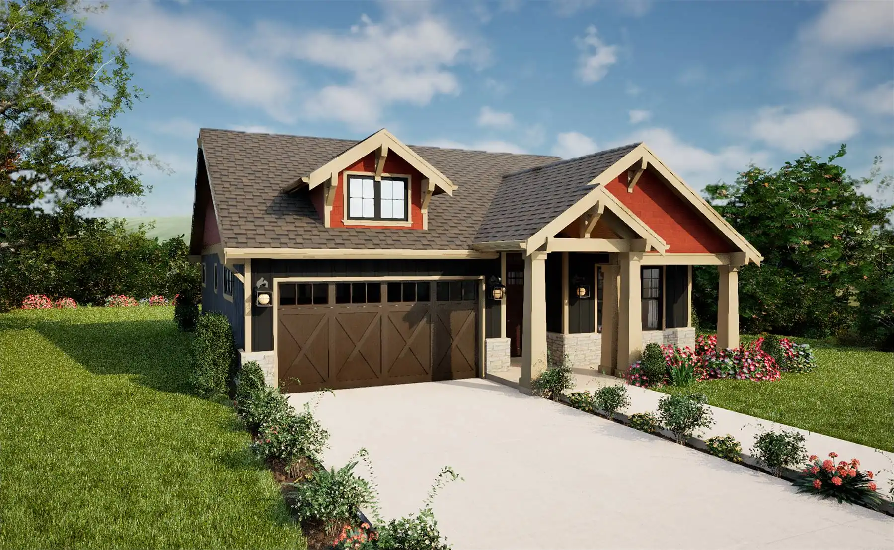 House Plan 11161 is a lovely little ranch with Craftsman style that has so much to offer in an affordable package! In 1,396 square feet, you'll find three bedrooms and two bathrooms split in two halls on the same side of the house. On the other, the two-car garage sits in front of the great room to provide privacy from the street. Check out that vaulted living area and L-shaped island kitchen! If you like vaulted ceilings, make sure to notice the covered porches in front and back that offer just that!