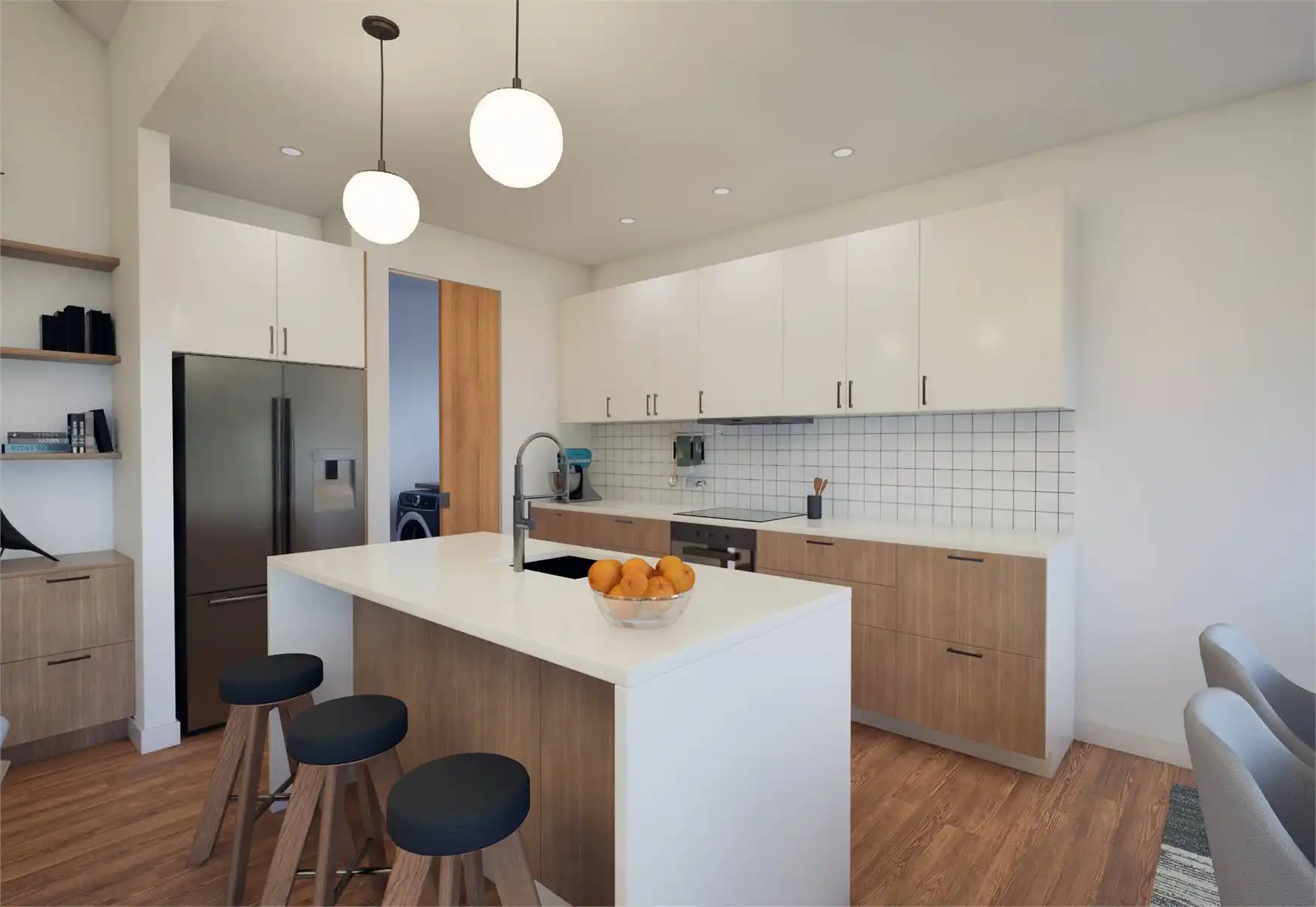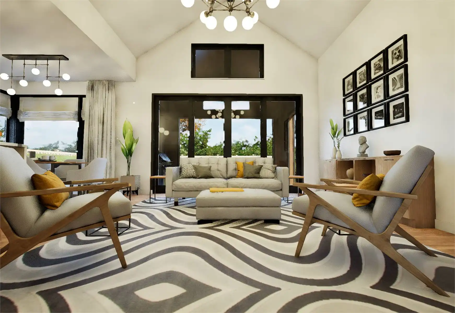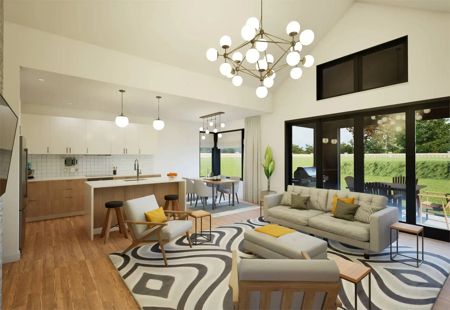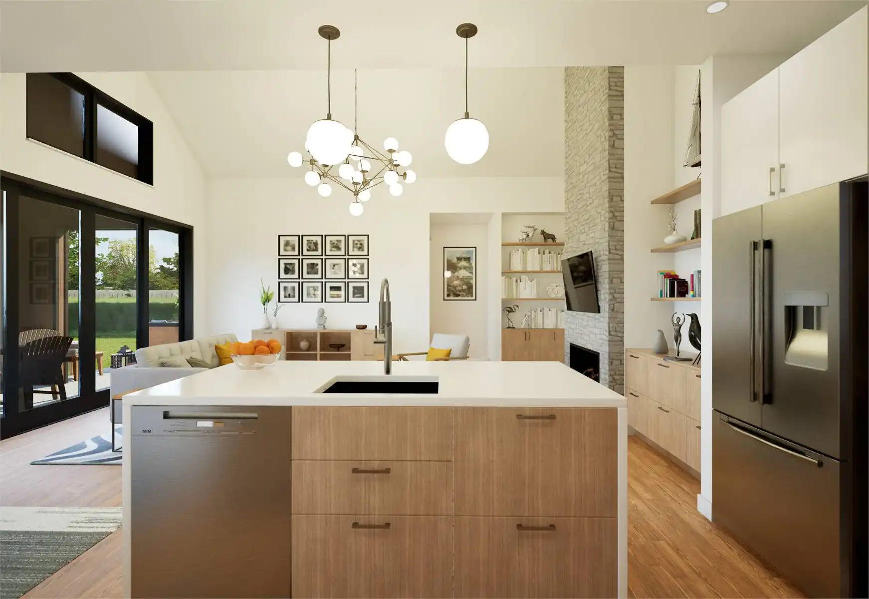 House Plan 11162 is a lovely little transitional home of Scandinavian inspiration. It offers 1,393 square feet with three bedrooms and two bathrooms on one story as well as a two-car garage for parking flexibility. The layout places two bedrooms and a hall bath off the foyer, the four-piece primary suite behind that, and the open-concept great room with a vaulted ceiling and an island kitchen behind the garage. The laundry and a pantry are conveniently consolidated off the kitchen while the back porch continues the vaulted ceiling of the great room for amazing ambiance!