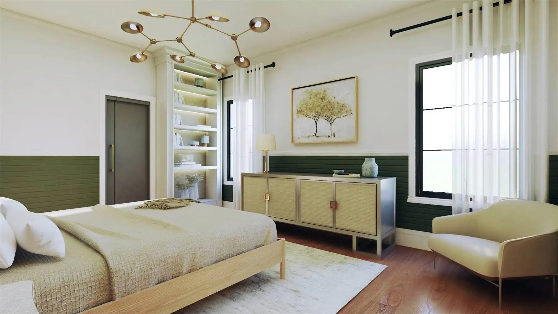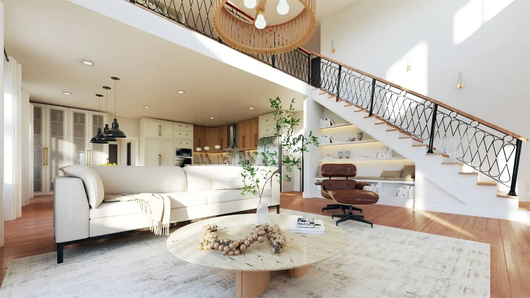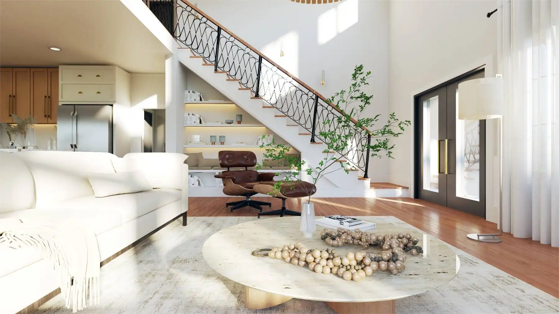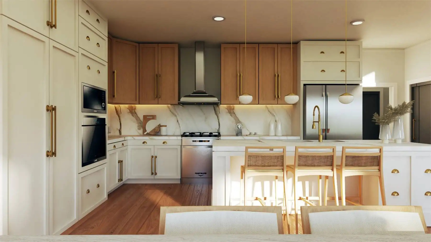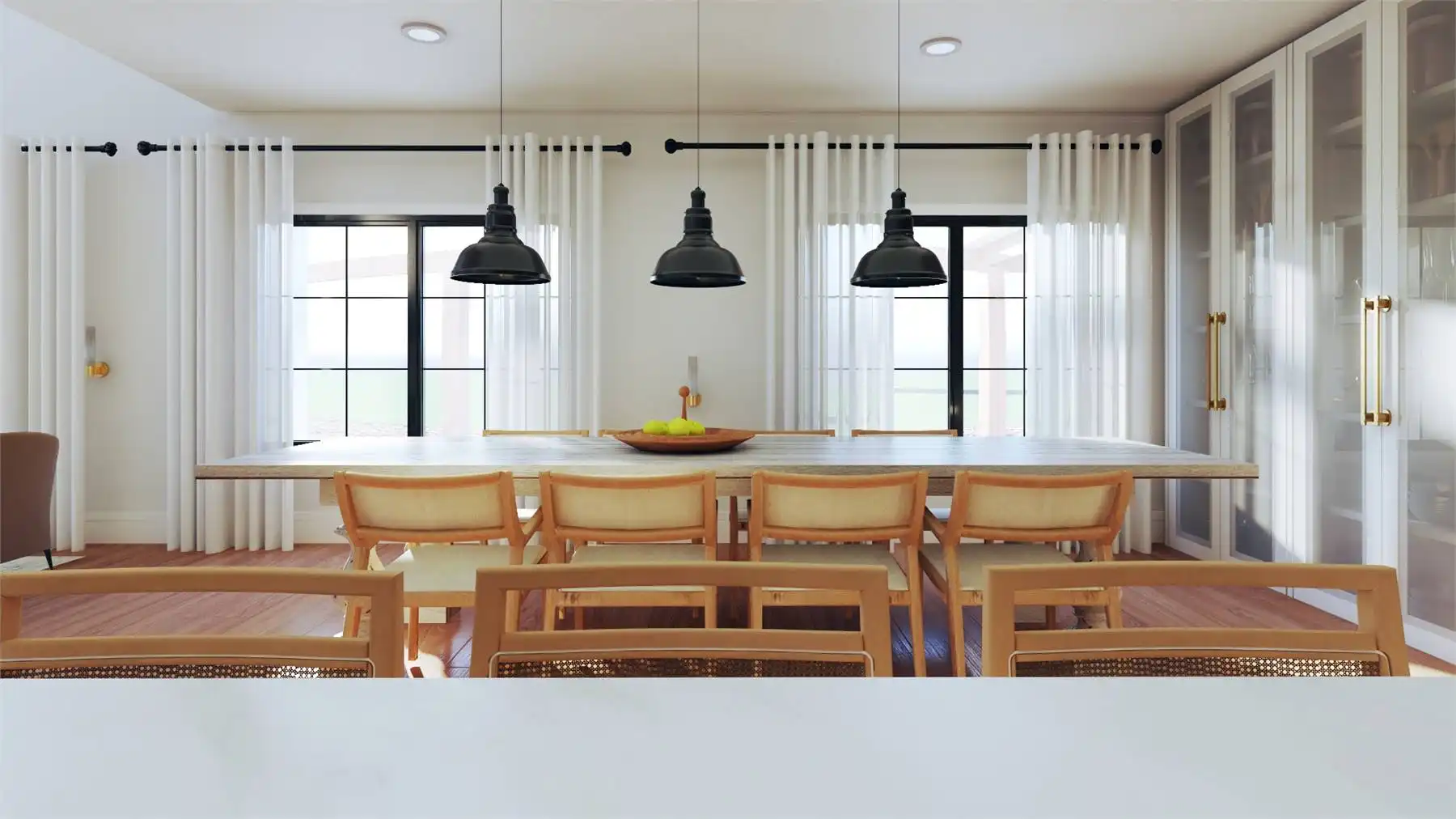 Plan 11167 captures everything homeowners love about a barndominium with modern farmhouse appeal. This 2,743-square-foot design features five bedrooms, three bathrooms, and endless spaces that blend style with functionality. The exterior showcases a generous wraparound porch, while inside, the two-story great room welcomes you with bright, open living. The dining area and expansive island kitchen create the perfect setting for gatherings, with room to seat family and friends.