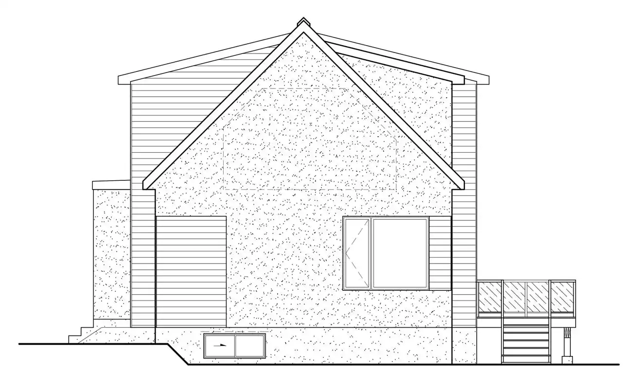 Entering from the modest front porch (the smaller deck at the top of the visual is the actual front entry), you’ll already have a clean view straight out the back with the large windows and sliding glass doors and the open concept flows into the kitchen and dining areas. Your laundry and pantry share the large walk-in adjacent to the kitchen.