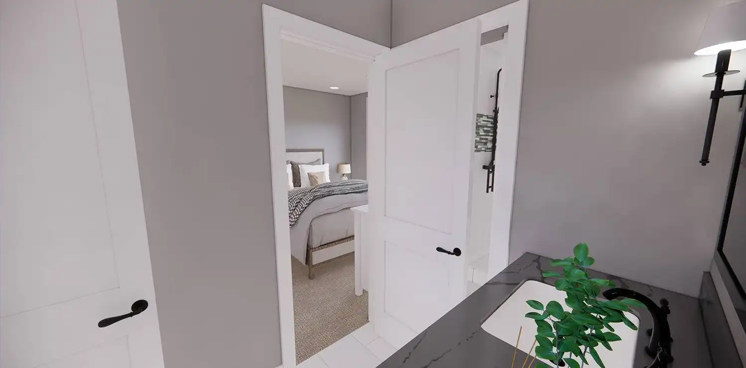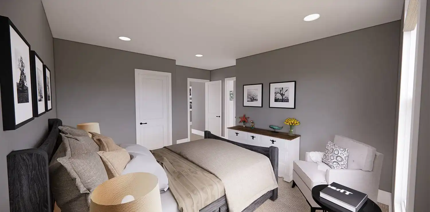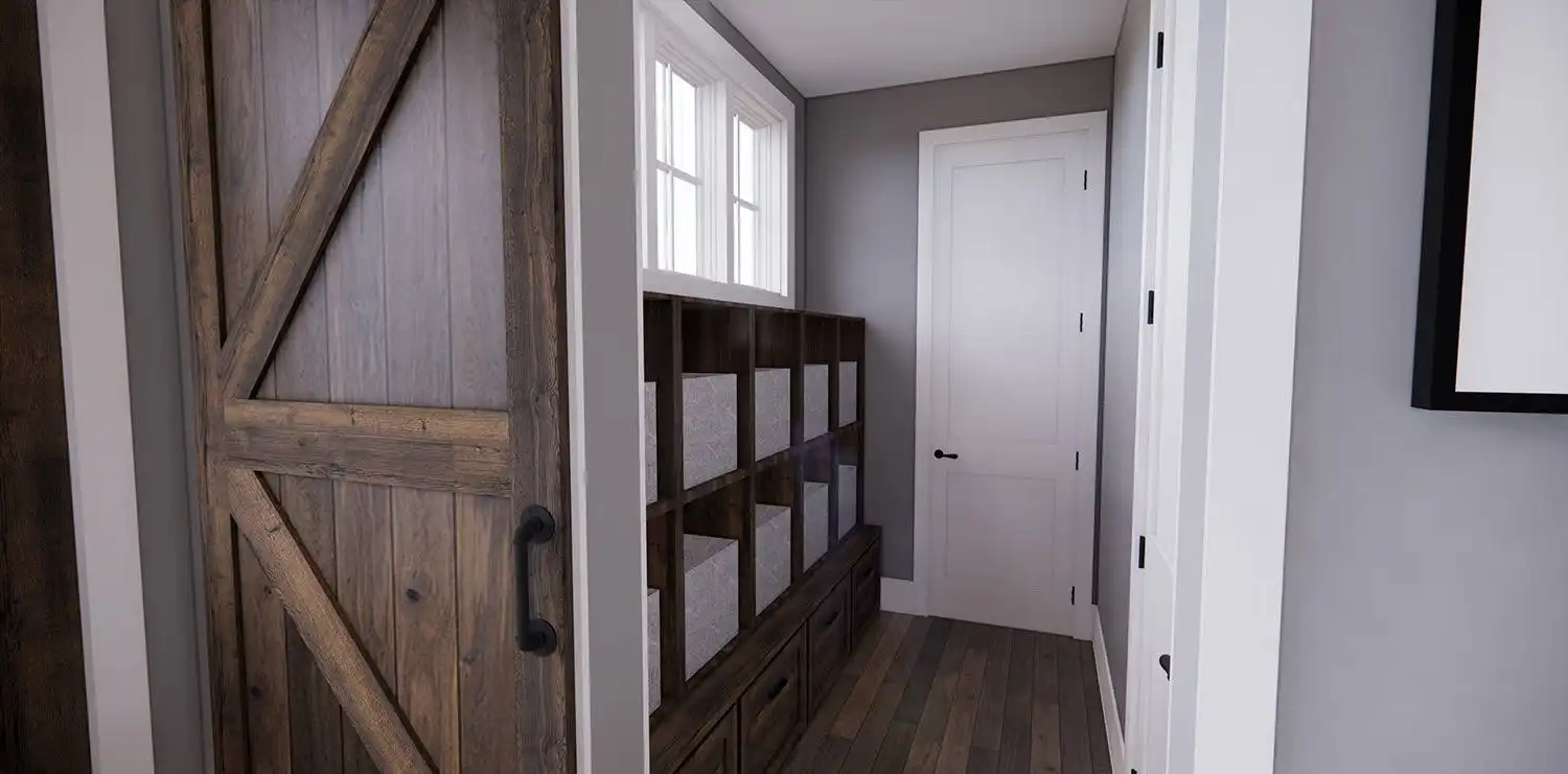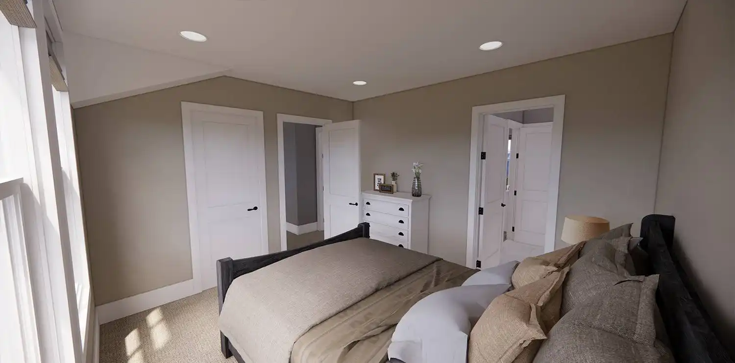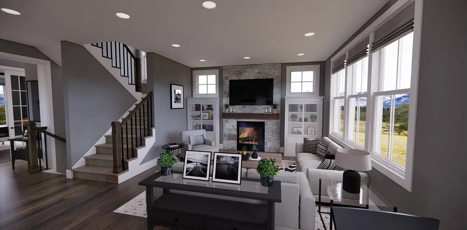 House Plan 11174 is a wonderful 2-story farmhouse with 2,317 square feet of versatile living space, ideal for growing families. Offering 4 bedrooms, 3.5 bathrooms, and a 2-car garage, this home is designed with comfort and practicality in mind. The main level features a bright open floor plan where the kitchen, dining, and great room come together around a warm fireplace and central island with seating. A spacious corner office and mudroom add convenience for work and busy family life. Upstairs, the primary suite includes a luxurious bathroom with his-and-hers vanities, a walk-in shower, and a large closet with built-ins. Three secondary bedrooms, each with generous storage, share two full bathrooms, including a Jack-and-Jill design. A dedicated laundry room ensures efficiency on the upper floor. With timeless curb appeal and a thoughtful layout, this farmhouse balances style and function in every detail