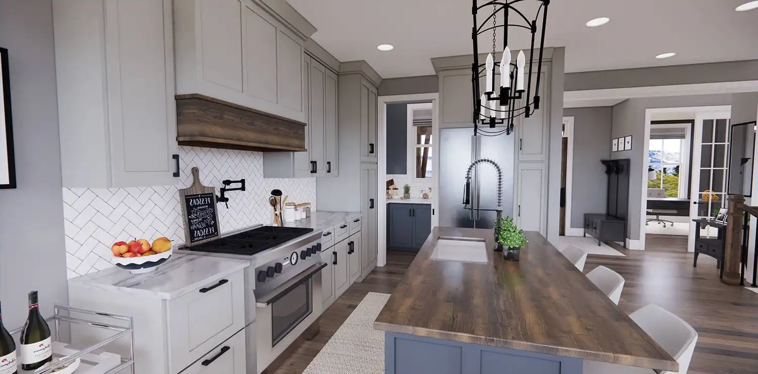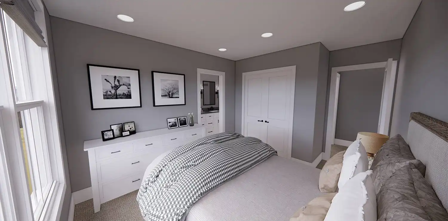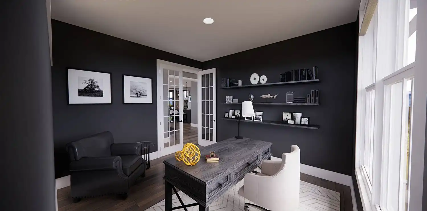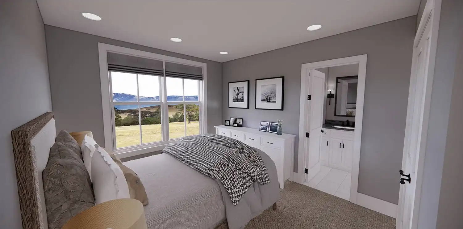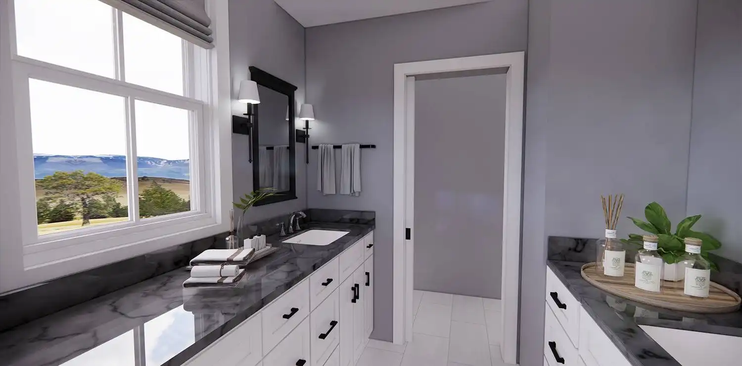 House Plan 11174 is a wonderful 2-story farmhouse with 2,317 square feet of versatile living space, ideal for growing families. Offering 4 bedrooms, 3.5 bathrooms, and a 2-car garage, this home is designed with comfort and practicality in mind. The main level features a bright open floor plan where the kitchen, dining, and great room come together around a warm fireplace and central island with seating. A spacious corner office and mudroom add convenience for work and busy family life. Upstairs, the primary suite includes a luxurious bathroom with his-and-hers vanities, a walk-in shower, and a large closet with built-ins. Three secondary bedrooms, each with generous storage, share two full bathrooms, including a Jack-and-Jill design. A dedicated laundry room ensures efficiency on the upper floor. With timeless curb appeal and a thoughtful layout, this farmhouse balances style and function in every detail