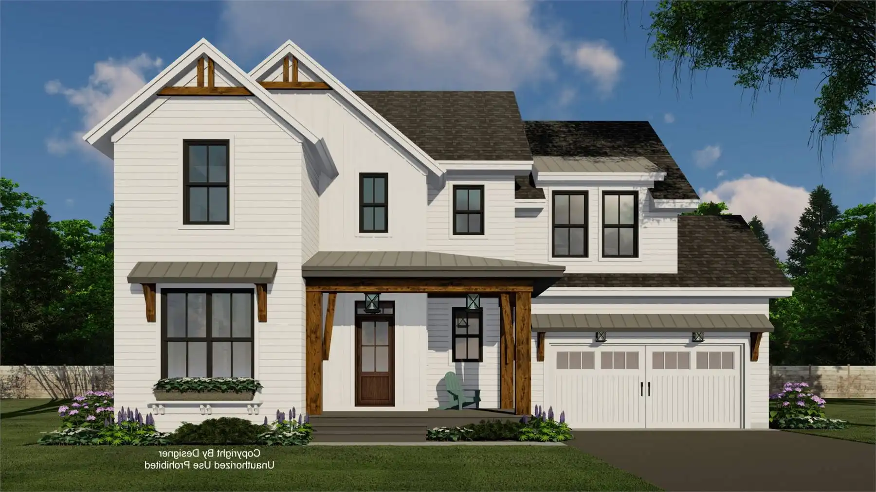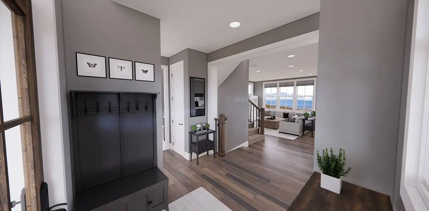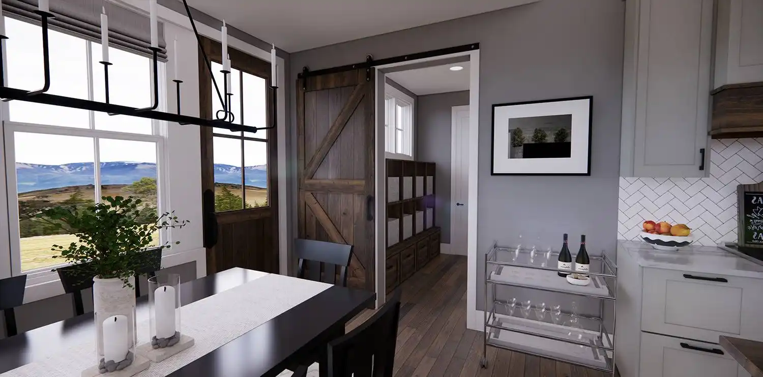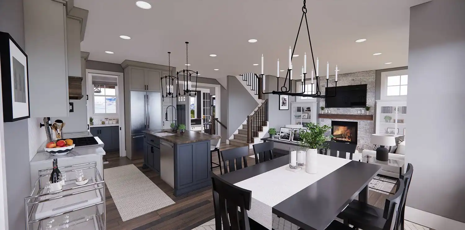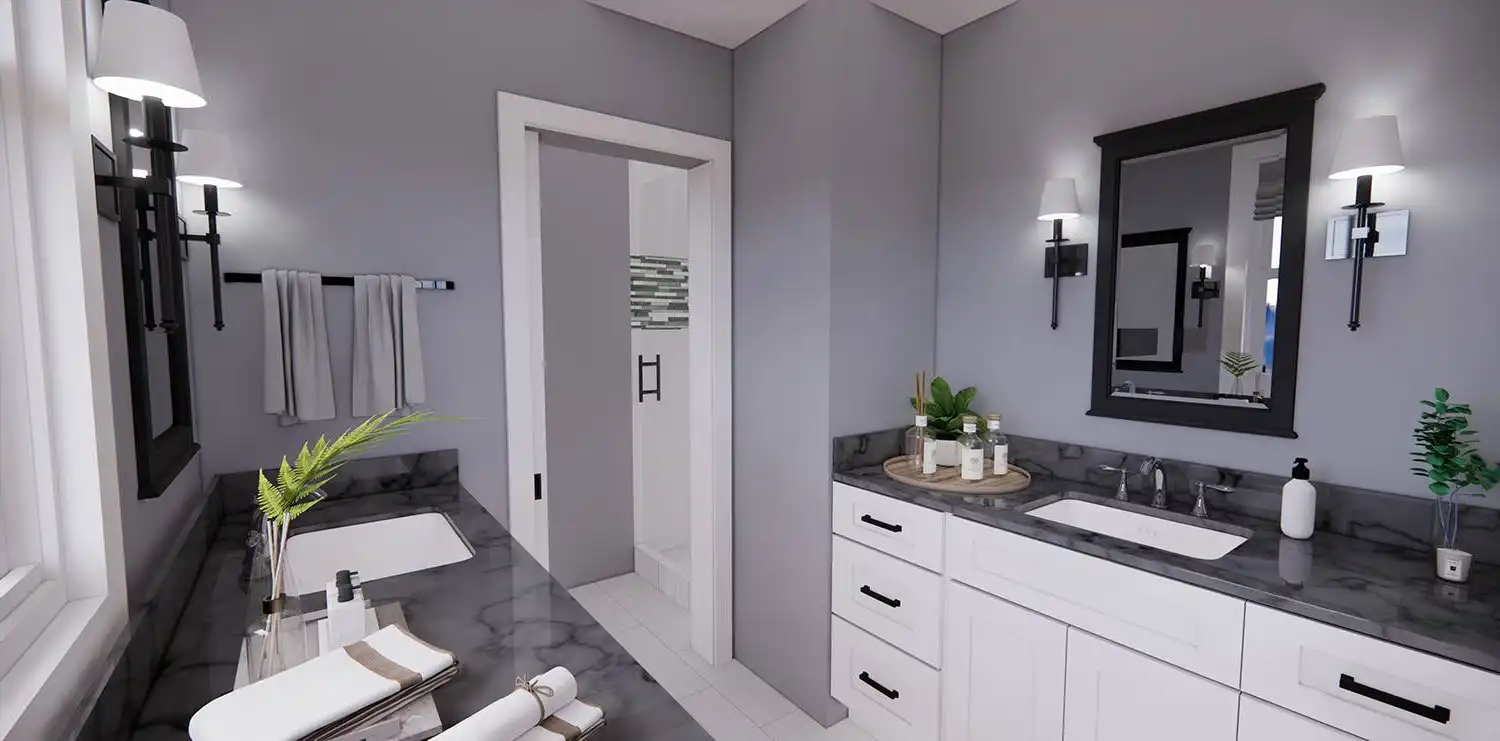 House Plan 11174 is a wonderful 2-story farmhouse with 2,317 square feet of versatile living space, ideal for growing families. Offering 4 bedrooms, 3.5 bathrooms, and a 2-car garage, this home is designed with comfort and practicality in mind. The main level features a bright open floor plan where the kitchen, dining, and great room come together around a warm fireplace and central island with seating. A spacious corner office and mudroom add convenience for work and busy family life. Upstairs, the primary suite includes a luxurious bathroom with his-and-hers vanities, a walk-in shower, and a large closet with built-ins. Three secondary bedrooms, each with generous storage, share two full bathrooms, including a Jack-and-Jill design. A dedicated laundry room ensures efficiency on the upper floor. With timeless curb appeal and a thoughtful layout, this farmhouse balances style and function in every detail
