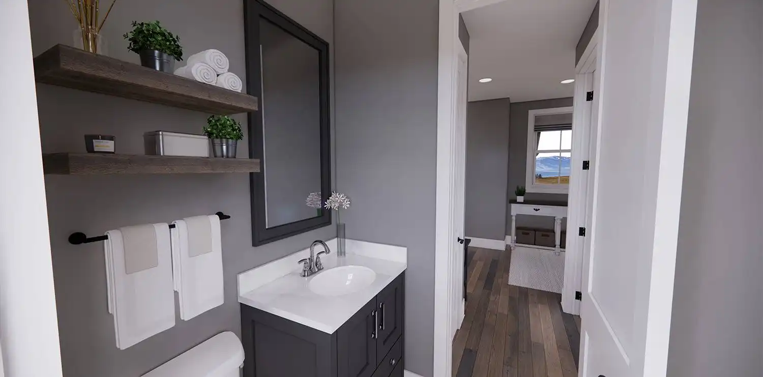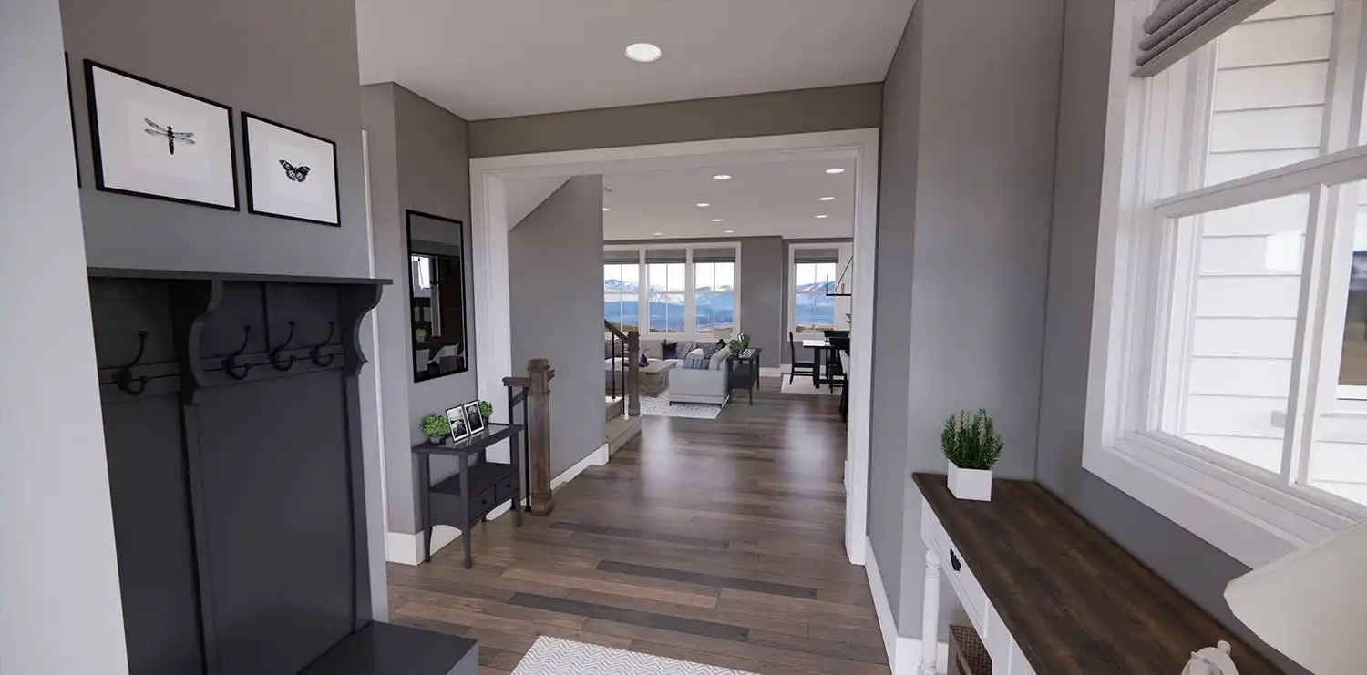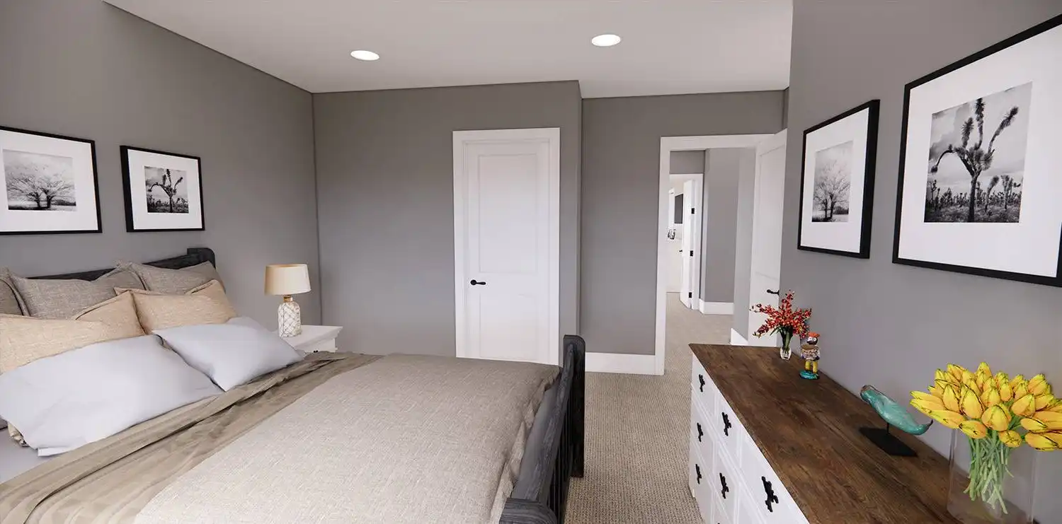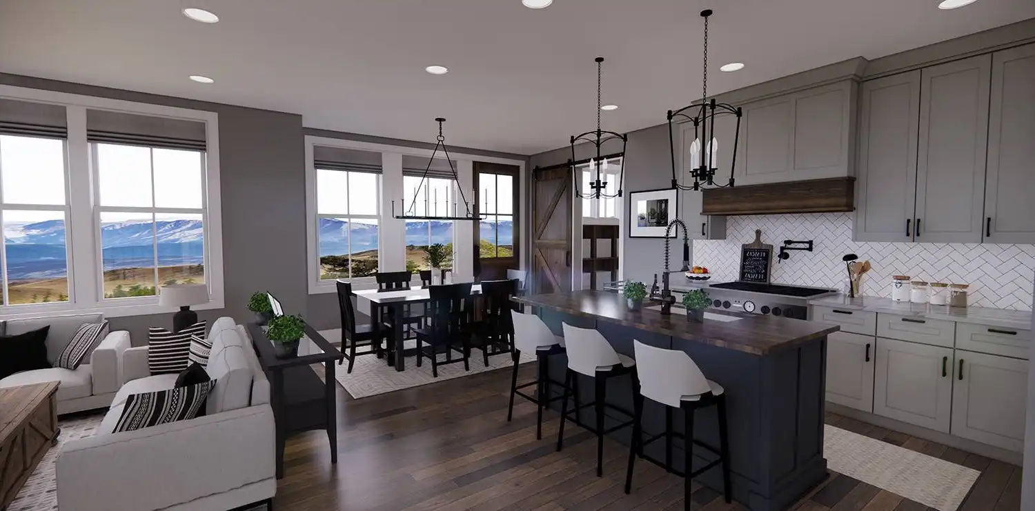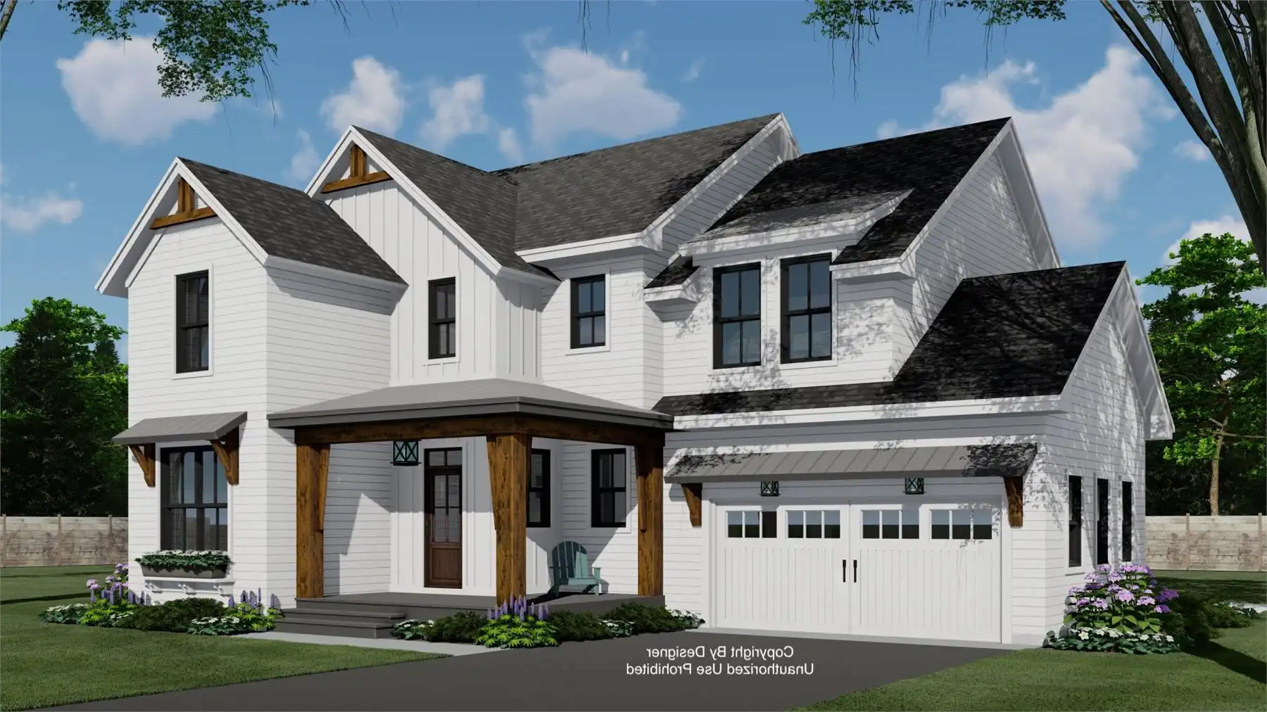 House Plan 11174 is a wonderful 2-story farmhouse with 2,317 square feet of versatile living space, ideal for growing families. Offering 4 bedrooms, 3.5 bathrooms, and a 2-car garage, this home is designed with comfort and practicality in mind. The main level features a bright open floor plan where the kitchen, dining, and great room come together around a warm fireplace and central island with seating. A spacious corner office and mudroom add convenience for work and busy family life. Upstairs, the primary suite includes a luxurious bathroom with his-and-hers vanities, a walk-in shower, and a large closet with built-ins. Three secondary bedrooms, each with generous storage, share two full bathrooms, including a Jack-and-Jill design. A dedicated laundry room ensures efficiency on the upper floor. With timeless curb appeal and a thoughtful layout, this farmhouse balances style and function in every detail