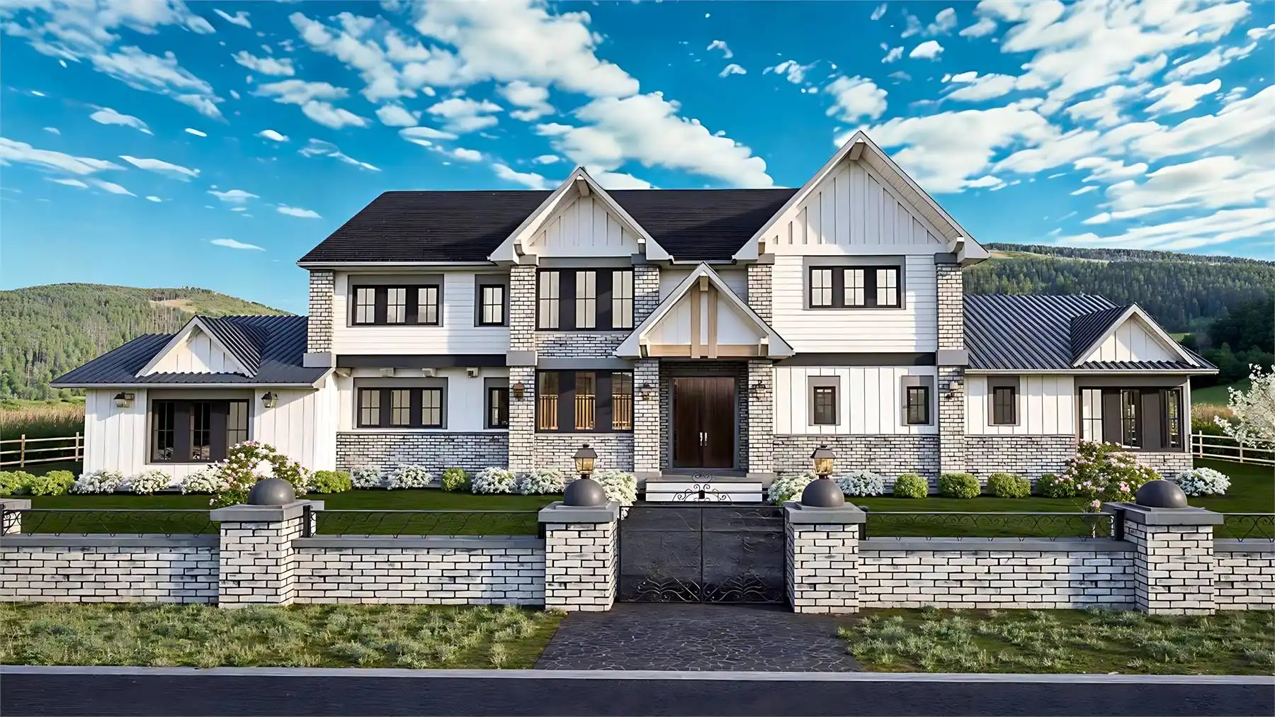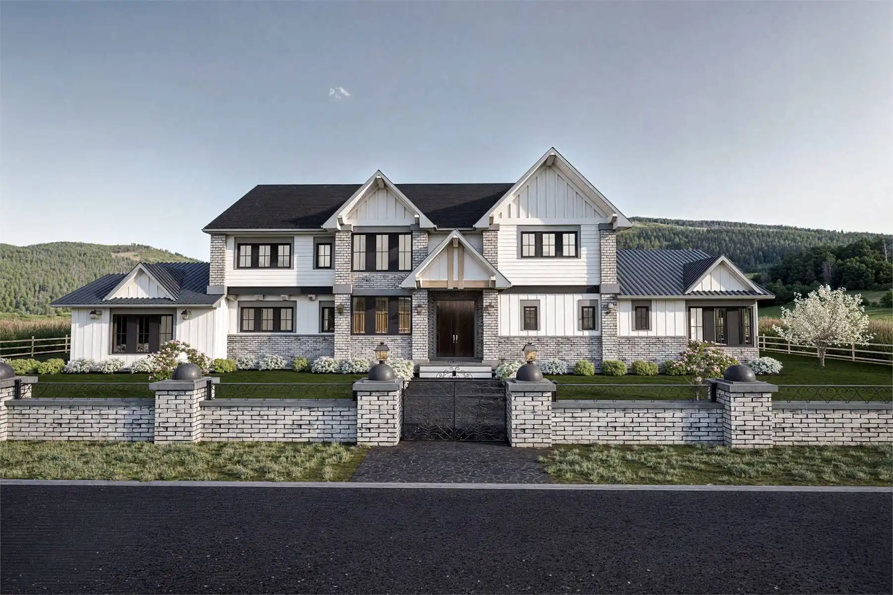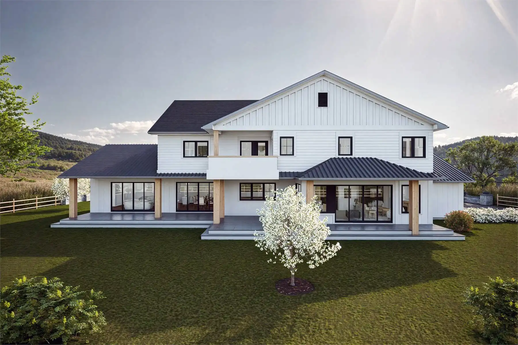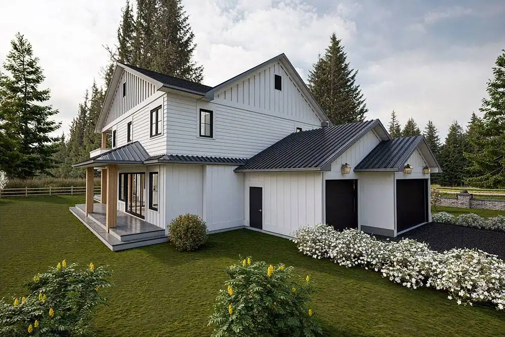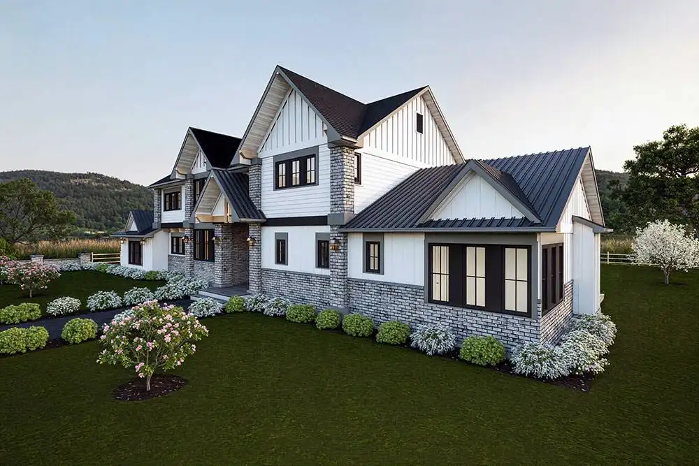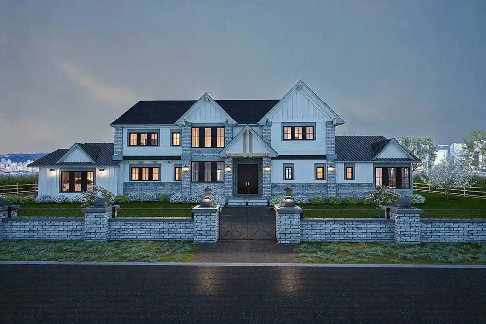 Need a luxury modern farmhouse? See if House Plan 11204 is the right fit! This amazing home offers 4,772 square feet with four bedrooms, six-and-a-half bathrooms, and so much more across two stories. You'll find a great mix of common spaces on the main floor, including formal living and dining, a casual nook and family room, a breathtaking island kitchen with a separate prep kitchen, a den with a full bath, and a huge mudroom beside a hall bath. There's also a three-car garage on the side, of course! All the bedrooms are located upstairs and include an impressive primary suite and three smaller suites. Make sure to take a closer look at the floor plans to really appreciate all this home has to offer!