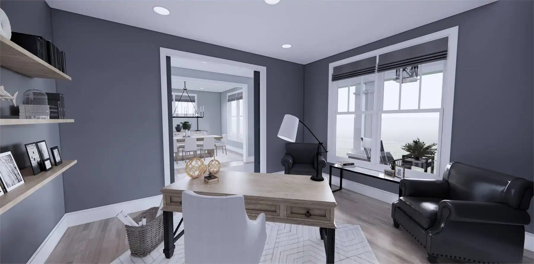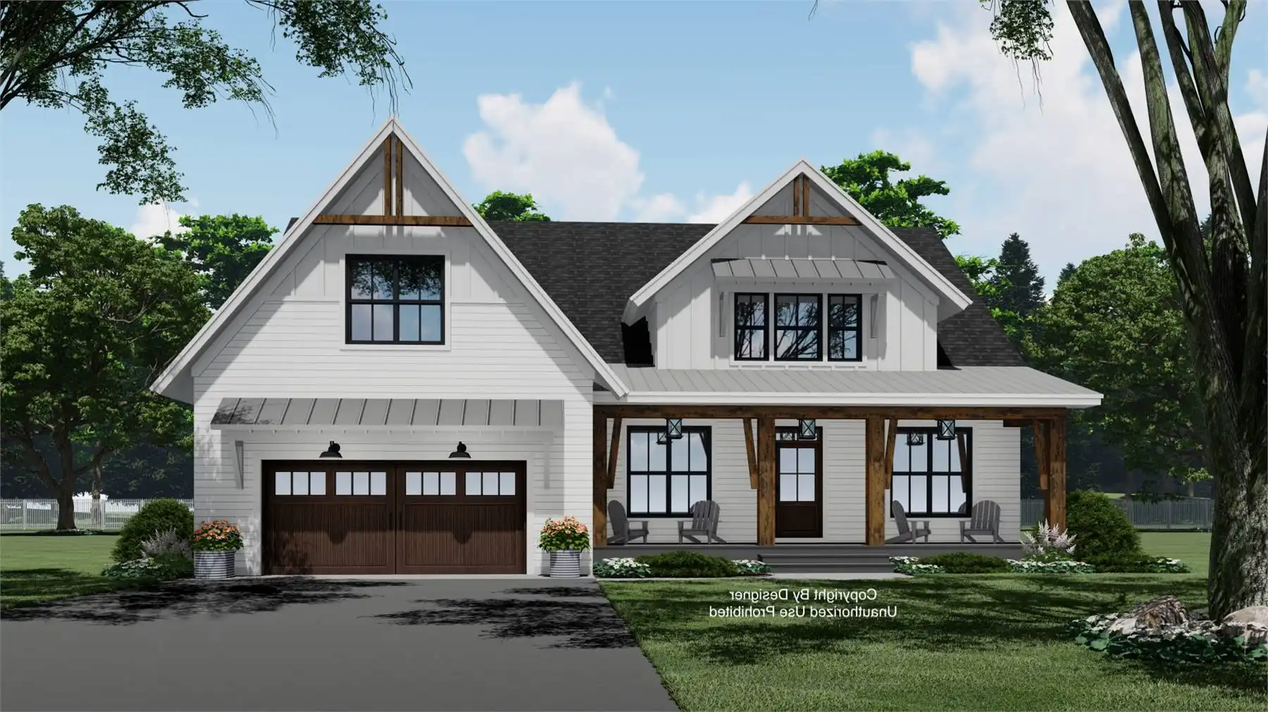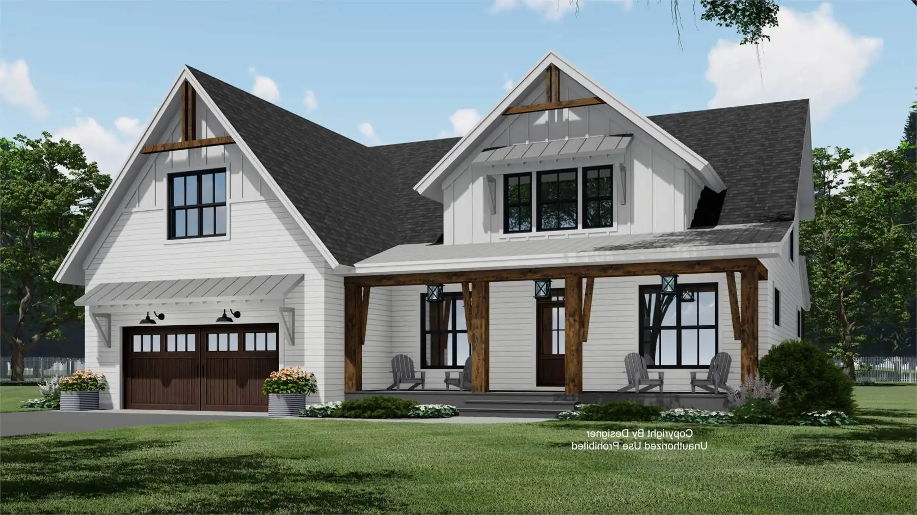 House Plan 11206, Bronze Creek, delivers 3,010 square feet of stylish farmhouse living with 4 bedrooms, 3.5 bathrooms, and plenty of room to expand thanks to a loft and bonus room above the garage. A welcoming pillared porch and elegant foyer lead to a formal dining room and private office, while the open-concept great room and kitchen showcase a 2-story fireplace wall, large windows, and a sunny breakfast nook with porch access. The first-floor primary suite offers a retreat with private porch access, dual vanities, soaking tub, shower, and a spacious closet with laundry connection. With three additional bedrooms upstairs, a mudroom, walk-in pantry, and built-ins throughout, this home blends beauty, comfort, and practicality.