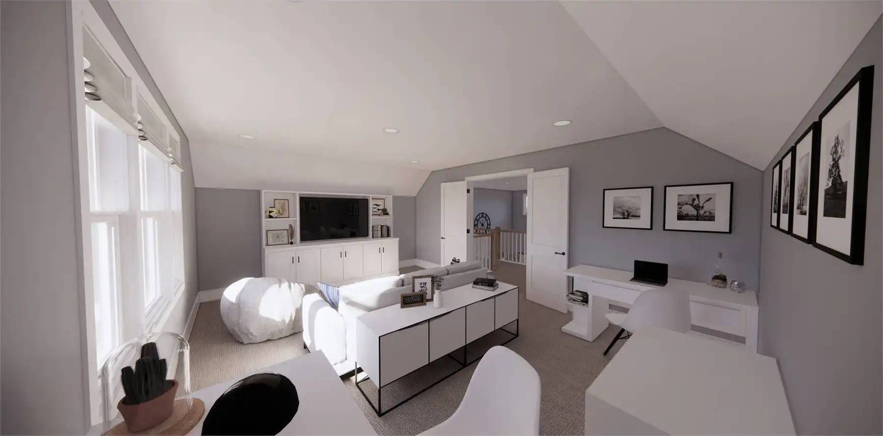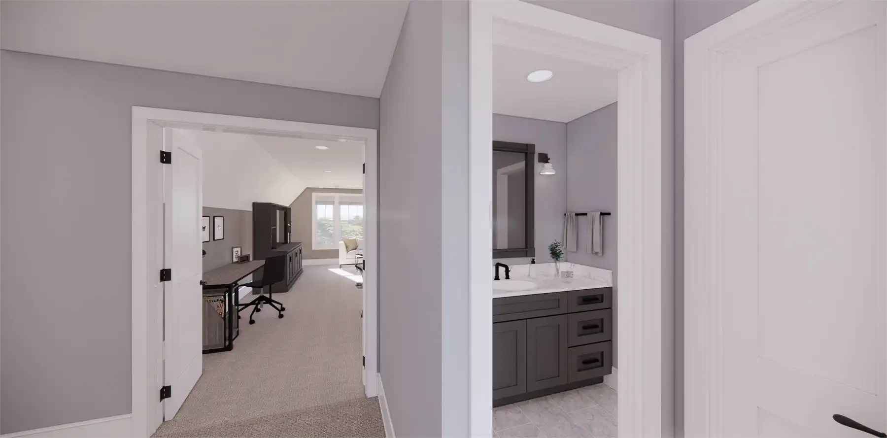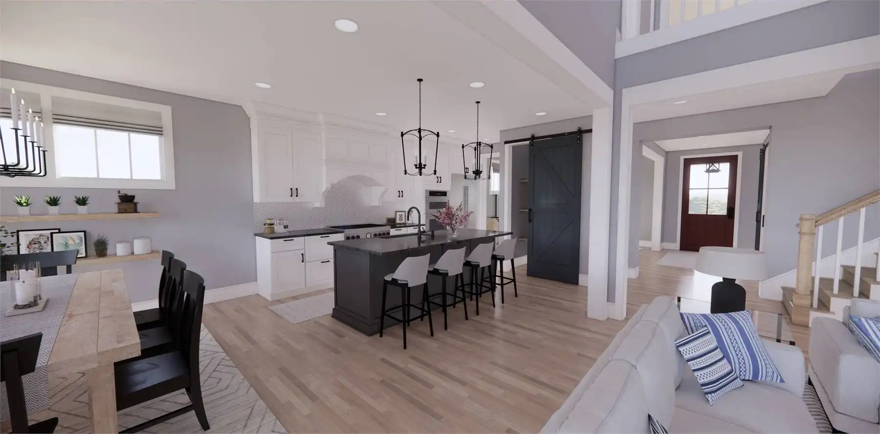 House Plan 11206, Bronze Creek, delivers 3,010 square feet of stylish farmhouse living with 4 bedrooms, 3.5 bathrooms, and plenty of room to expand thanks to a loft and bonus room above the garage. A welcoming pillared porch and elegant foyer lead to a formal dining room and private office, while the open-concept great room and kitchen showcase a 2-story fireplace wall, large windows, and a sunny breakfast nook with porch access. The first-floor primary suite offers a retreat with private porch access, dual vanities, soaking tub, shower, and a spacious closet with laundry connection. With three additional bedrooms upstairs, a mudroom, walk-in pantry, and built-ins throughout, this home blends beauty, comfort, and practicality.