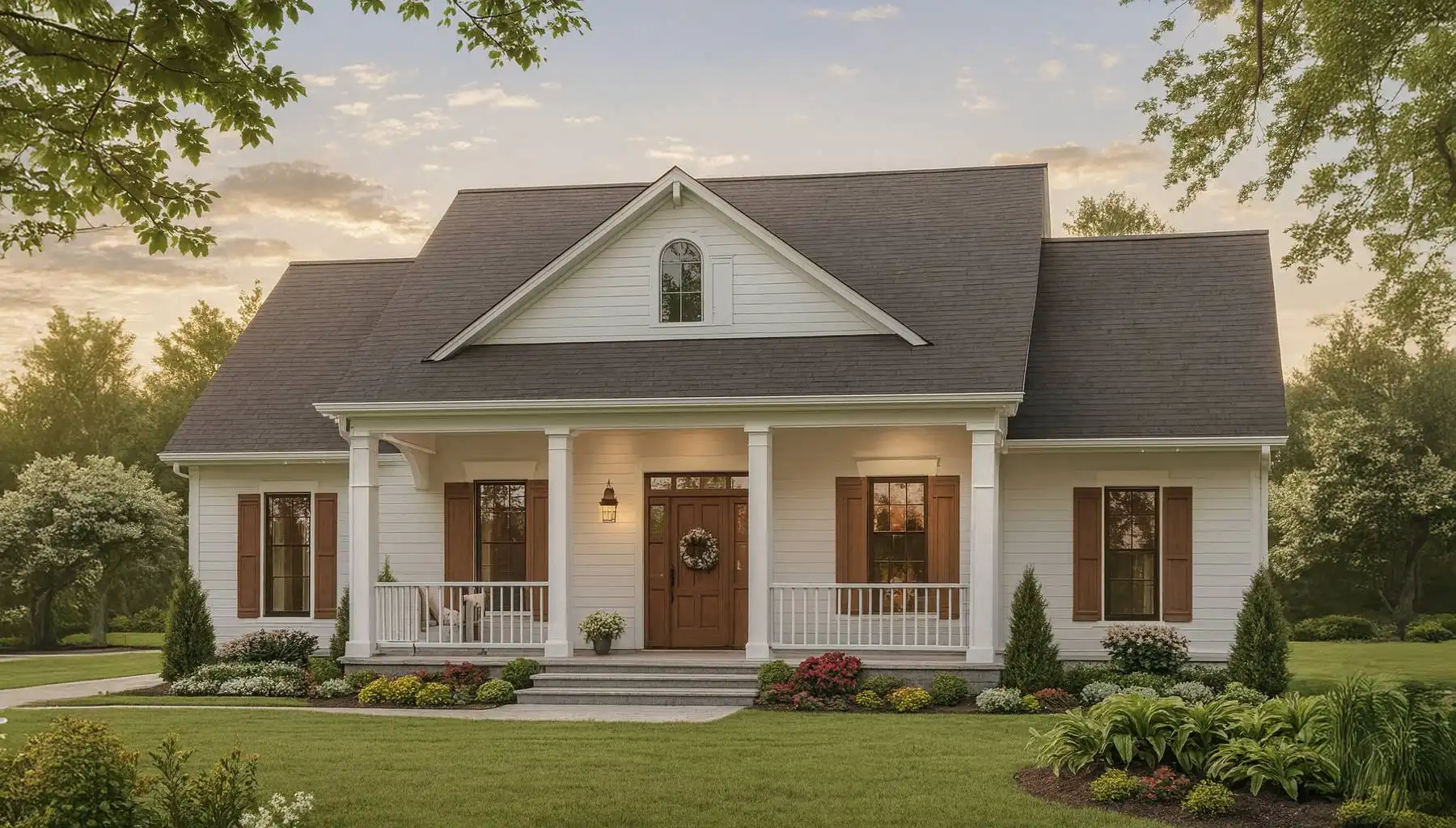 House Plan 11212 combines farmhouse charm with family-friendly design in a thoughtful floor plan. From the inviting covered front porch, step into a spacious great room with soaring 10-foot ceilings and a fireplace that anchors the open layout. The kitchen, complete with a large island and seating, connects seamlessly to the dining area and extends to a rear covered porch, making it easy to enjoy both indoor and outdoor living. The master suite offers a luxurious retreat with a spa-inspired bath featuring dual sinks, a soaking tub, walk-in shower, and a roomy walk-in closet. Two secondary bedrooms and a shared full bath are located across the home for added privacy. A flex space provides options for a home office, study, or playroom, while the upstairs bonus room allows for future growth. With a two-car garage and smart utility spaces, this home blends everyday function with classic farmhouse style.