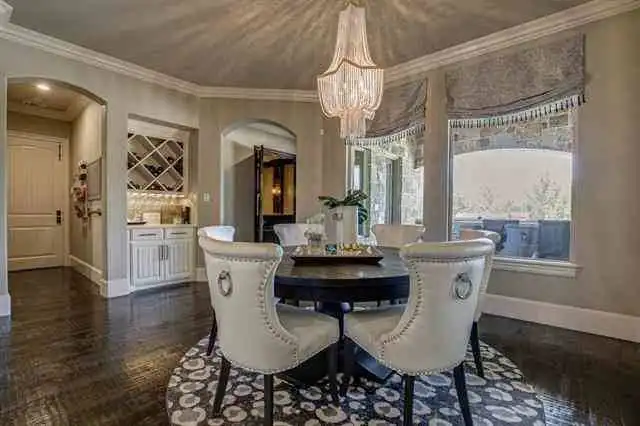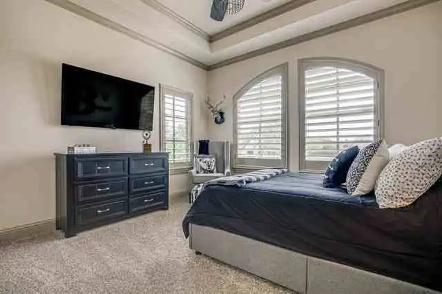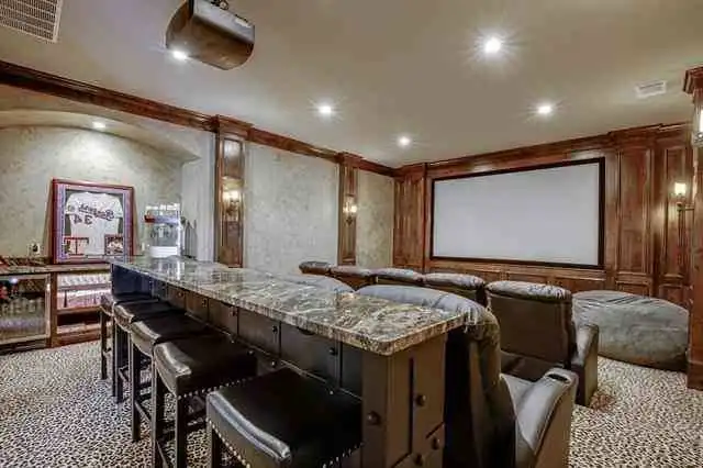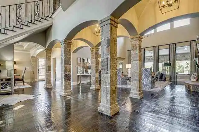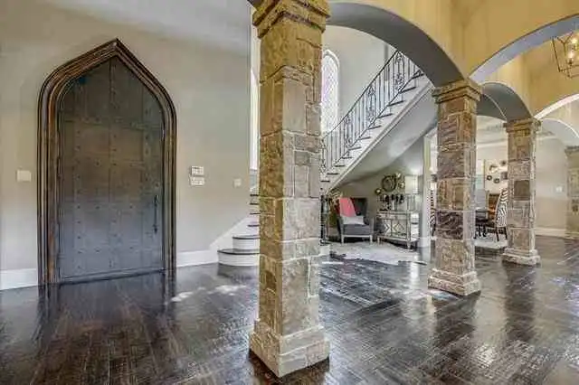An enchanting castle-like design gives this beautiful European estate an unmistakable personality. With a stunning 5,991 square feet of space, the 4 bed 4.5 bath layout is full of great features. From the outdoor patio with its full-service bar and cooking station, to the movie theatre and nearby garage with plenty of added storage, this home is ready for anything. The main level is highlighted by areas like the 2-story vaulted living room and beautiful island kitchen. There is also a study and a formal dining area, along with a master retreat that redefines luxury. Finally, the upstairs offers the other bedrooms as well as a game room, making it perfect for the kids to enjoy no matter their ages.