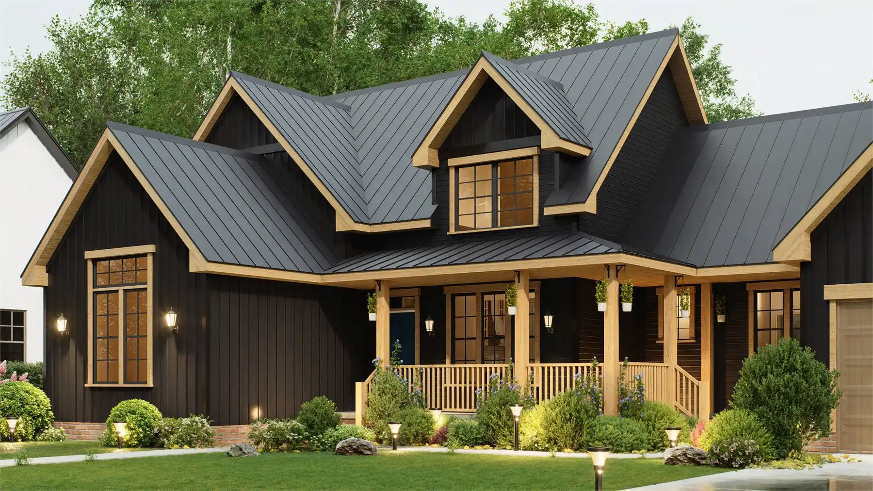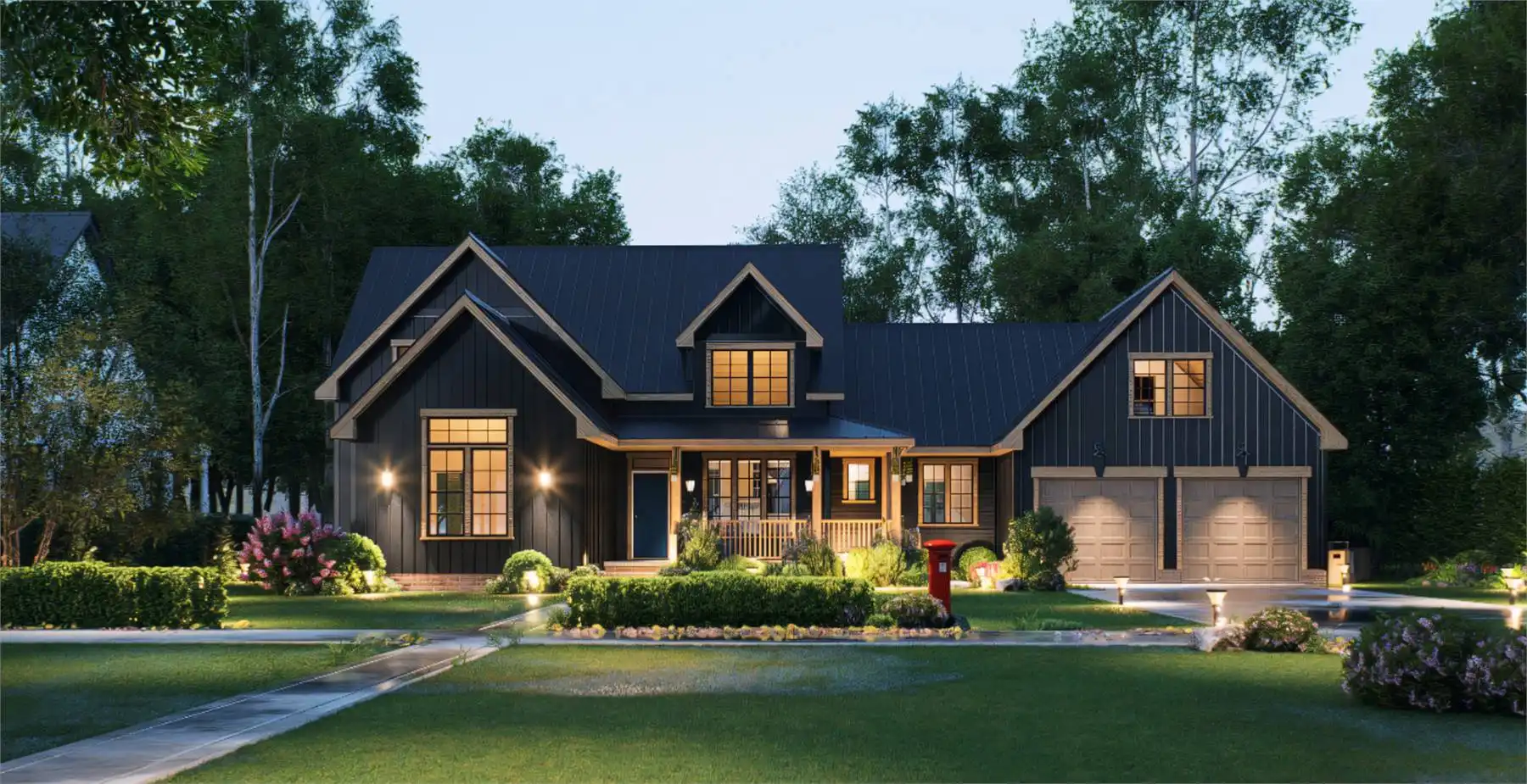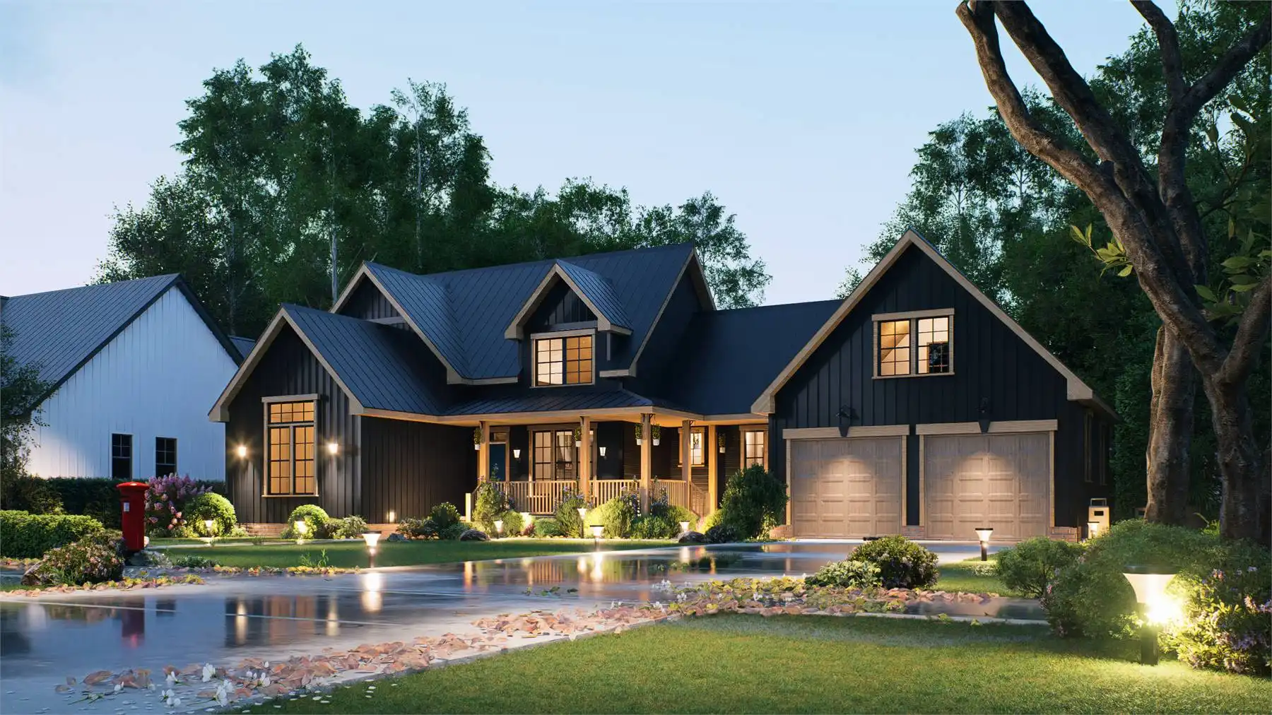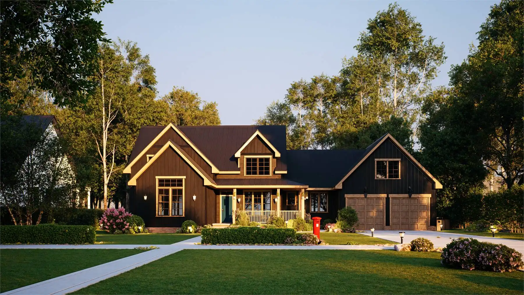 Blending farmhouse charm with practical design, this two-story home offers 2,689 square feet of well-planned living space. The layout includes 5 bedrooms and 3 full baths, with the primary suite thoughtfully separated for privacy. At the heart of the home is a large, open kitchen, perfect for family meals and entertaining. A front-facing, two-car garage provides convenient access and functionality. The outdoor areas, including inviting front and rear porches, create space for relaxing or hosting gatherings. The exterior features classic board-and-batten siding and a durable metal roof, giving the home lasting appeal. Nine-foot ceilings on the first floor and eight-foot ceilings upstairs create a bright and open atmosphere. With a thoughtful balance of comfort, style, and versatility, this home is ideal for modern family living.
