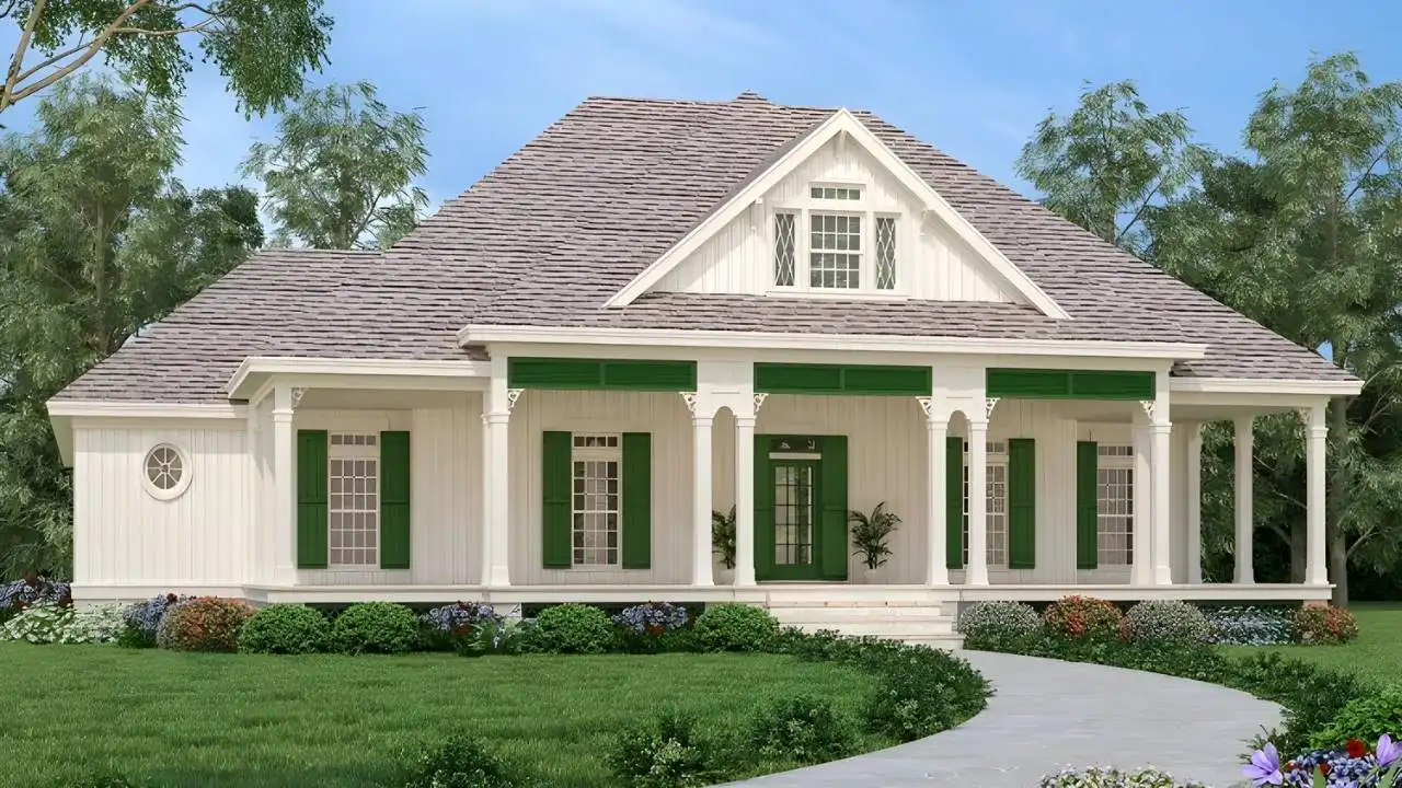 House Plan 11224 offers 1,892 sq. ft. of stylish living space with a mix of Southern cottage charm and modern farmhouse convenience. The vaulted great room is the heart of the home, connecting to the dining room and gourmet kitchen complete with island, pantry, and butler’s pantry. The main-floor primary suite features a sitting area, luxurious bath, and large walk-in closet. Two additional bedrooms share a Jack and Jill bath on the opposite side of the home for privacy. Functional spaces like the mudroom, laundry, and extra storage make daily life easier. Covered front and rear porches expand your living space outdoors, providing the perfect spot for gatherings or quiet evenings. With its open layout and split-bedroom design, this farmhouse plan is as comfortable as it is beautiful.