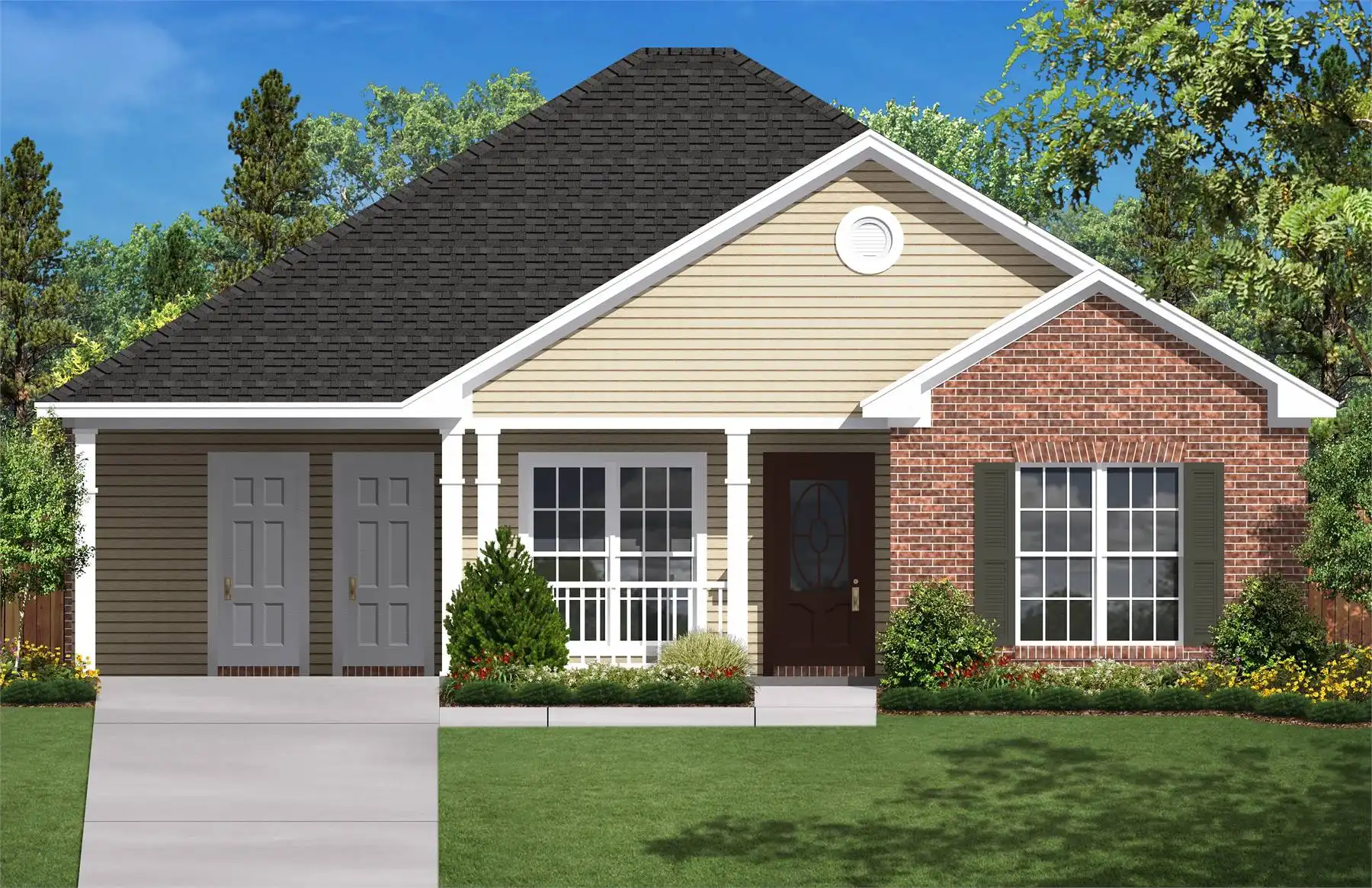 This 3-bedroom, 2-bath ranch offers 1,350 sq. ft. of well-planned living space. The living room features raised ceilings and plenty of natural light, creating a central gathering area for family and friends. The kitchen and dining area are designed for easy meal prep and entertaining, with access to an extended patio for outdoor enjoyment. The primary bedroom includes a private bath and a roomy closet for convenience. Outdoor living is enhanced by a welcoming front porch and a practical carport. The exterior, finished with brick and siding, combines durability with classic charm. Thoughtfully designed for comfort and functionality, this home is ready for everyday living and special moments alike.