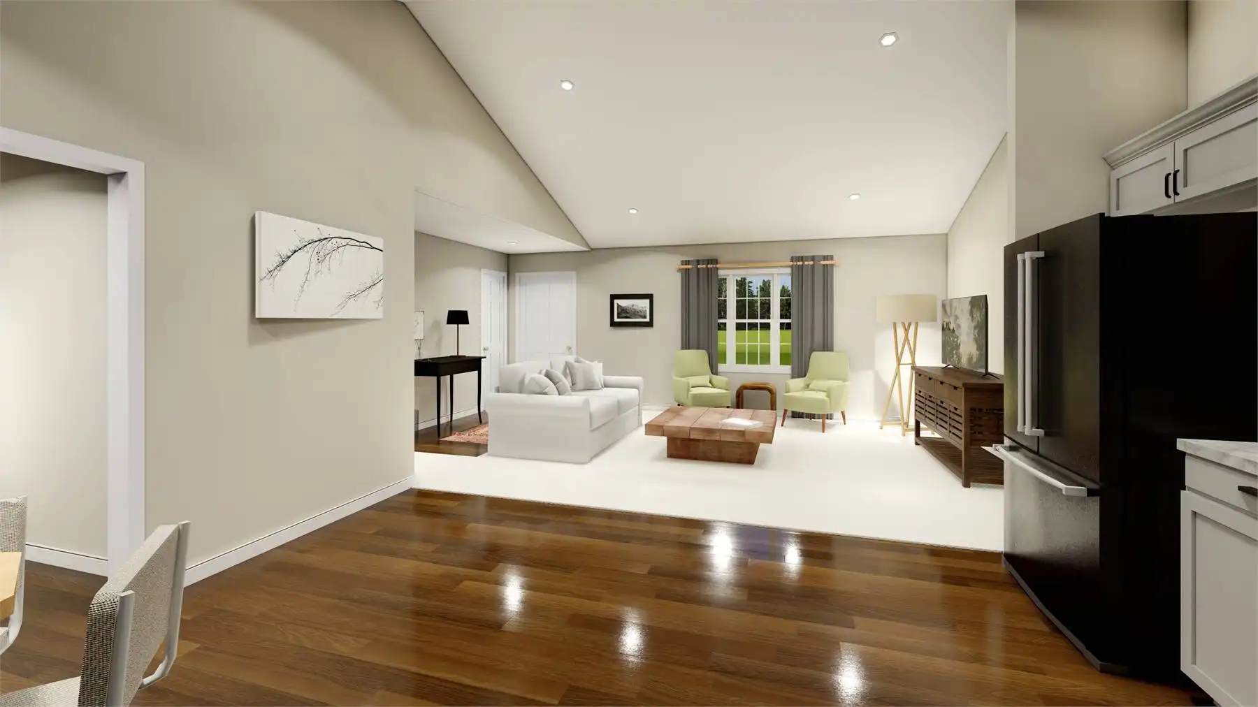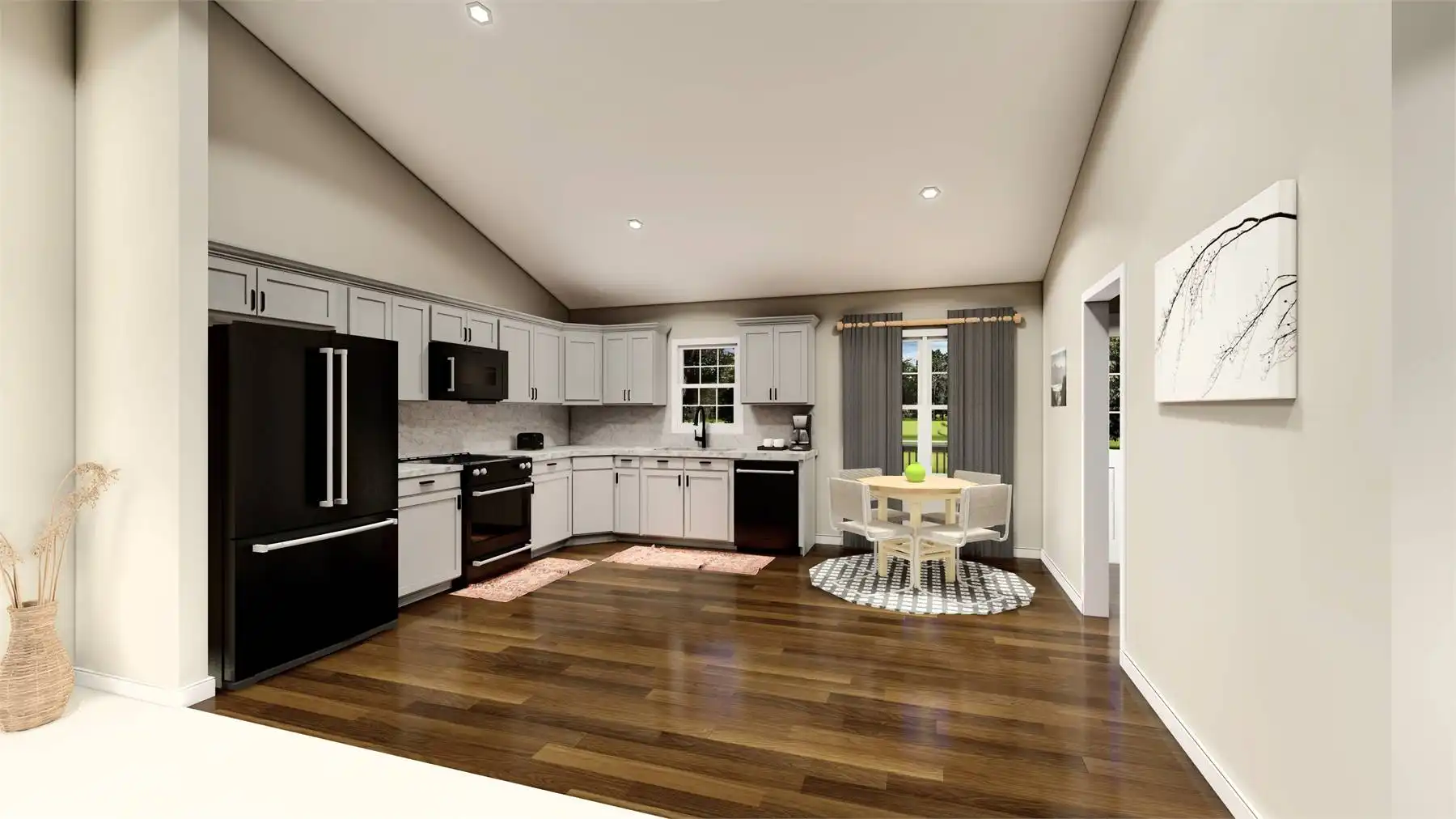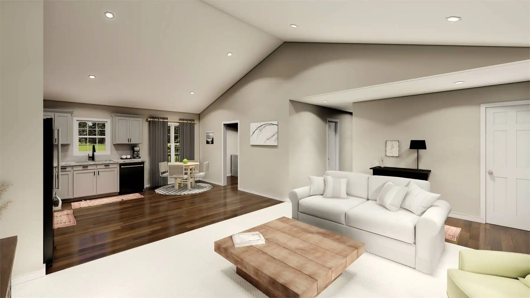 House Plan 11230 delivers a traditional ranch design in 1,260 square feet with a practical family-style layout. A simple front stoop provides a warm welcome, opening into an airy vaulted great room and open kitchen with breakfast nook. The primary suite includes a private bath with double vanity and walk-in closet, while two secondary bedrooms share a full hall bath. Designed for everyday living, the plan also features a mudroom and laundry on the main level. Outdoor entertaining is easy with the rear deck just off the living area. Need more room? An optional unfinished basement offers flexibility for future expansion. Compact, efficient, and comfortable, this home is a perfect fit for many lifestyles.
