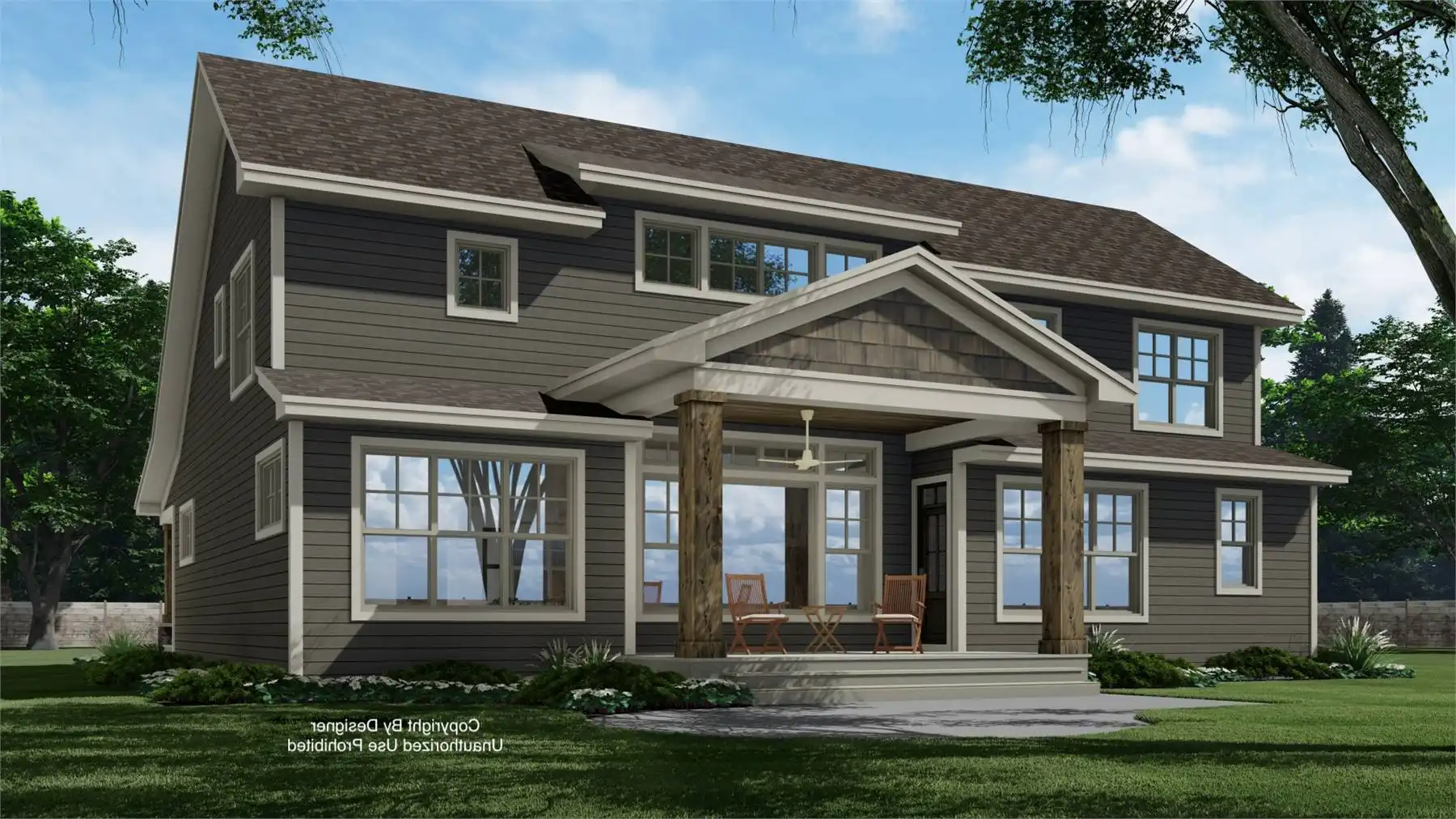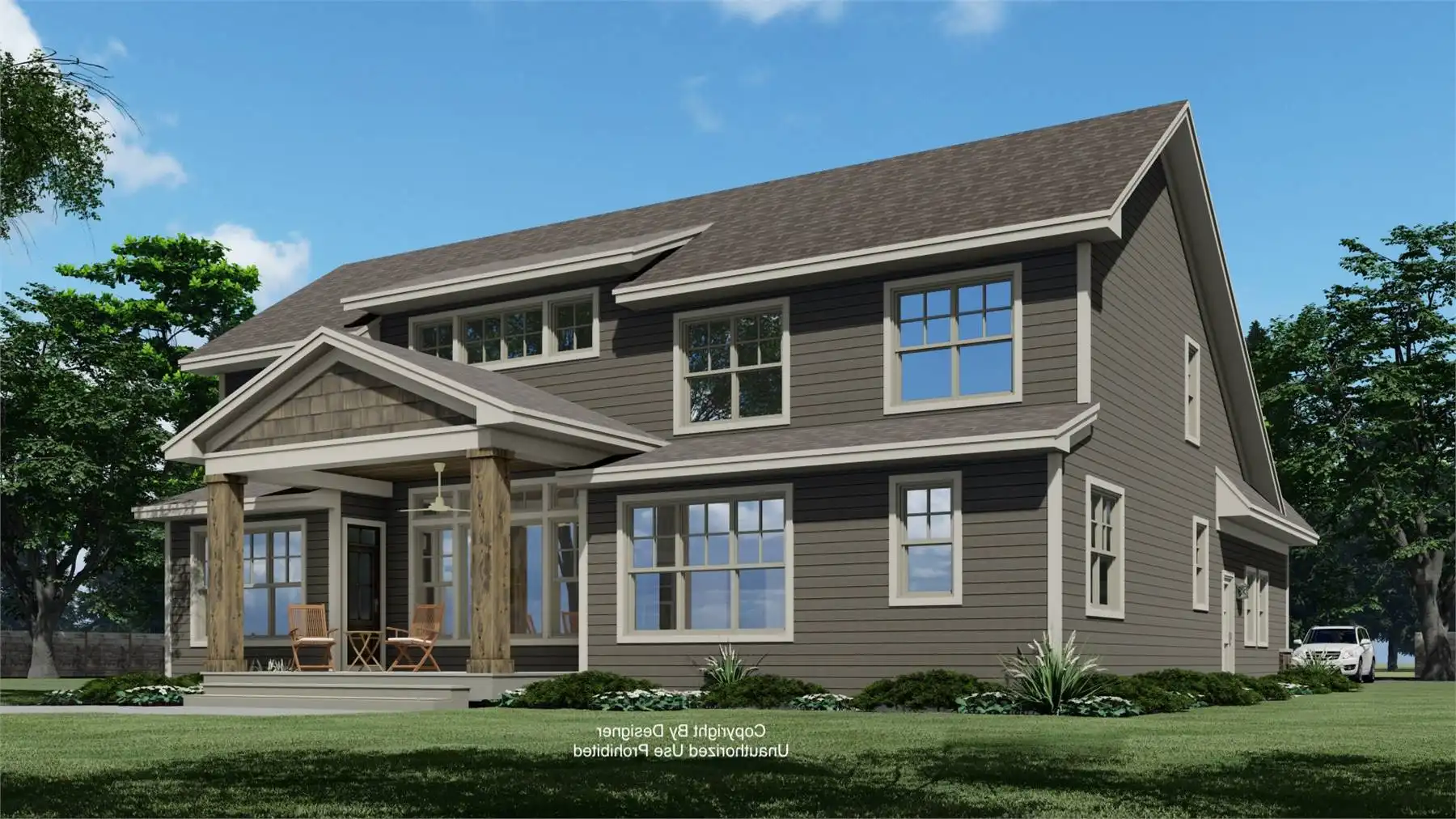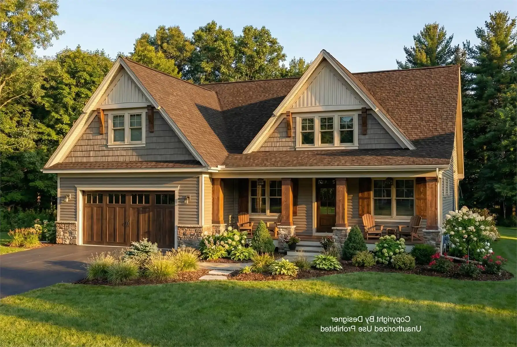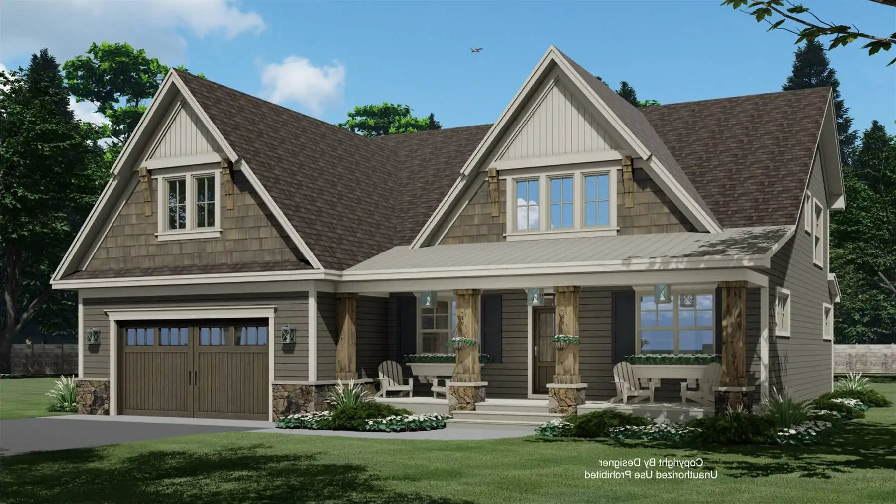 House Plan 11237 blends rustic farmhouse charm with modern design in a spacious 3,510 sq. ft. layout. The exterior showcases wood, stone, and shake details with a welcoming front porch. Inside, the open concept design includes a great room with fireplace and built-ins, a dining area, and a kitchen with a central island and barn-door pantry. The breakfast nook and rear covered porch provide casual spots to gather, while the formal dining room and home office add functionality. The main-floor master suite offers a spa-like retreat with dual sinks, soaking tub, walk-in shower, and a large walk-in closet connected to the laundry. Upstairs, a step-up loft creates a perfect game or family room, joined by four secondary bedrooms and two full bathrooms. With 5 bedrooms, a future bonus room over the garage, and plenty of flexible living spaces, this home is designed for comfort, style, and family living.