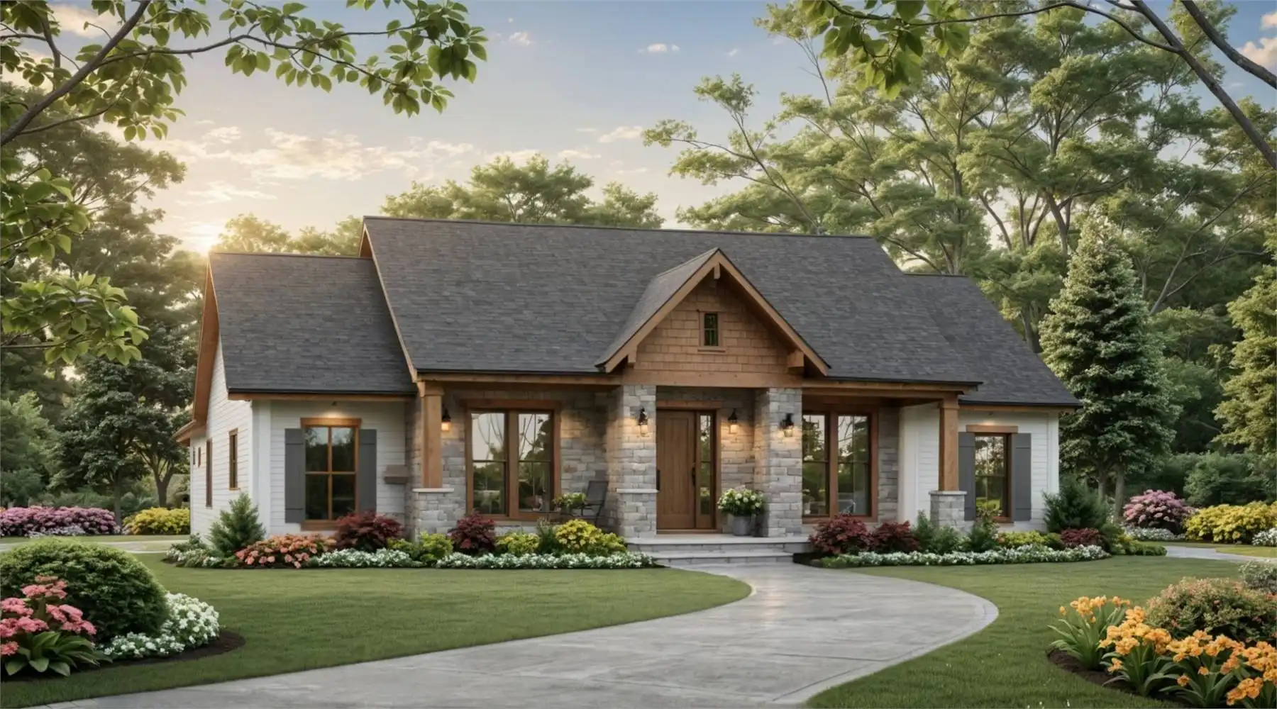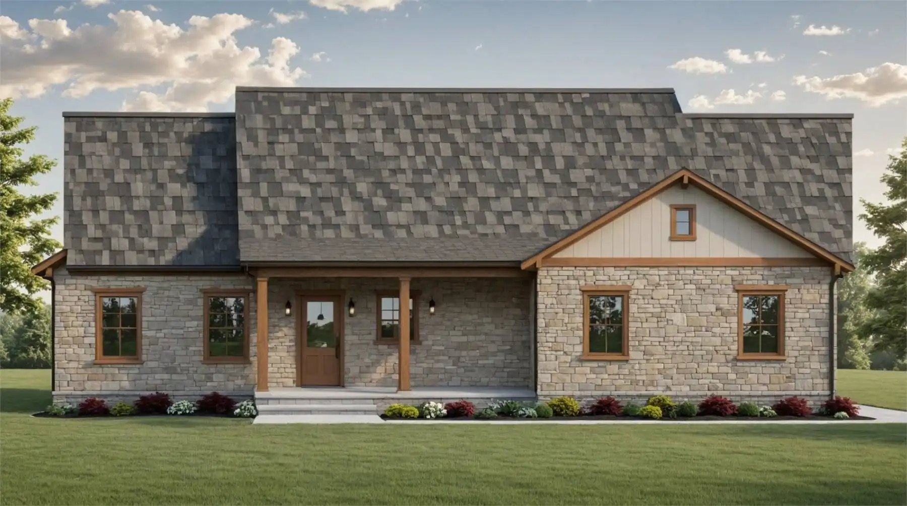 Plan 11258 offers a Craftsman-style cottage that perfectly balances rustic elegance with modern convenience. The exterior’s timber accents and stonework create classic curb appeal, leading to an open interior anchored by a spacious great room with a cozy gas-log fireplace. The adjoining dining area and gourmet kitchen—with its large island, walk-in pantry, and easy access to the rear covered porch—make hosting gatherings effortless. The owner’s suite is a private retreat featuring a luxurious bath with dual sinks, soaking tub, separate shower, and a large walk-in closet. Two secondary bedrooms with their own walk-in closets share a full bath across the layout, ensuring comfort for family or guests. Additional highlights include a laundry room with storage, a handy half bath, and a two-car garage with extra storage space. Plan 11258 brings together thoughtful details, enduring style, and functionality in a single-level design.