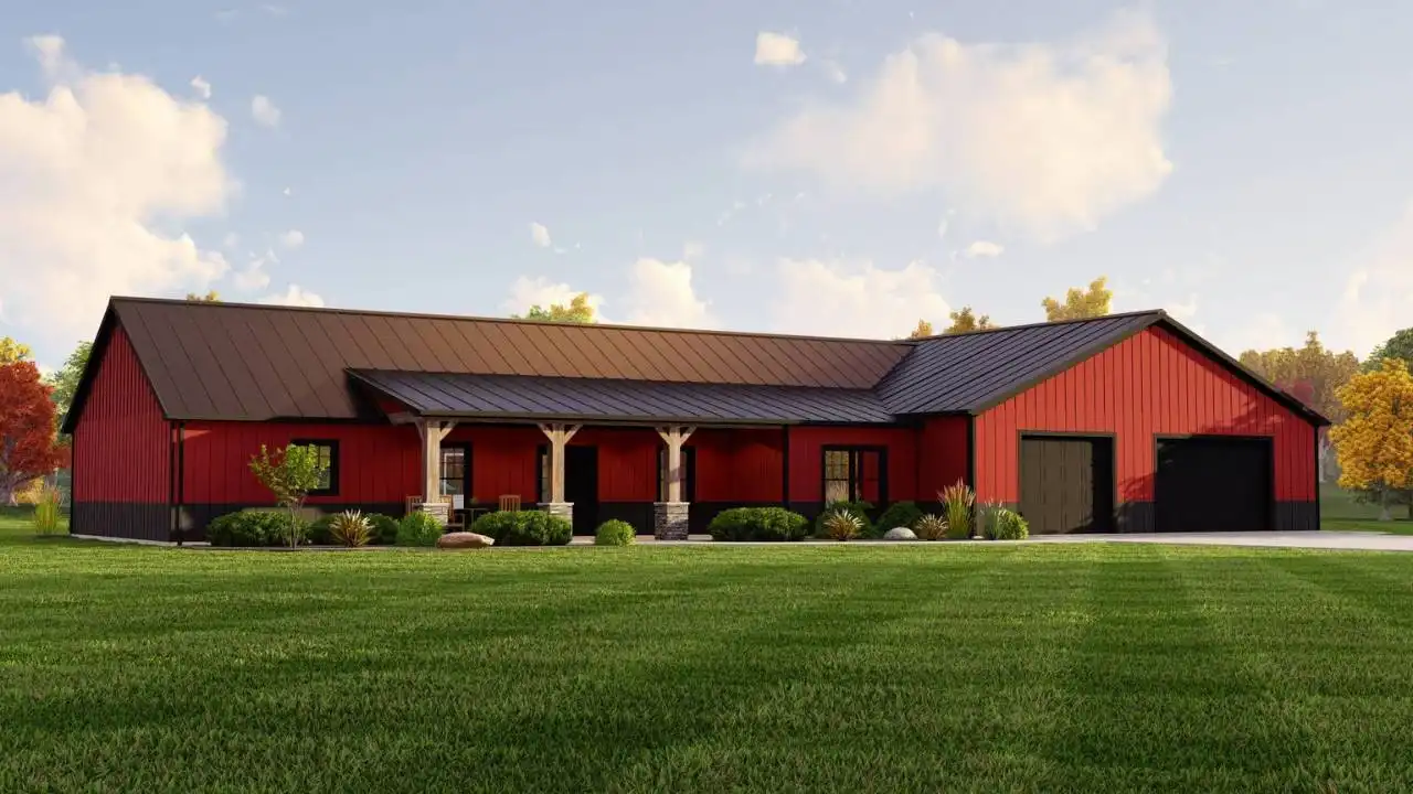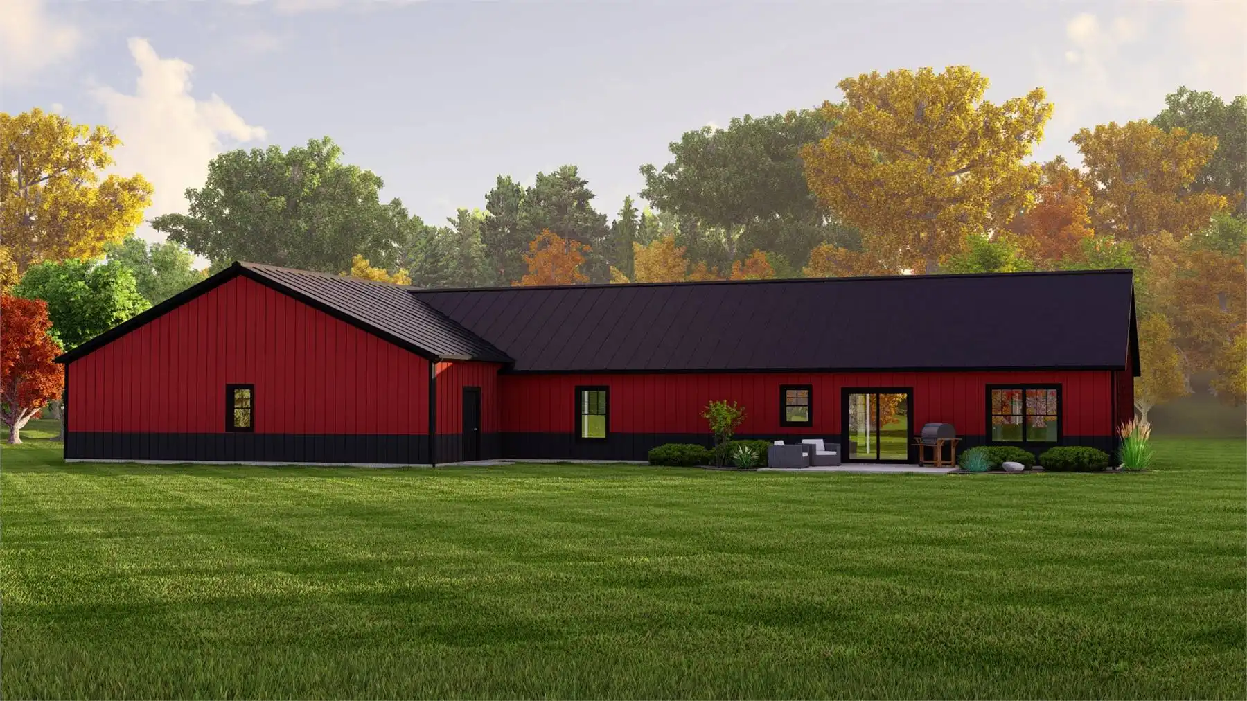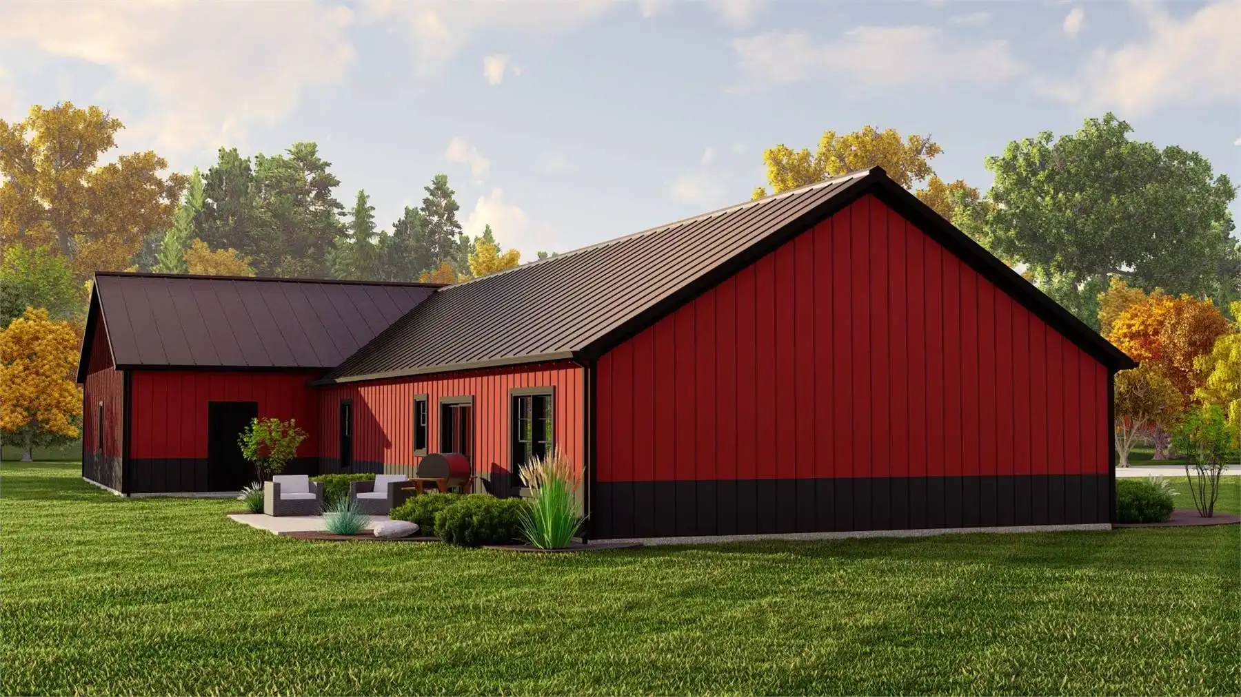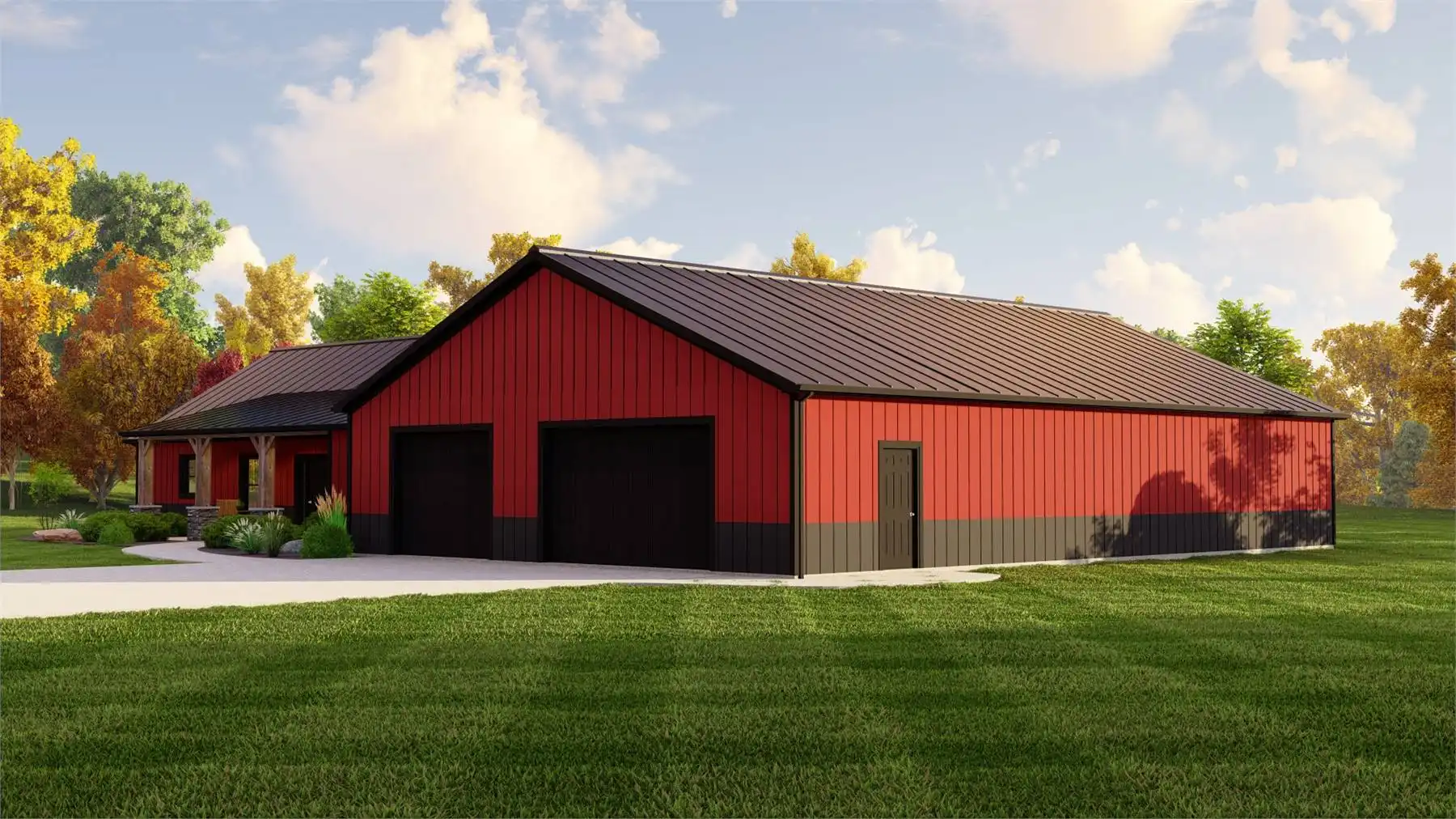 House Plan 11279 is a thoughtfully designed 1-story home that balances function and style. The 1,844 sq. ft. layout highlights an open-concept living room with cathedral ceilings, dining space, and a kitchen complete with island seating and walk-in pantry. The primary suite is privately situated with a spacious walk-in closet and well-appointed bath, while two additional bedrooms and a shared bath are located nearby. A den provides flexibility for a home office or guest space. The plan also includes laundry and convenient storage features throughout. The massive 3-car garage provides 2,400 sq. ft. of parking and storage, making it perfect for larger families or hobbyists, as well as another full bath. With a front porch and rear patio for outdoor enjoyment, House Plan 11279 delivers practicality and charm in a modern ranch design.
