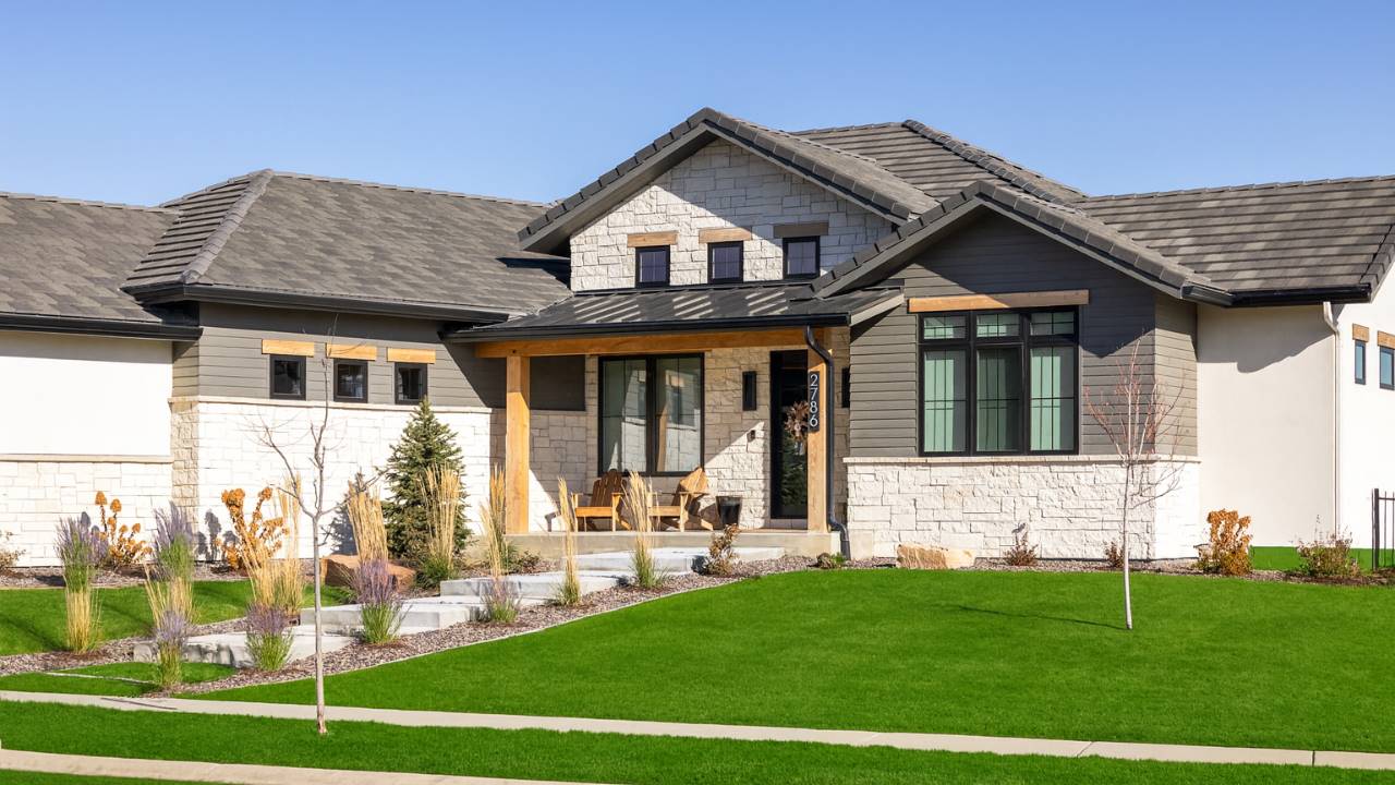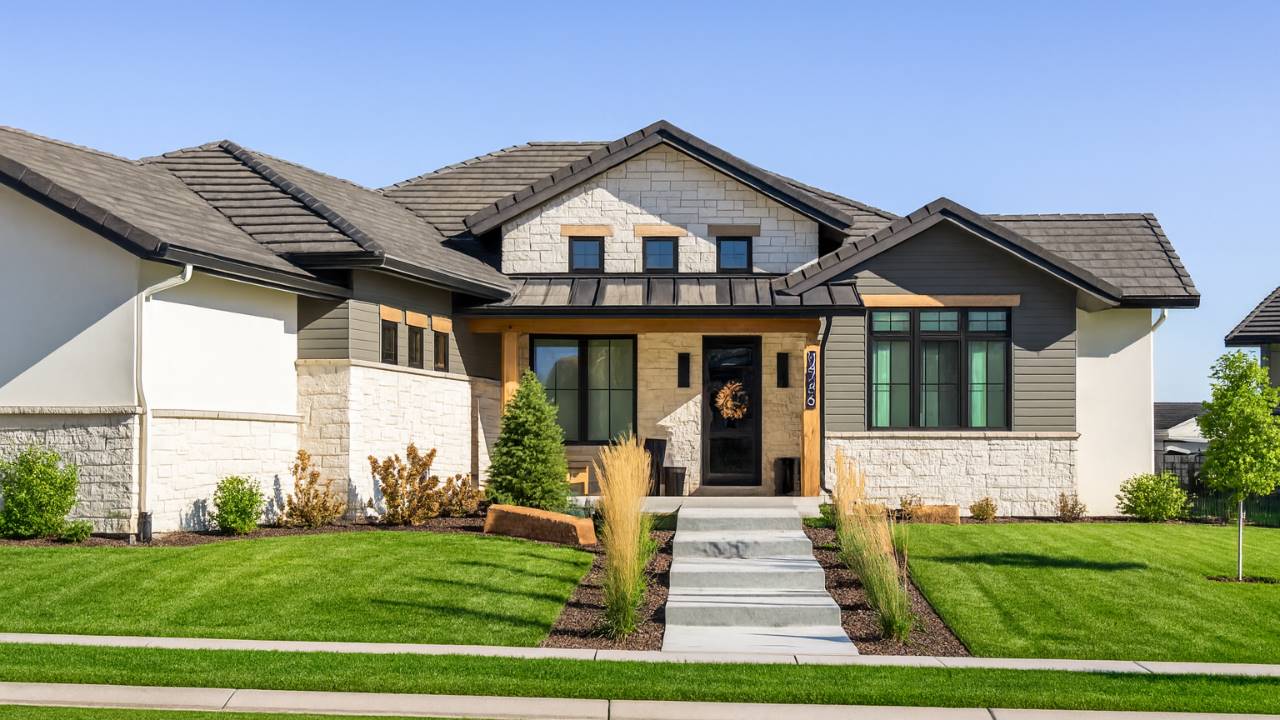 House Plan 11285 is a beautifully designed modern ranch-style home offering 2,421 sq. ft. of heated living space with an optional 1,223 sq. ft. finished basement. The open layout highlights a great room with a fireplace, a large island kitchen, and a dining area that opens to a covered patio. The primary suite includes dual vanities, a soaking tub, and a walk-in closet, while a secondary bedroom and office complete the main floor. The optional lower level expands the home with a rec room, bar, full bath, and two additional bedrooms—ideal for guests or multi-generational living. Designed with a 3-car angled garage and exceptional curb appeal, this plan perfectly combines elegance and practicality.