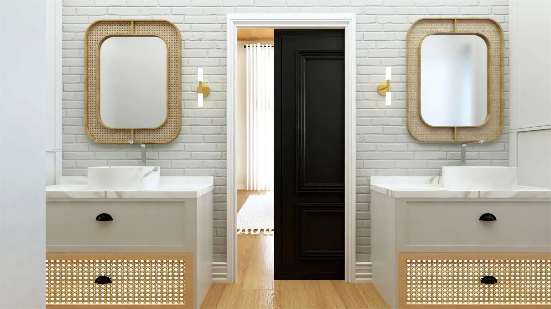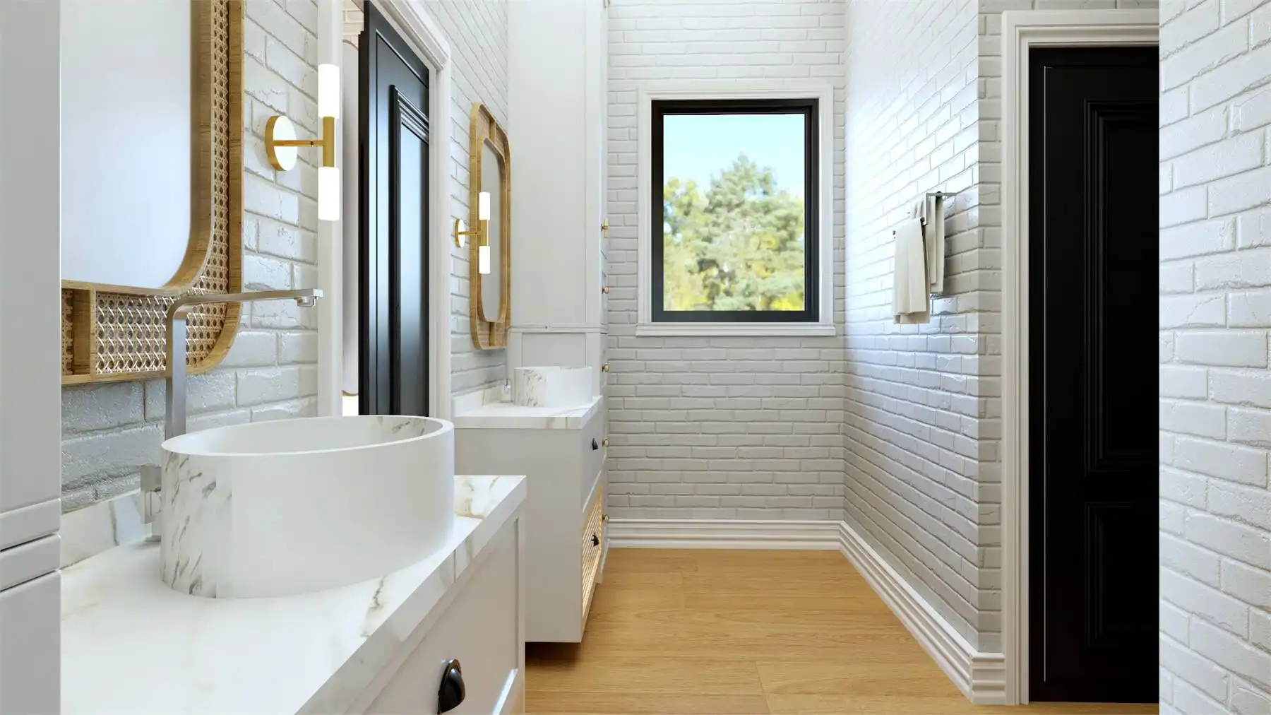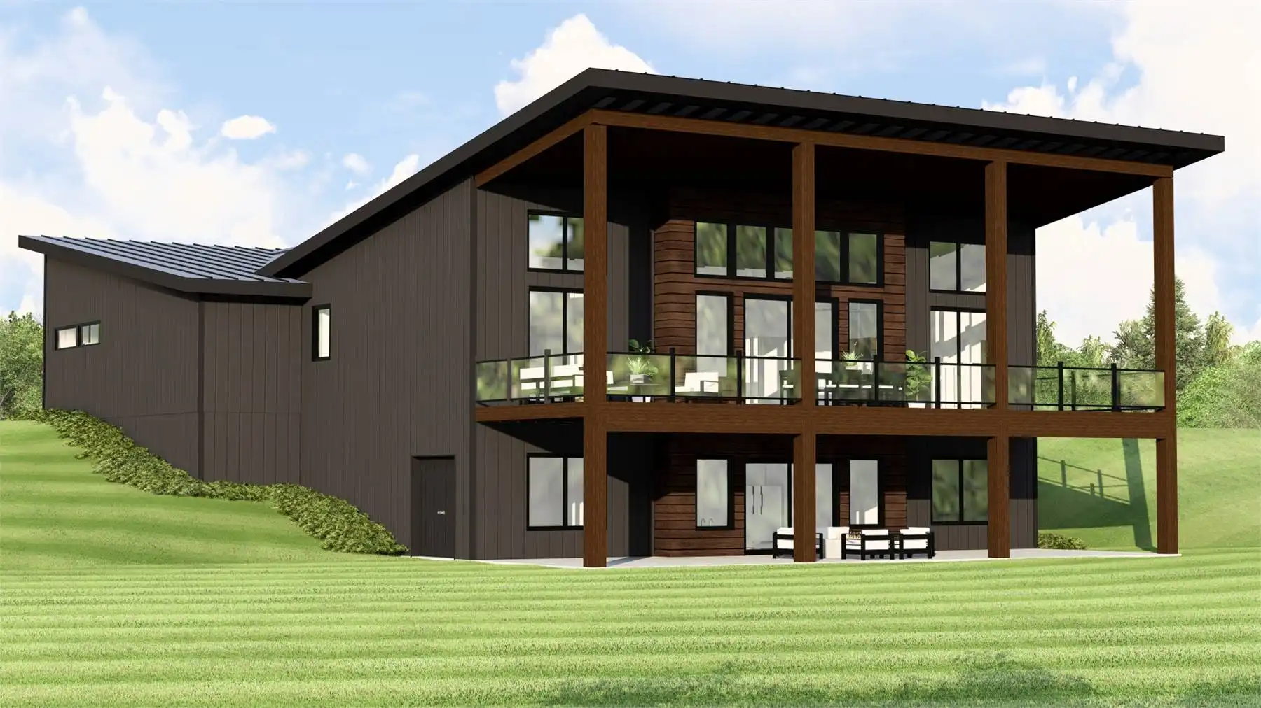 House Plan 11287 combines contemporary design with functional living in a 1,864 square foot, single-story layout. A charming covered front porch opens into a welcoming foyer with a built-in bench, leading to a bright and spacious floor plan. The great room and kitchen share a soaring sloped ceiling, with an L-shaped kitchen that offers a central island and walk-in pantry. The rear of the home is anchored by a massive covered deck, perfect for outdoor dining and enjoying panoramic views. At the front, a guest bedroom includes a private ensuite and walk-in closet, while the left side is dedicated to the primary suite, featuring dual walk-in closets and a luxury bath with a soaking tub and separate shower. Completing the design is a front-facing two-car garage, blending convenience with curb appeal.