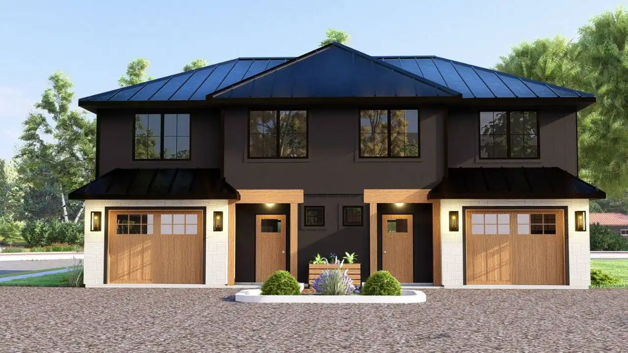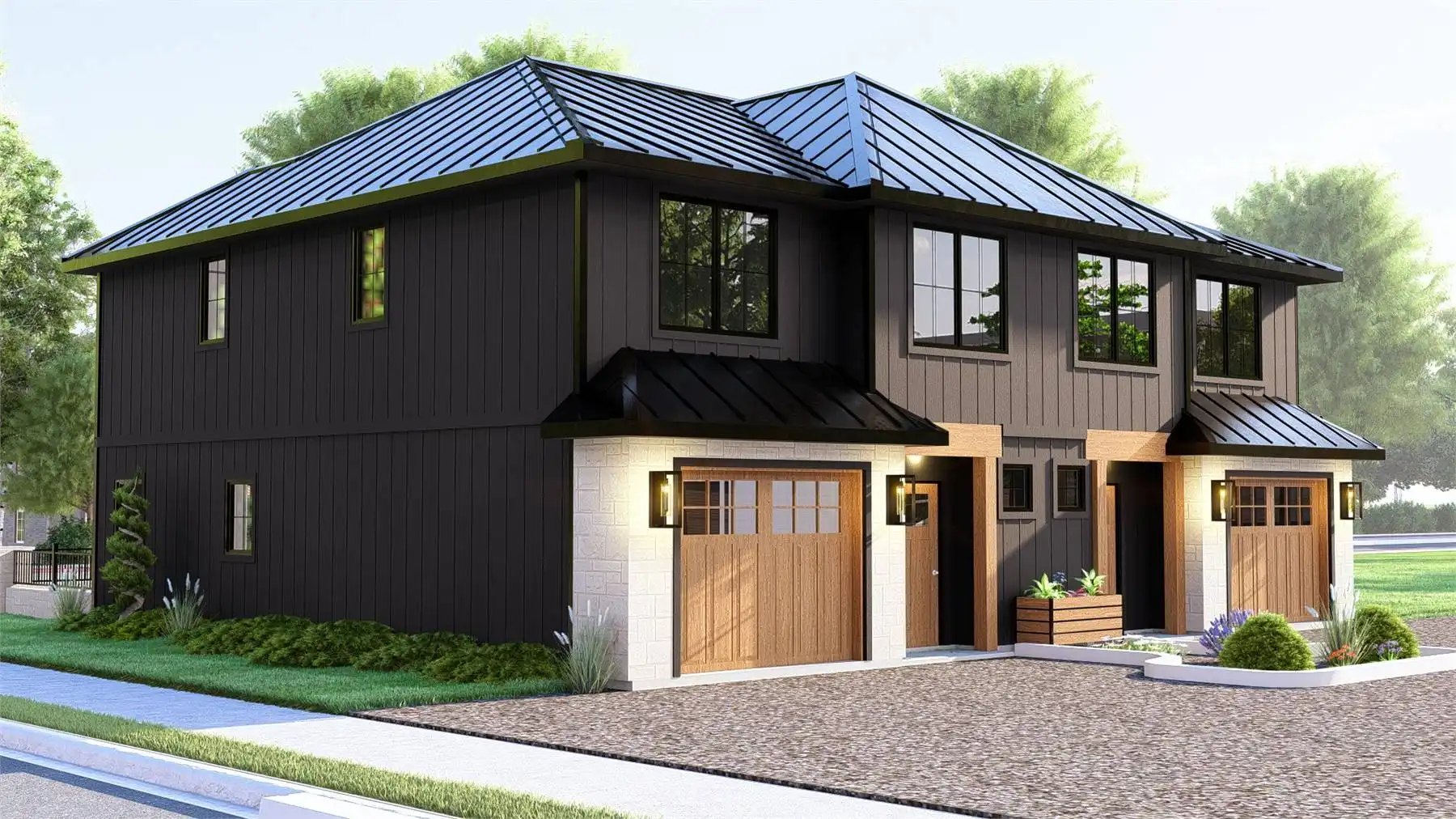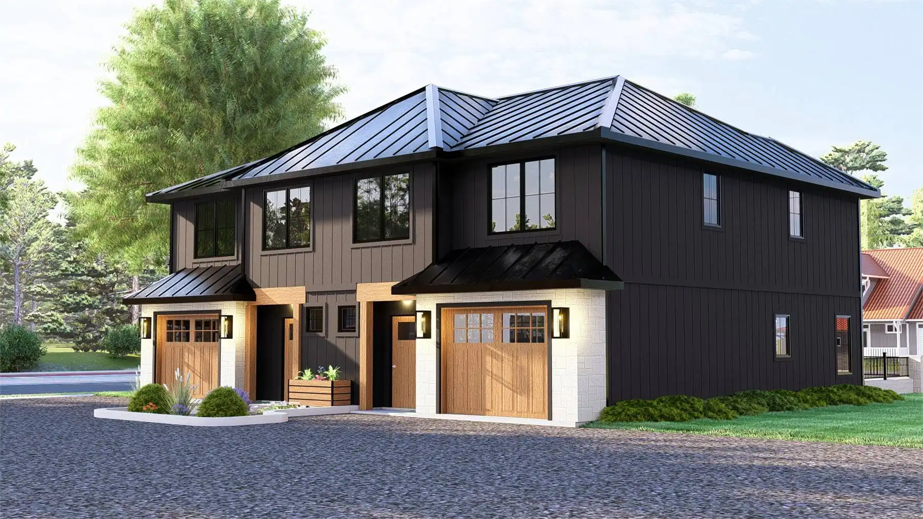 House Plan 11289 offers a well-designed duplex layout that supports modern lifestyles with comfort and flexibility. Each unit provides 1,565 square feet of thoughtfully organized living space, featuring an open kitchen, dining area, and great room that make everyday life flow naturally. The kitchen island encourages conversation and casual dining, while the pantry adds essential storage. Upstairs, each residence includes three inviting bedrooms, with the primary suite offering a private bath and walk-in closet for easy relaxation. Secondary bedrooms are well-sized and versatile, suitable for guests, children, or home office needs. A second-floor laundry room adds convenience where it matters most. Covered porches in both the front and rear create welcoming outdoor spaces, making this plan feel complete from every angle. Perfect for investors, extended families, or developing a rental portfolio, House Plan 11289 balances style and function beautifully.