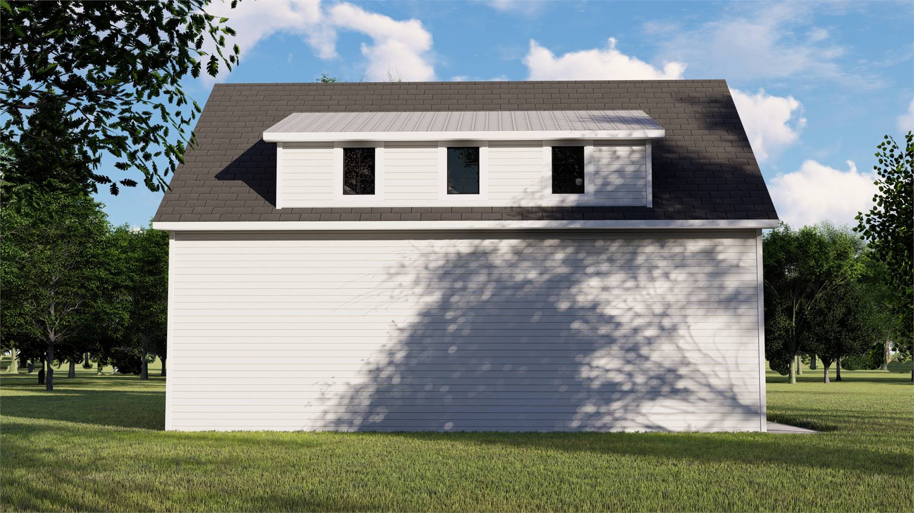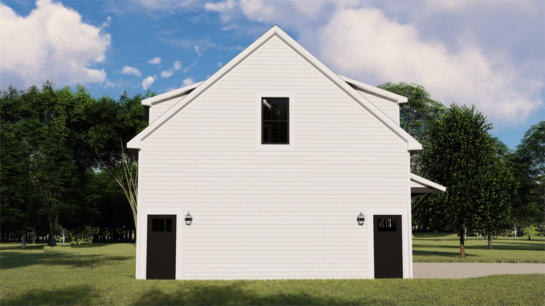 Plan 11293 is a lovely four-car garage with a great perk above--a 905-square-foot apartment perfect for hosting guests or working out of! The apartment offers one bedroom, one bathroom, and open living with a one-wall kitchenette.