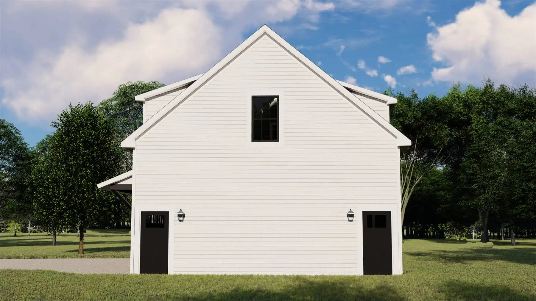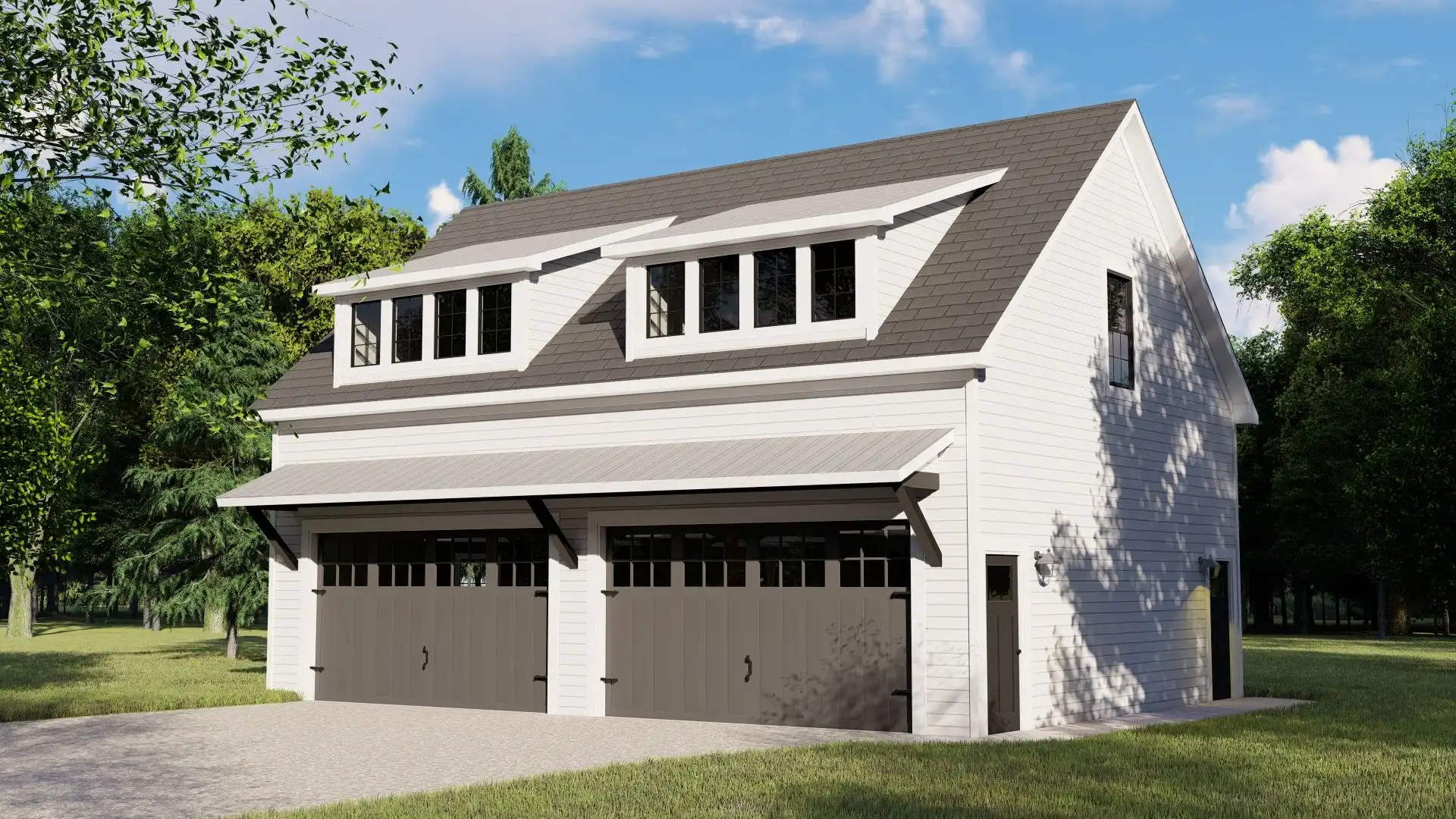 Plan 11293 is a lovely four-car garage with a great perk above--a 905-square-foot apartment perfect for hosting guests or working out of! The apartment offers one bedroom, one bathroom, and open living with a one-wall kitchenette.