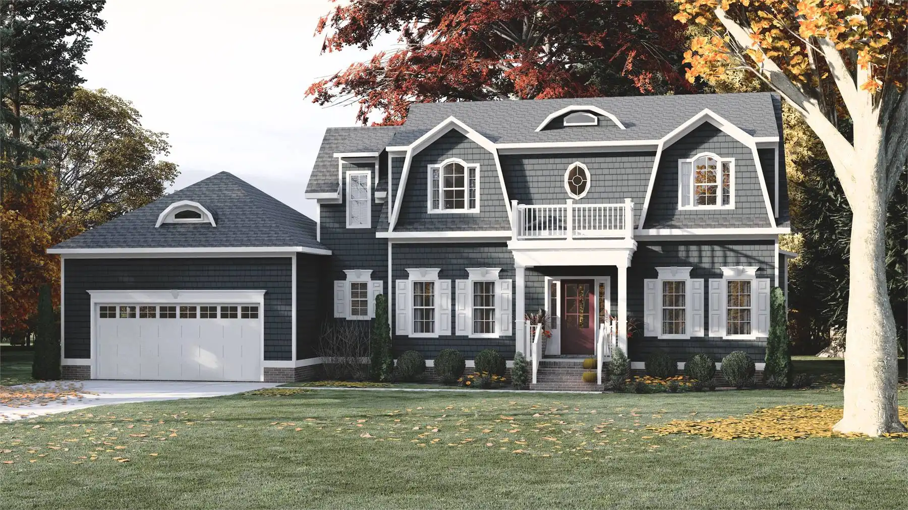 House Plan 11308 combines traditional architecture with a practical floor plan designed for today’s families. Spanning 2,291 sq. ft., this home offers 4 bedrooms and 2.5 bathrooms in a balanced two-story layout. The first floor includes a formal dining room, den, mudroom, laundry, and a large family room connected to the kitchen and breakfast area. A rear porch extends living outdoors. Upstairs, the primary suite is paired with a private bath and walk-in closet, while three secondary bedrooms and two additional baths ensure comfort for family or guests. The central study loft provides versatile space for work or relaxation. Finished with classic Cape Cod influences and a welcoming front porch, House Plan 11308 brings together timeless style and modern convenience.
