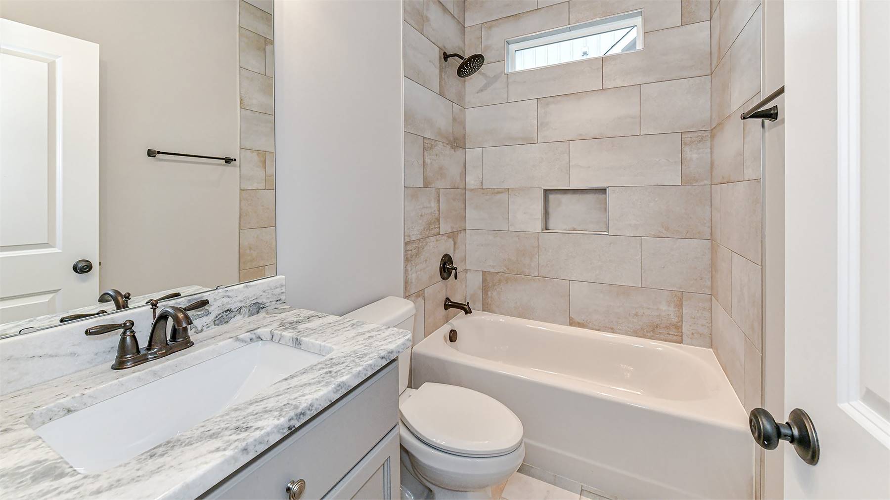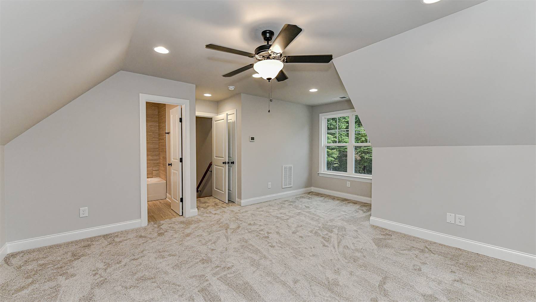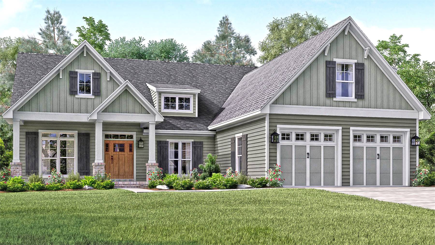 This stylish 2,004 sq. ft. Craftsman home offers 3 bedrooms, 2.5 baths, and thoughtful design elements that families will love. The foyer opens into a spacious great room, flowing seamlessly into the dining area and kitchen with a sitting bar and walk-in pantry. A split-bedroom layout keeps the primary suite private, complete with a spa-like bath featuring a jet tub, custom shower, and dual vanities. Two secondary bedrooms share a full bath, while the upstairs bonus room adds even more flexible space. Brick, siding, and board-and-batten exterior accents give the home timeless curb appeal. With storage throughout and a rear porch perfect for gatherings, this design combines style with everyday practicality. Families will enjoy the warm balance of elegance and comfort.