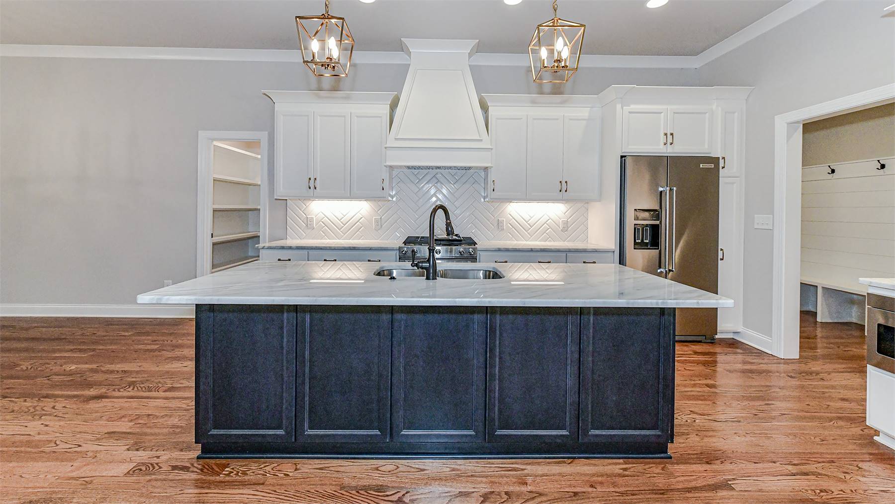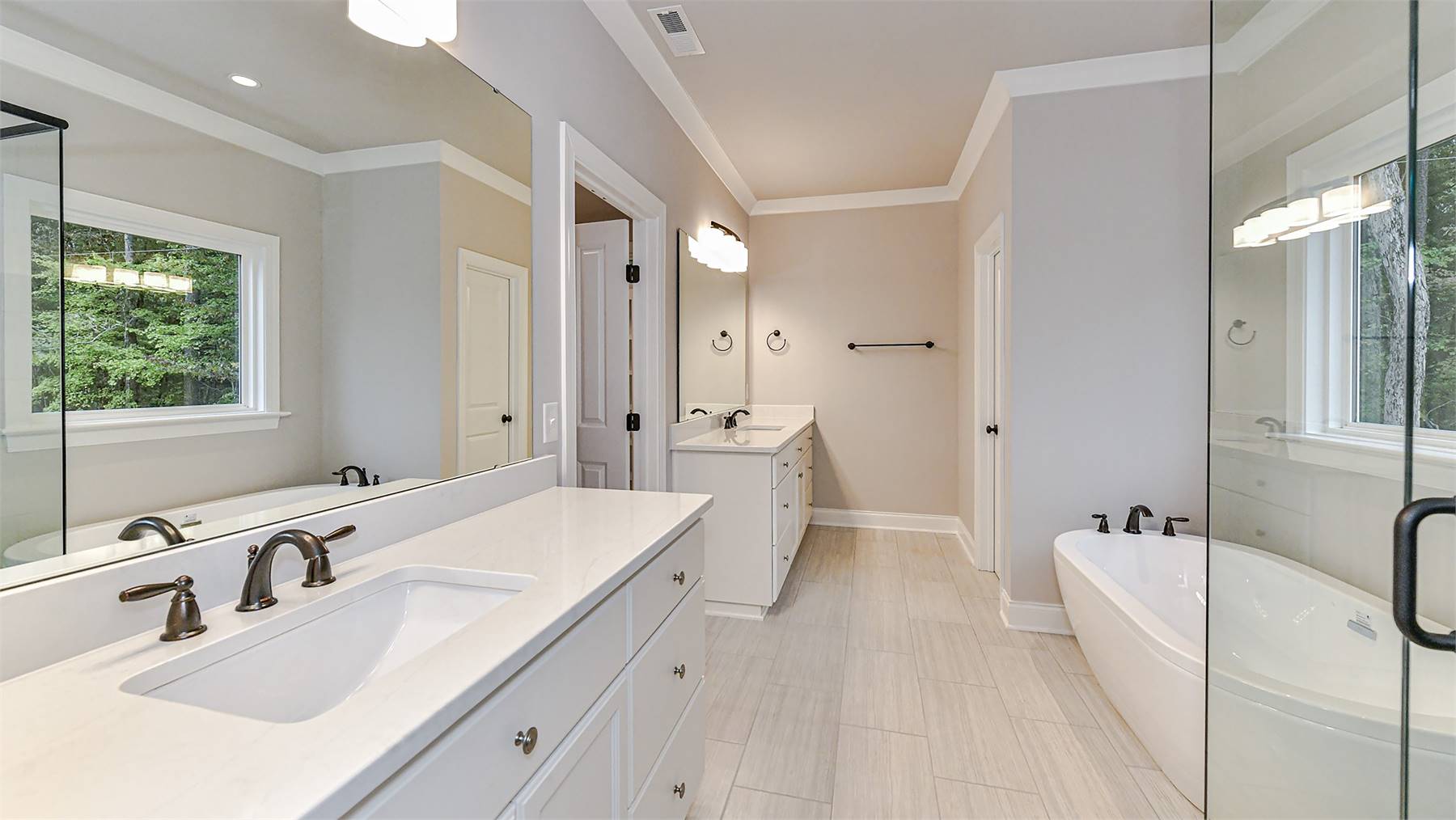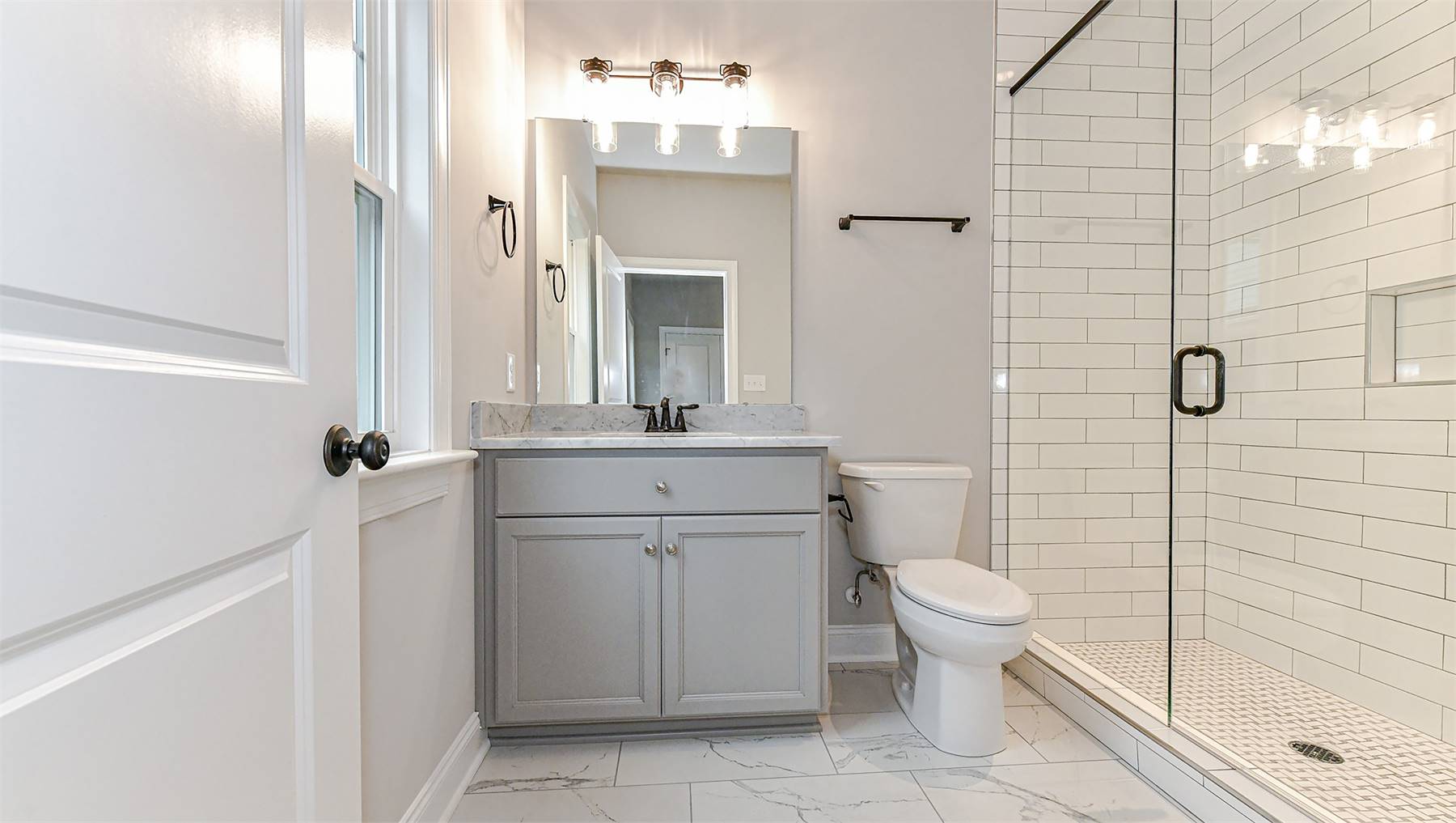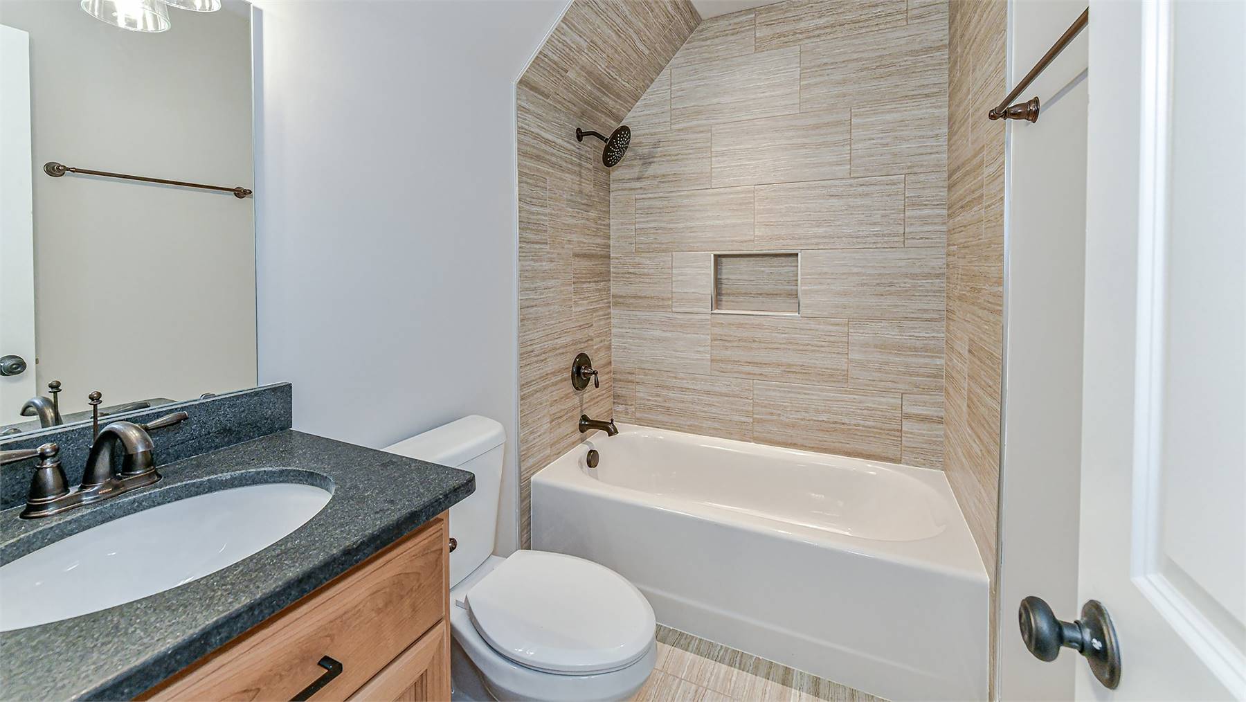 This stylish 2,004 sq. ft. Craftsman home offers 3 bedrooms, 2.5 baths, and thoughtful design elements that families will love. The foyer opens into a spacious great room, flowing seamlessly into the dining area and kitchen with a sitting bar and walk-in pantry. A split-bedroom layout keeps the primary suite private, complete with a spa-like bath featuring a jet tub, custom shower, and dual vanities. Two secondary bedrooms share a full bath, while the upstairs bonus room adds even more flexible space. Brick, siding, and board-and-batten exterior accents give the home timeless curb appeal. With storage throughout and a rear porch perfect for gatherings, this design combines style with everyday practicality. Families will enjoy the warm balance of elegance and comfort.