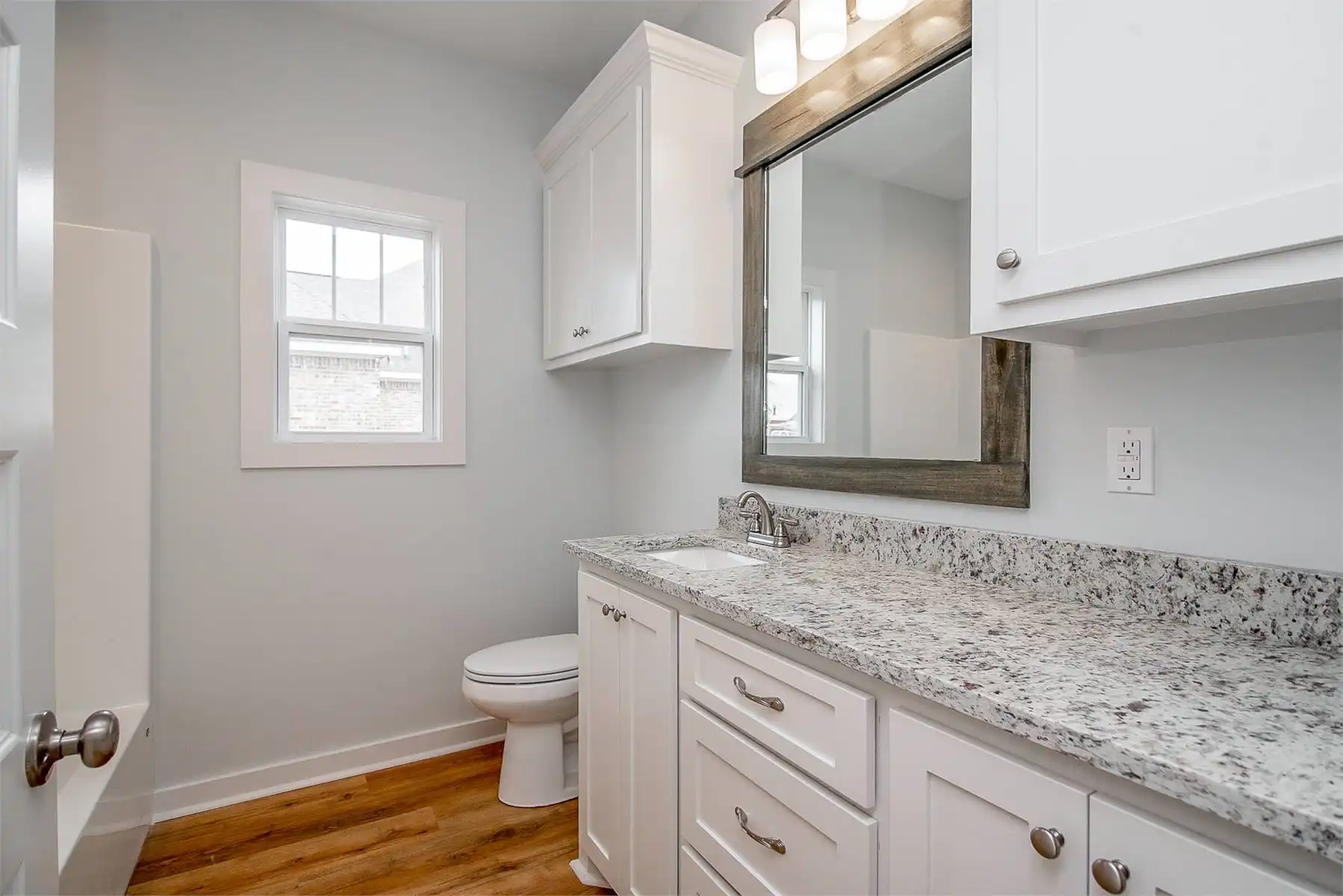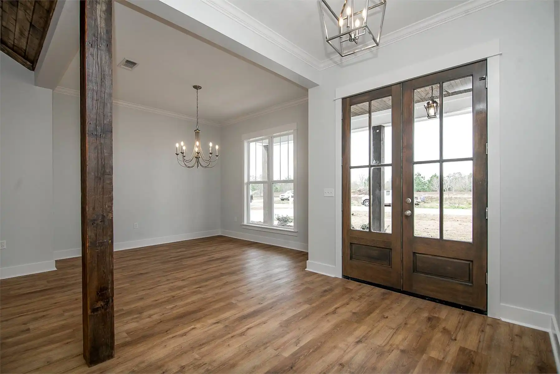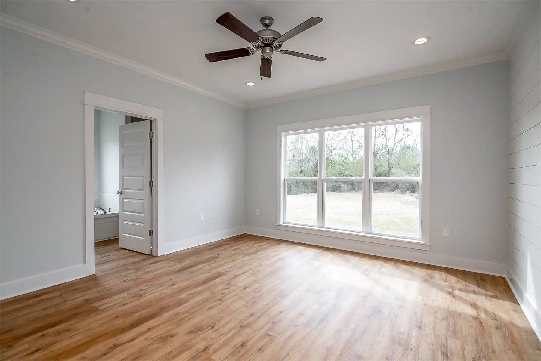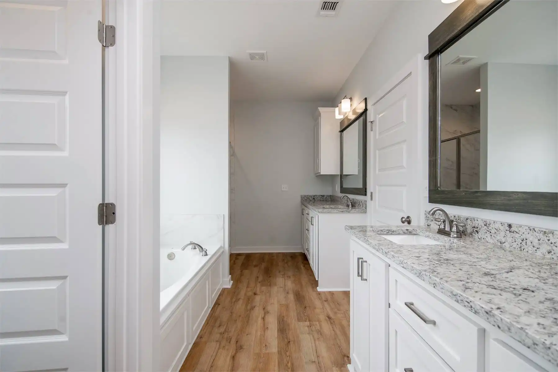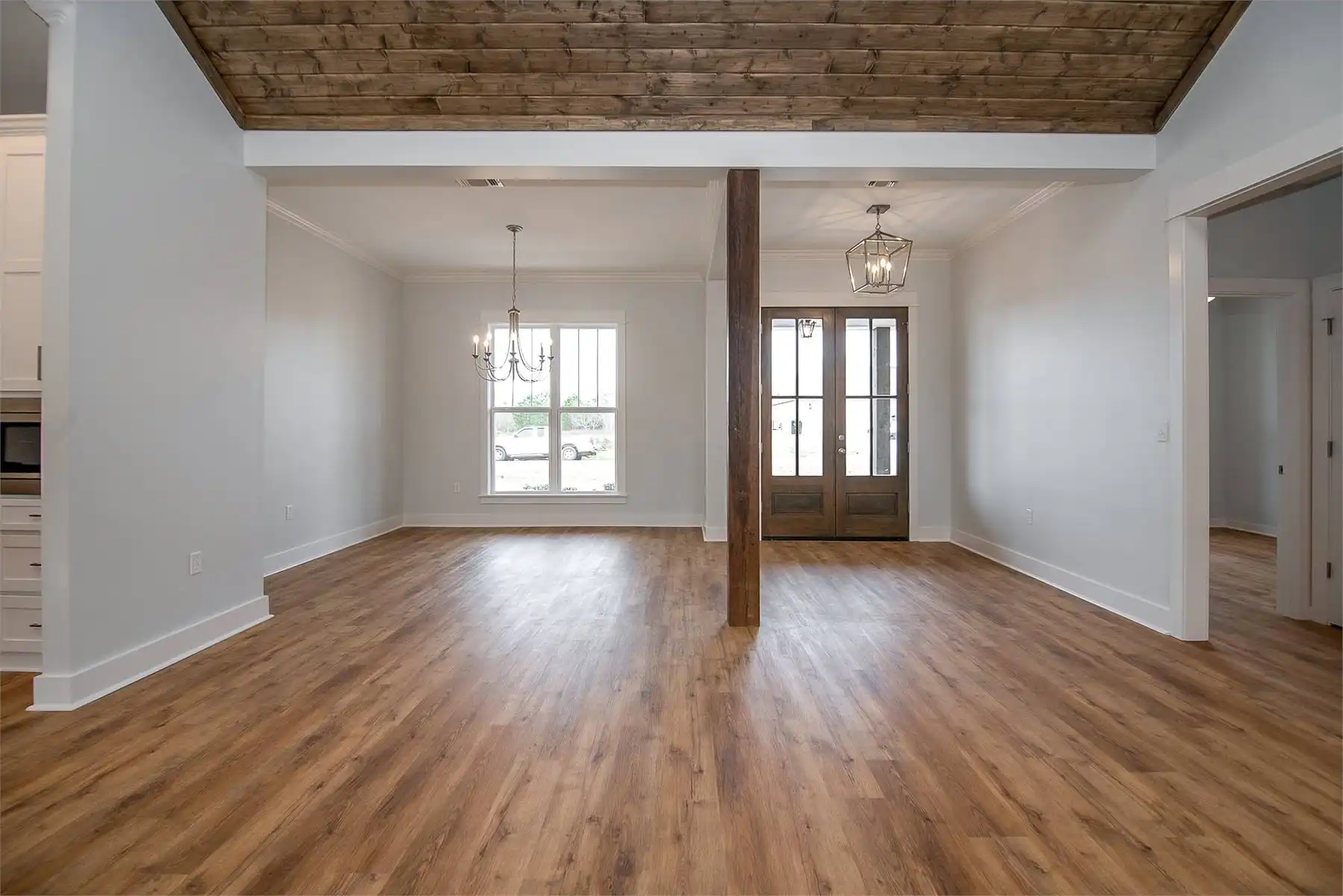 This charming 2,044 sq. ft. ranch design offers 3 bedrooms, 2.5 baths, and a welcoming exterior accented with brick and board and batten details. Inside, a vaulted ceiling elevates the great room, which flows naturally into the dining and kitchen areas for easy entertaining. The kitchen includes abundant counter space and a walk-in pantry, making it both stylish and functional. The primary suite is a peaceful retreat with a spa-like bath, oversized closet, and a smart connection to the laundry room. Secondary bedrooms each have walk-in closets, providing comfort and organization for family or guests. Wide front and rear porches extend living outdoors, perfect for summer evenings or weekend gatherings. Blending traditional ranch style with modern touches, this home combines timeless design with everyday convenience.