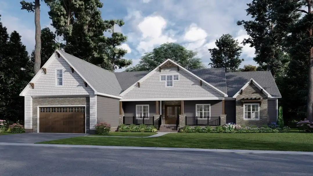 House Plan 11332 combines Craftsman style with practical comfort in a spacious one-and-a-half-story layout. Offering 4 bedrooms and 4.5 bathrooms across 3,470 sq. ft., this home includes a vaulted great room, dining area, and gourmet kitchen complete with walk-in pantry and large island. The split-bedroom design places the luxurious primary suite on the main level, while three additional bedrooms provide comfort for family or guests. A loft and bonus room upstairs give you space to create a home office, media lounge, or playroom. Extra details like the mudroom, butler’s pantry, and covered porches make daily life more organized and enjoyable. With its flexible layout and thoughtful design, this Craftsman ranch house plan is ideal for families seeking both style and convenience.