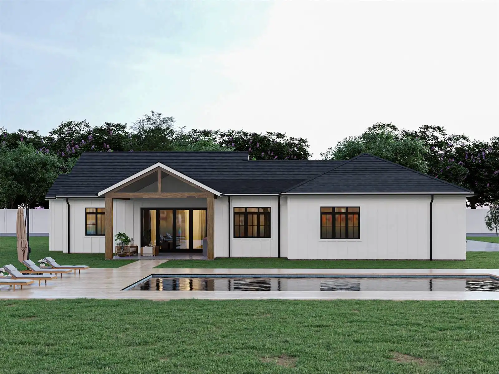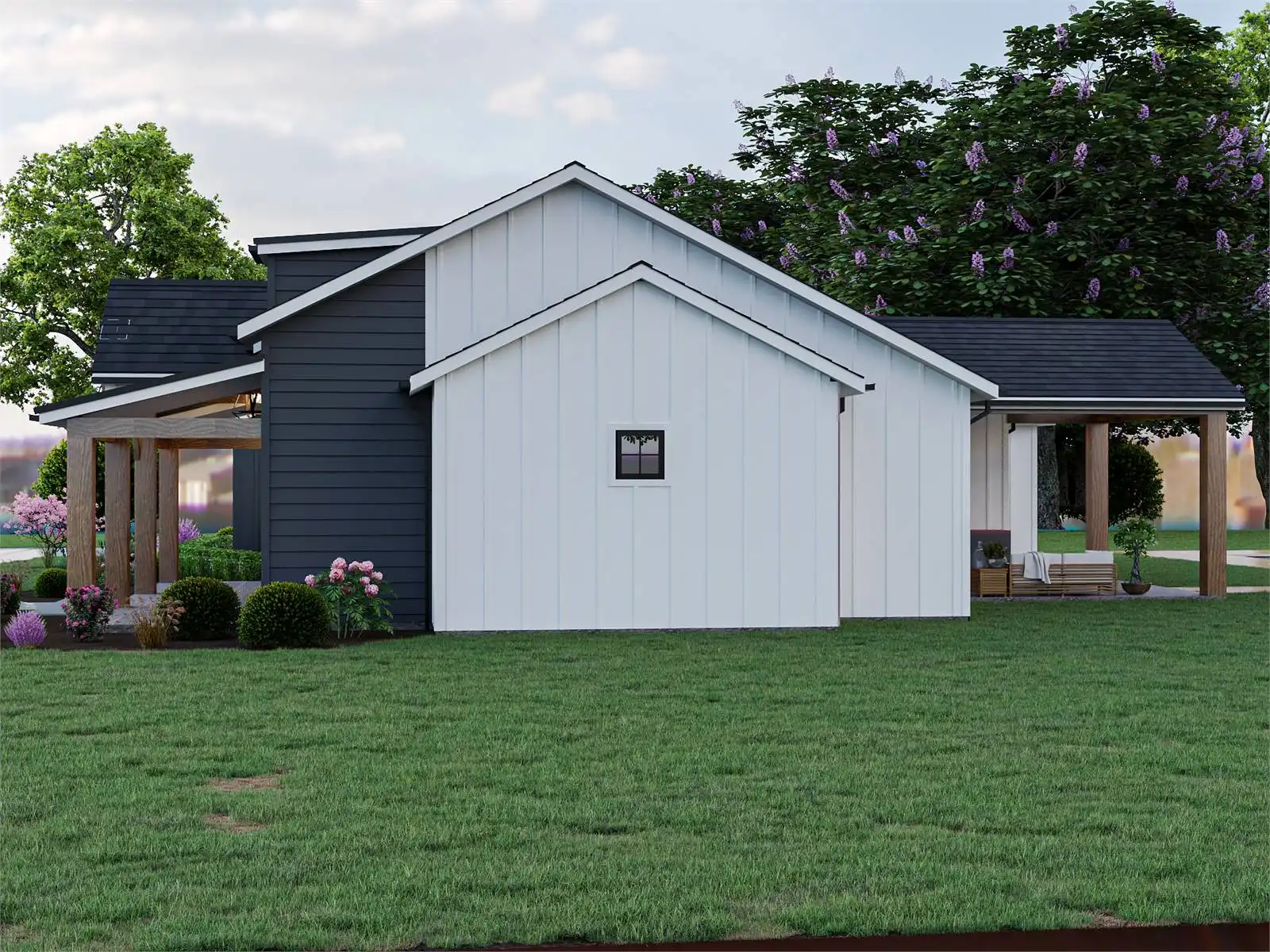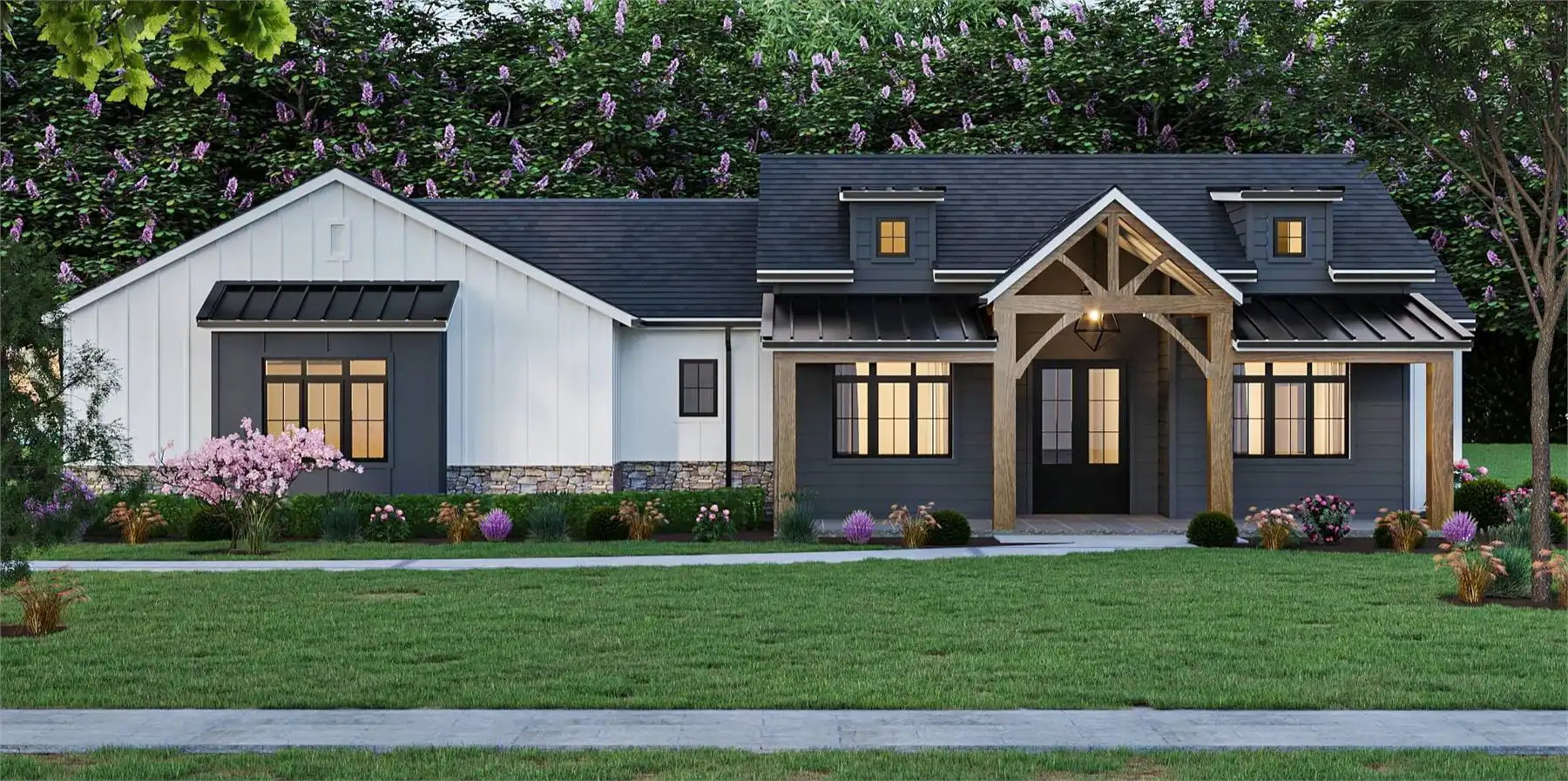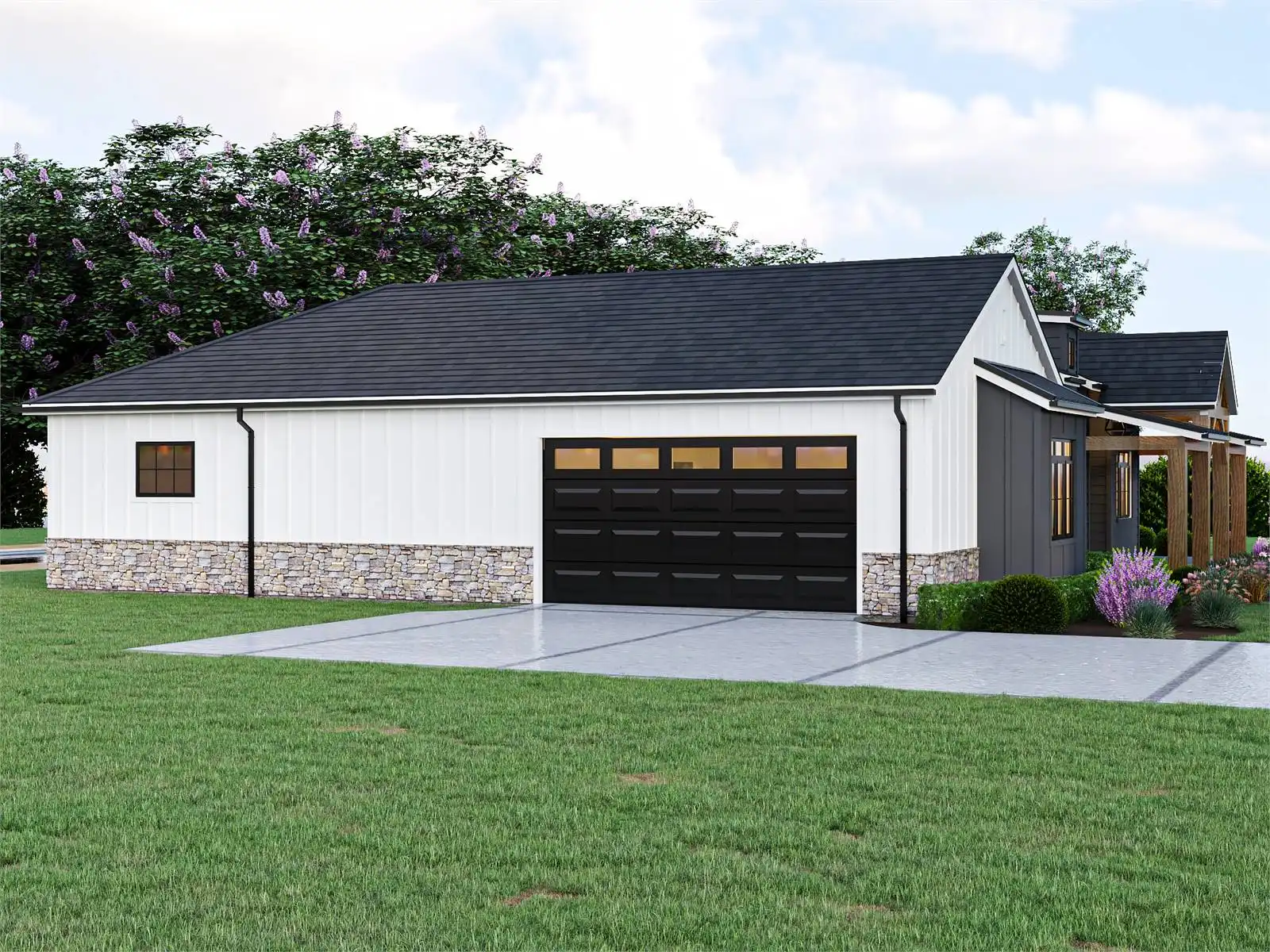 This charming modern farmhouse plan features 1,995 sq. ft. of heated living space with 3 bedrooms and 2.5 baths, offering a balance of style and comfort. The open floor plan centers around a spacious kitchen island, perfect for family gatherings and entertaining friends. A cozy living area flows seamlessly to the dining space, creating an inviting environment for everyday life. The primary suite is privately located and includes a generous bath and walk-in closet. Two additional bedrooms provide plenty of room for family or guests. A side-entry 2-car garage adds curb appeal while keeping functionality in mind. Outdoor living is easy with a welcoming front porch and a covered rear porch ideal for relaxation. This farmhouse design combines charm and practicality, making it a perfect fit for families who love modern comfort with timeless appeal.